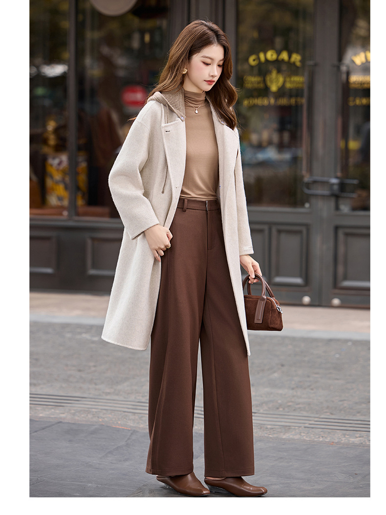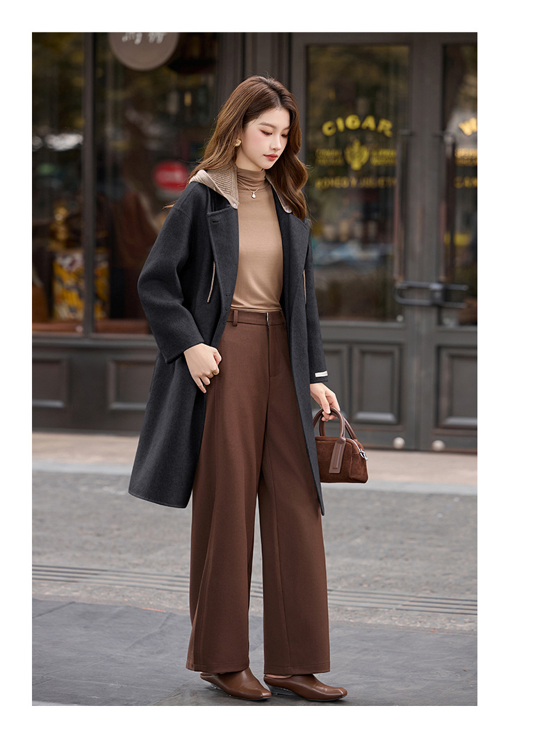 HR1231高级感连帽双面羊毛大衣2025秋冬新款长款气质女式毛呢外套 商品图4