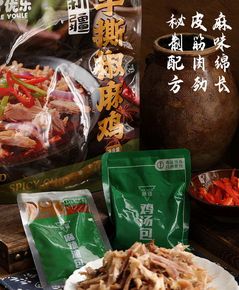 悠了优乐·新疆手撕椒麻鸡1.3kg 汤汁鲜香 麻味绵长