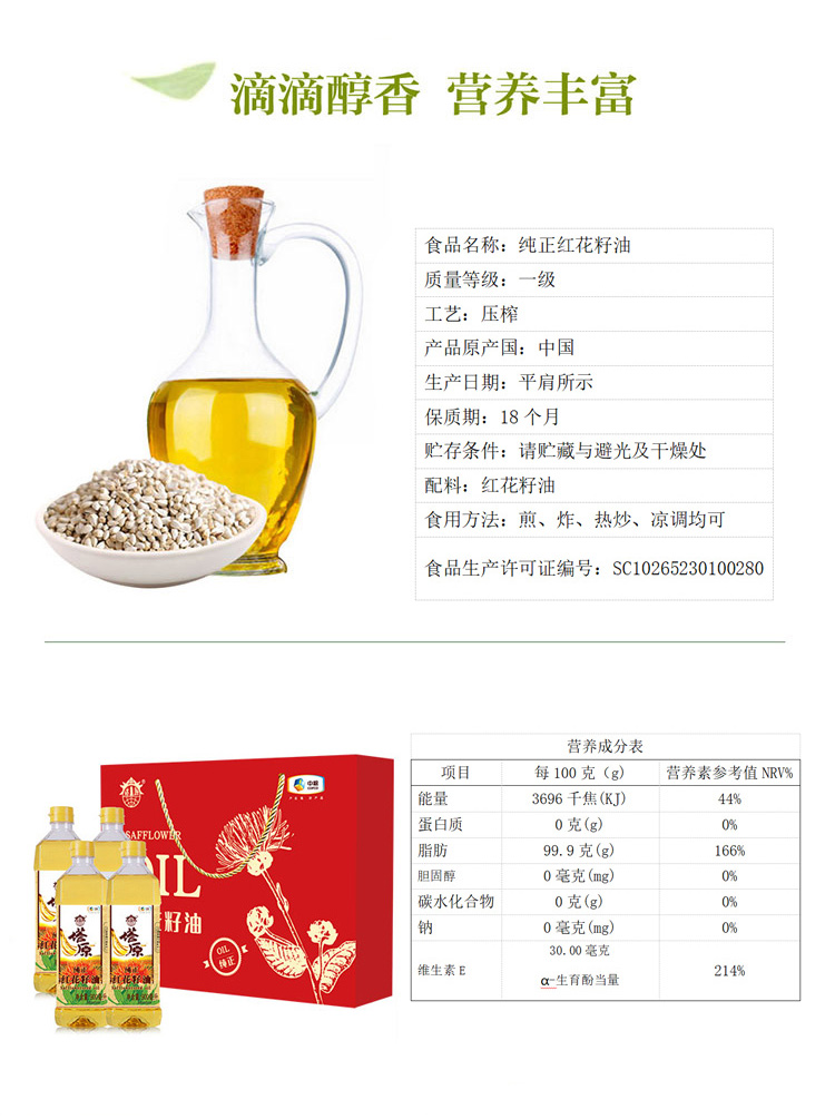 中粮塔原纯正红花籽油礼盒900ml*4