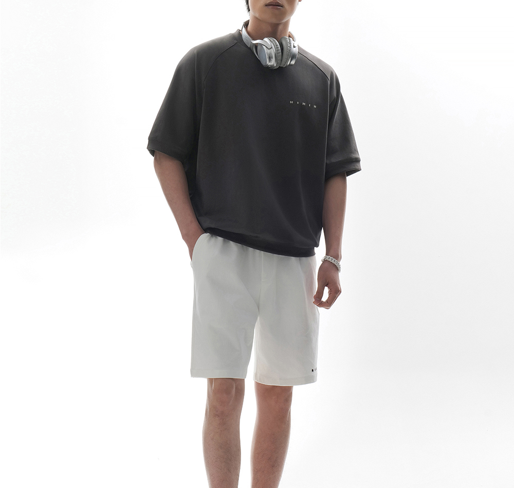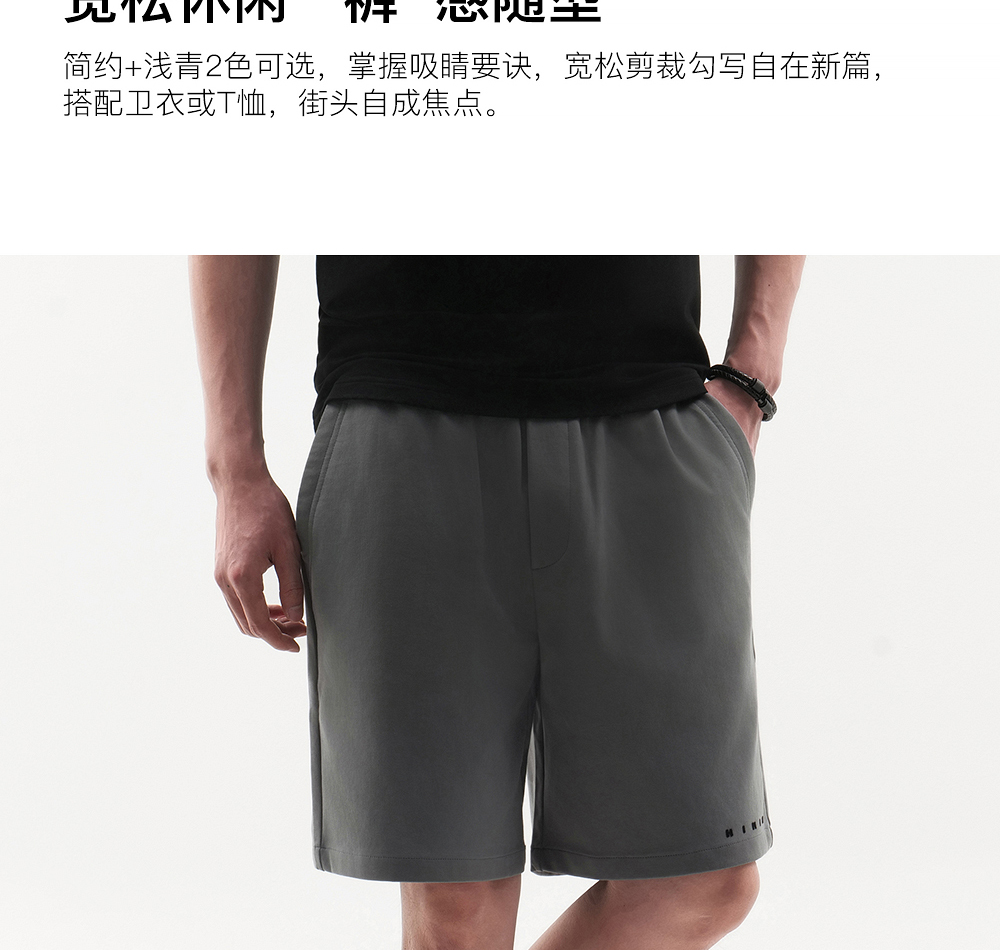 HIM漢崇 舒适透气休闲短裤简约撞色字母烧花运动五分裤 2026夏季