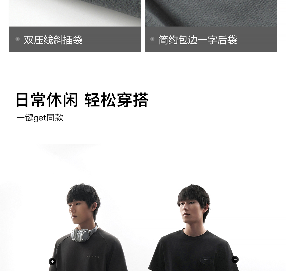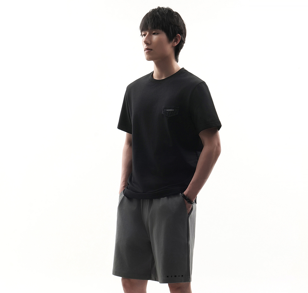 HIM漢崇 复古休闲短袖T恤简约压花口袋圆领打底衫上衣 2026夏季