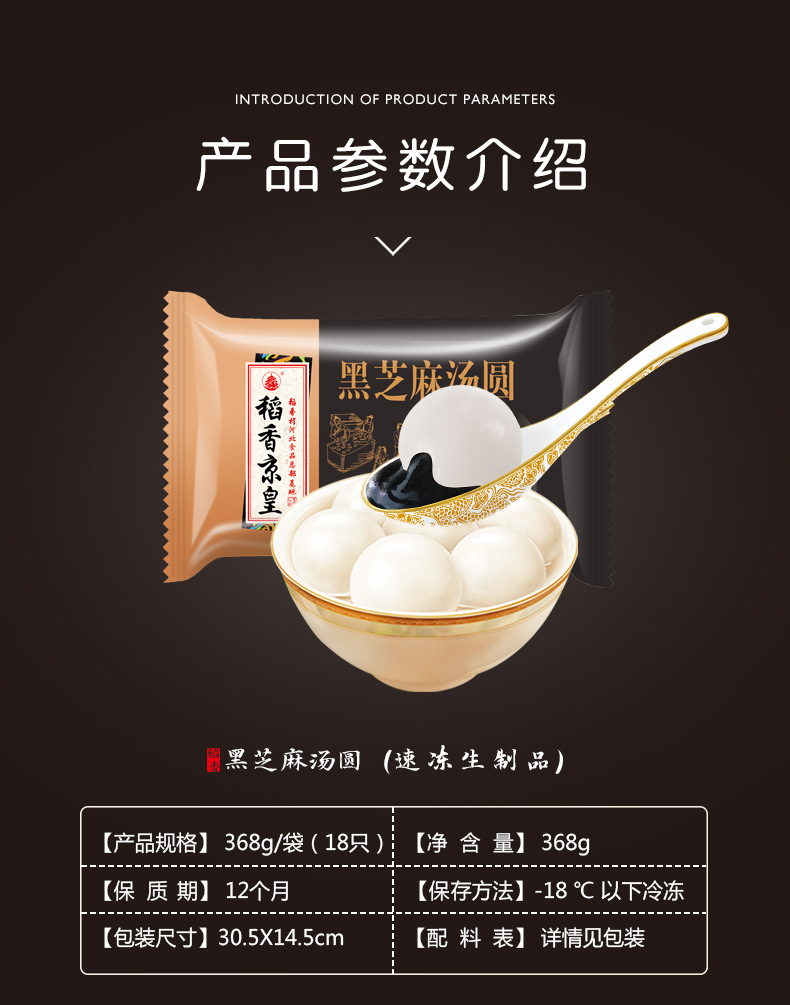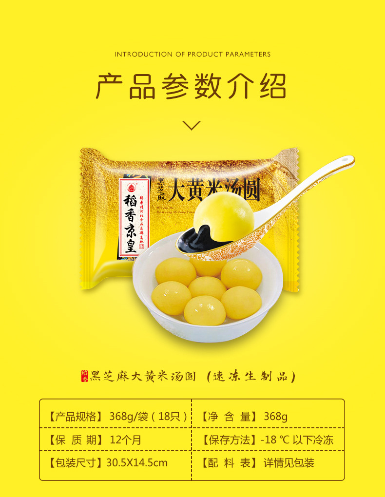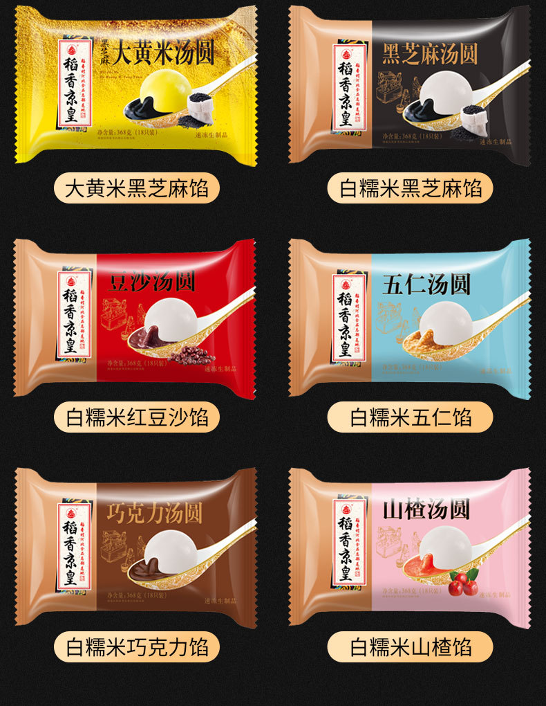稻香京皇大黄米黑芝麻口味汤圆368g*3袋装早餐夜宵点糯米元宵