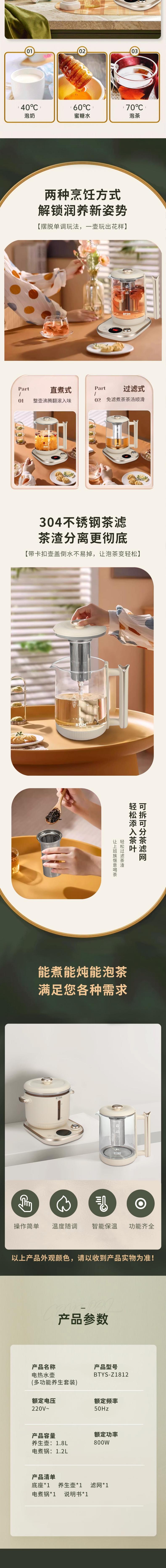 BTSM 养生壶套装800W BTYS-Z1812