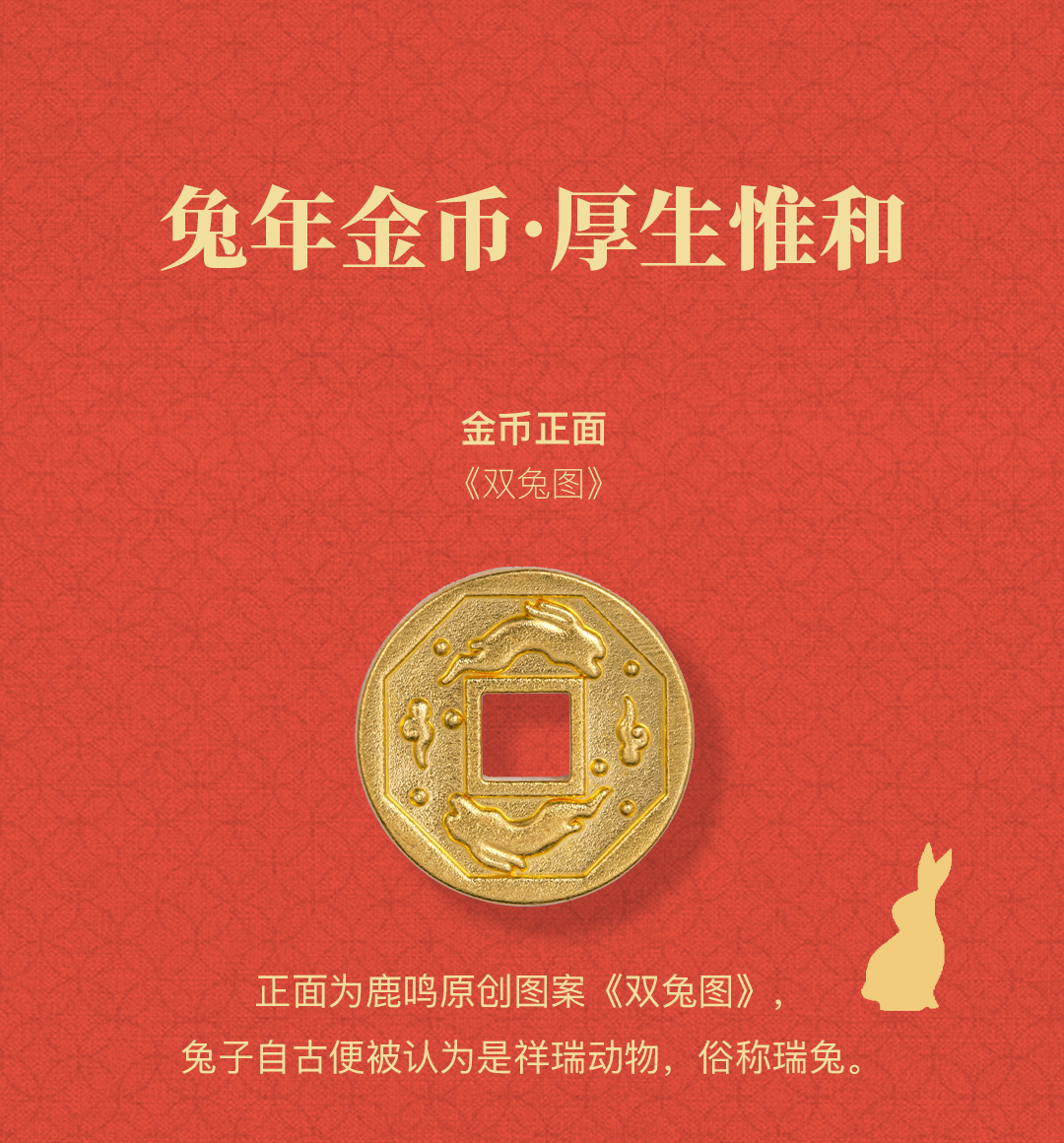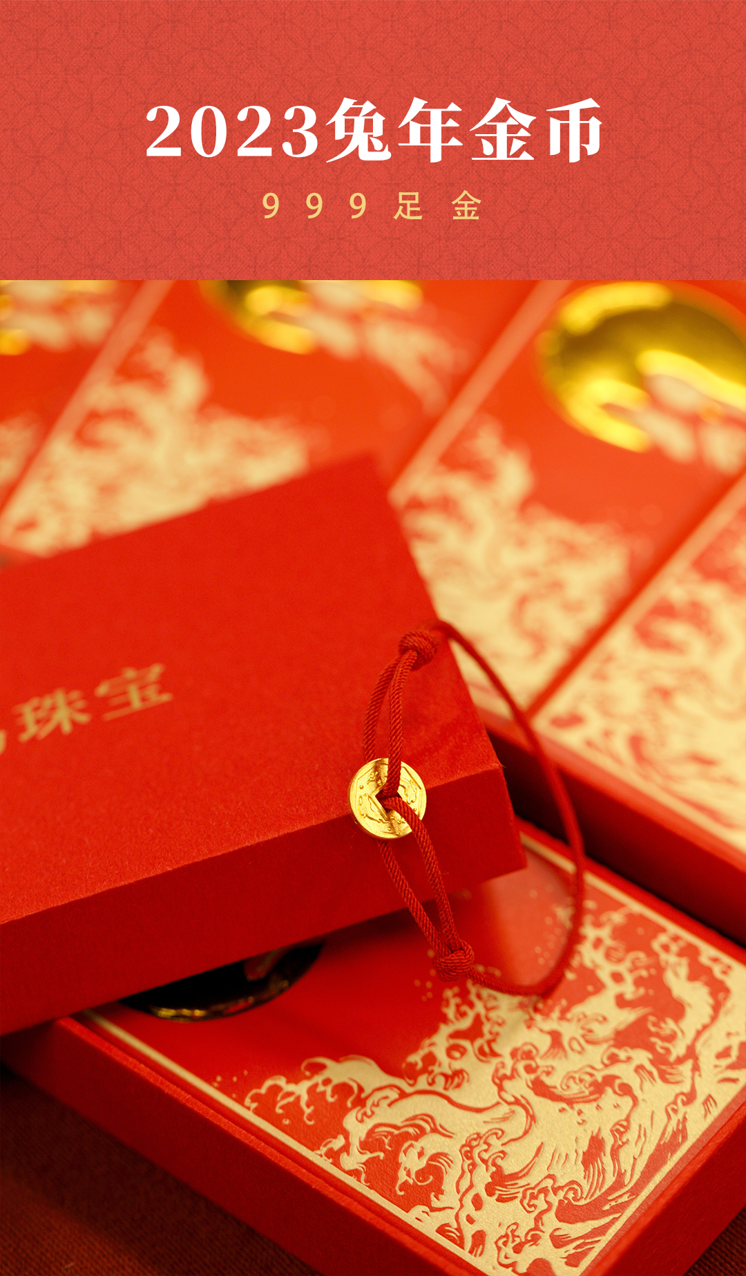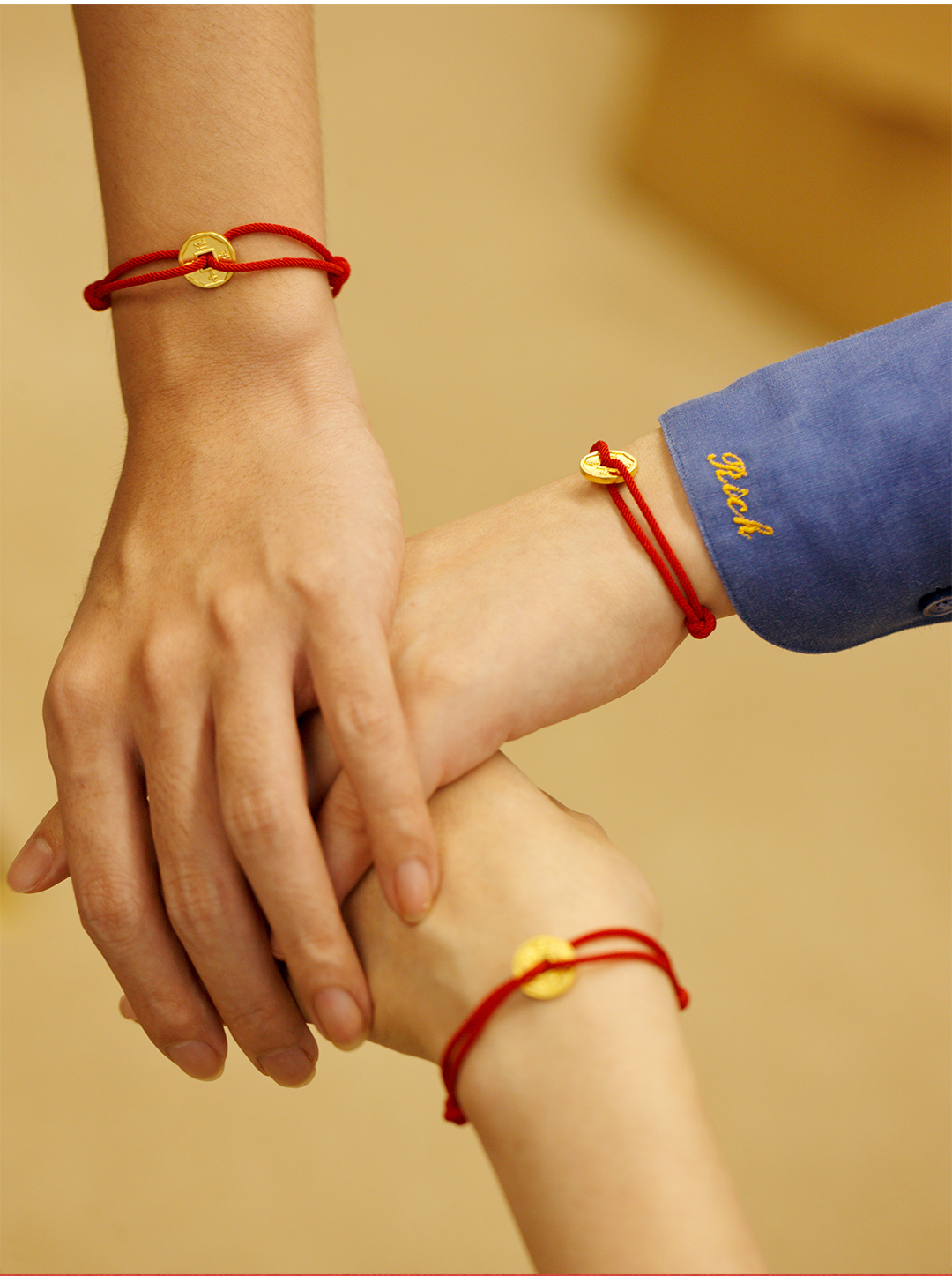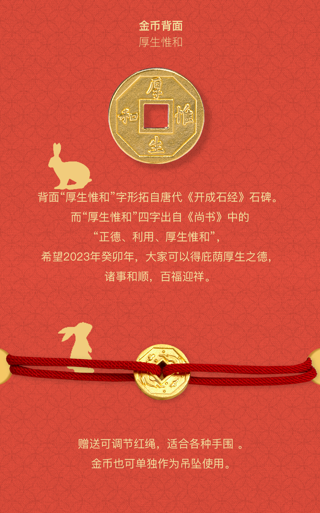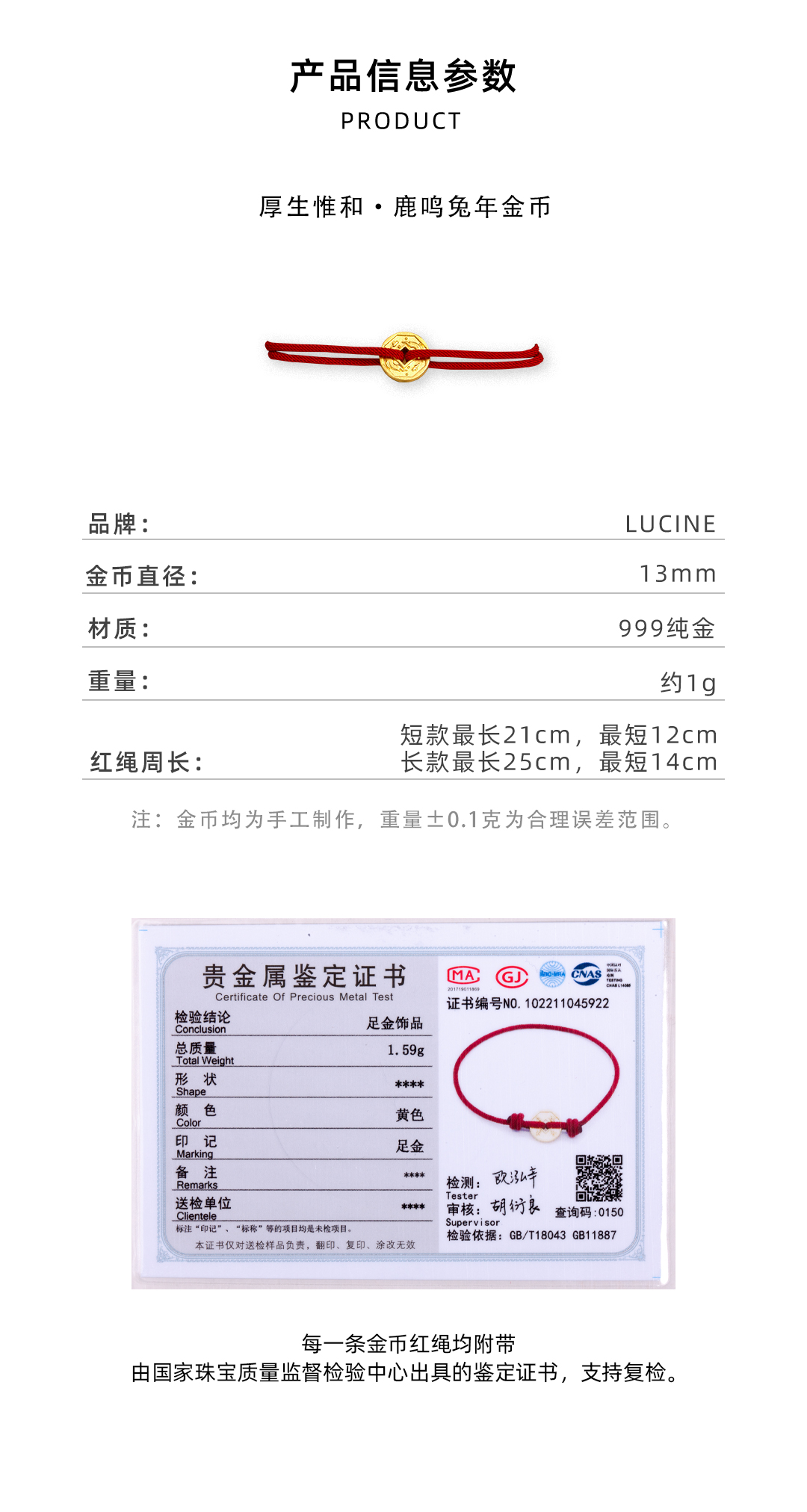 鹿鸣珠宝 2023兔年足金开运金币999纯金手链红绳项链满月送礼
