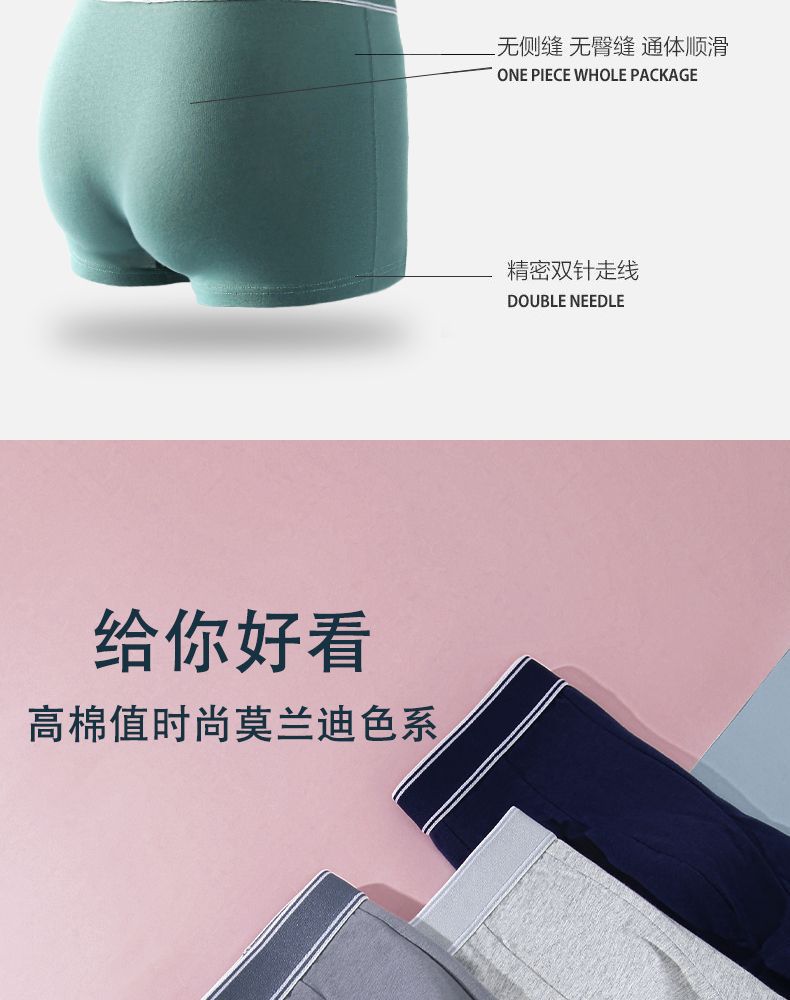 雀说 【4条】男士高腰纯棉内裤纯色高档石墨烯抑菌裆平角短裤9111