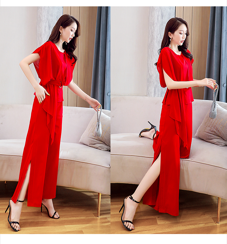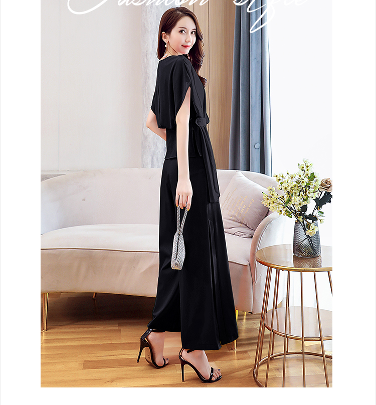WZNH-2051夏季优雅舒适气质修身阔腿裤雪纺简约纯色两件套