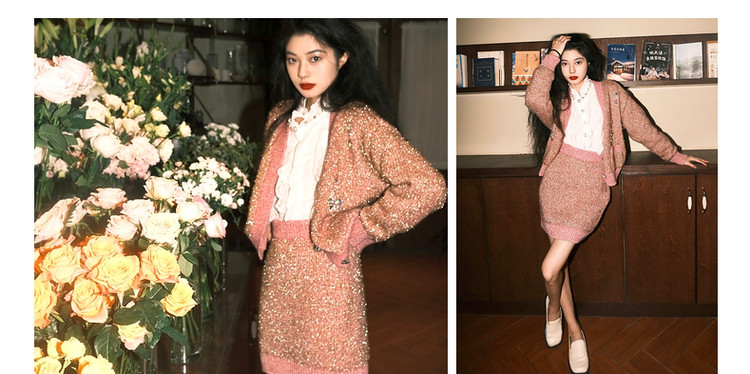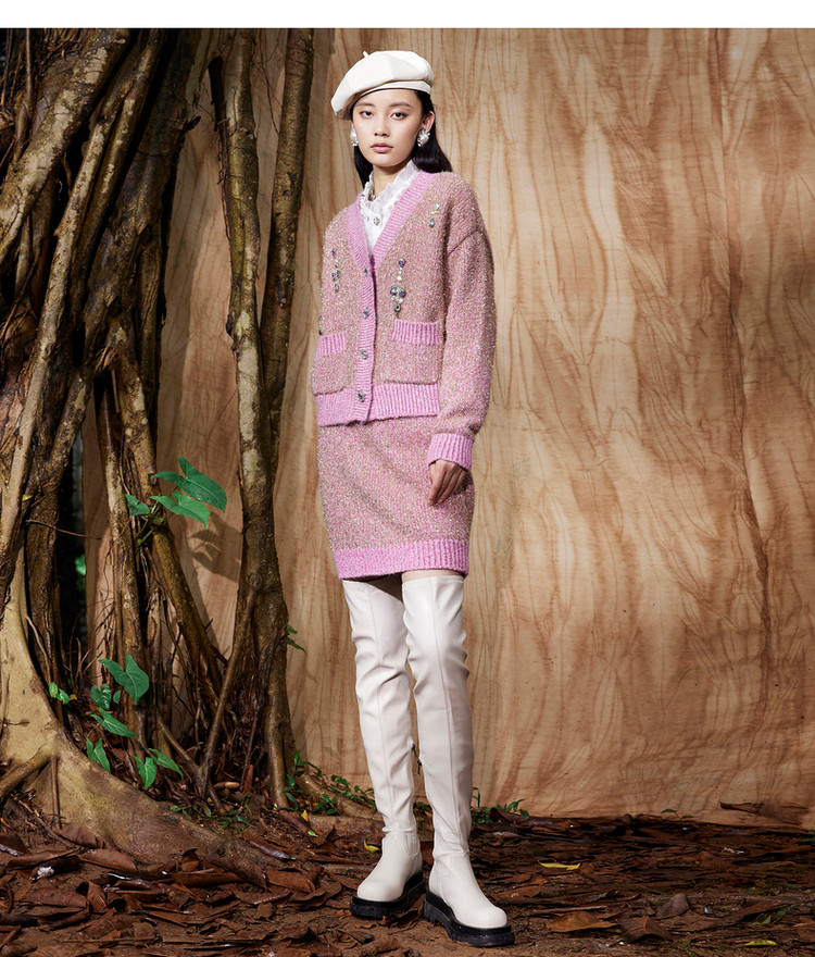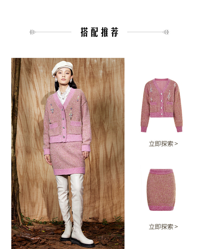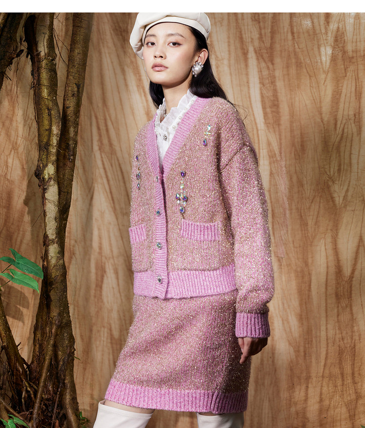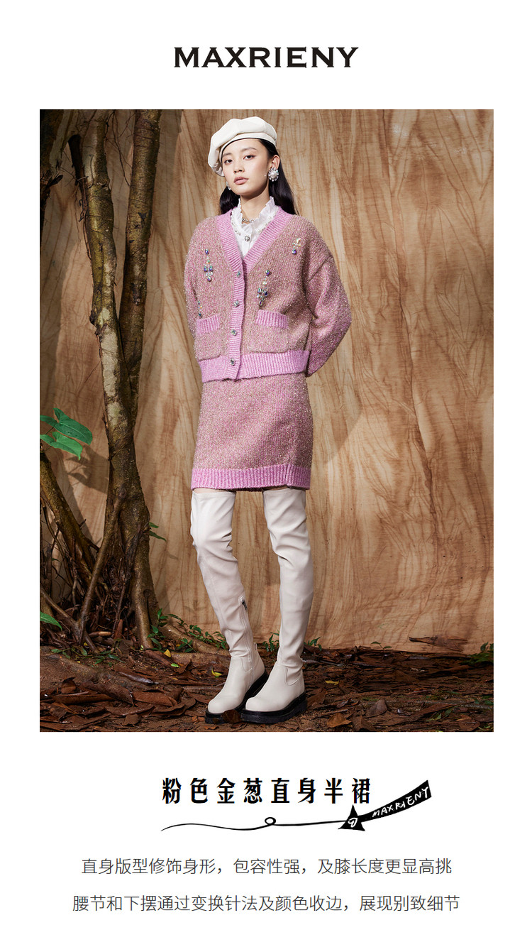 粉色金葱直身半裙冬季针织A字短裙MC87SK762