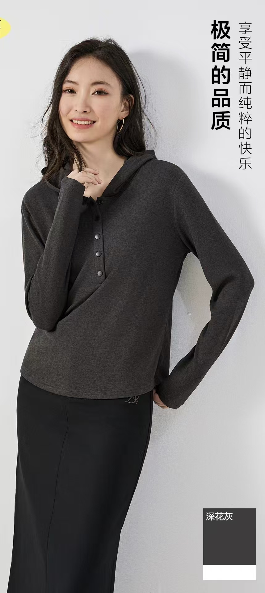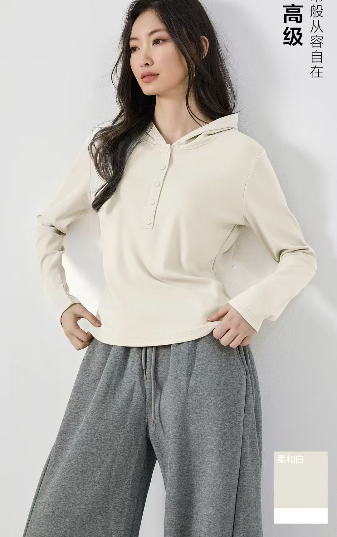 【品名】LS竹纤维女士时尚半开领帽衫2556