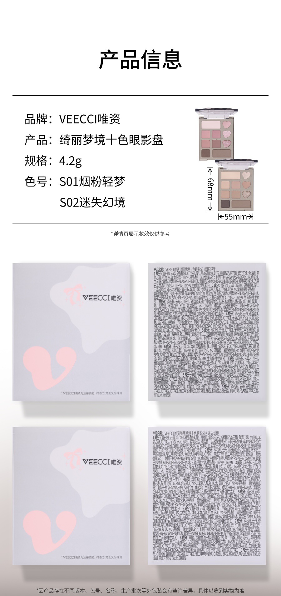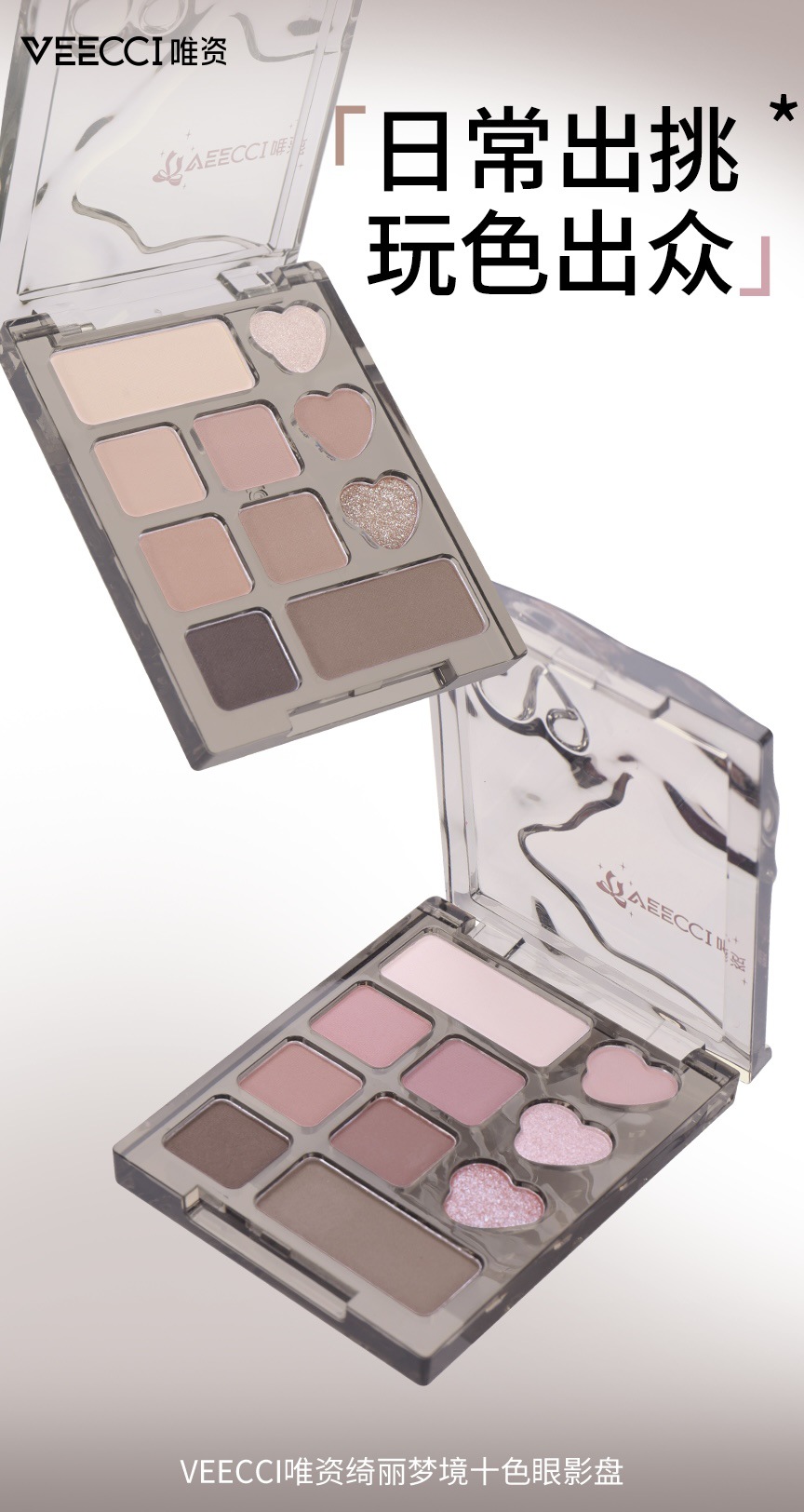 【百搭全能盘❗️十色任搭小巧便携】VEECCI唯资十色眼影盘绮丽梦境五色眼影高光修容维资唯姿大地色女。jc