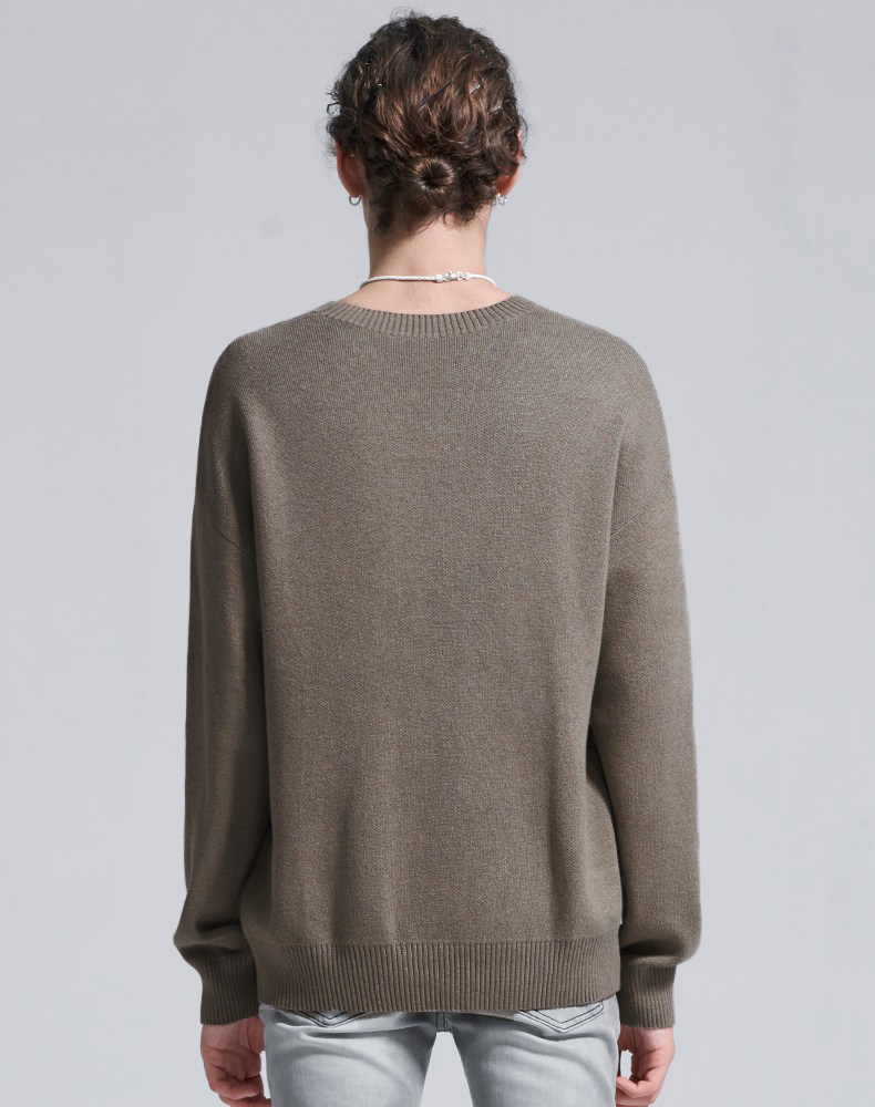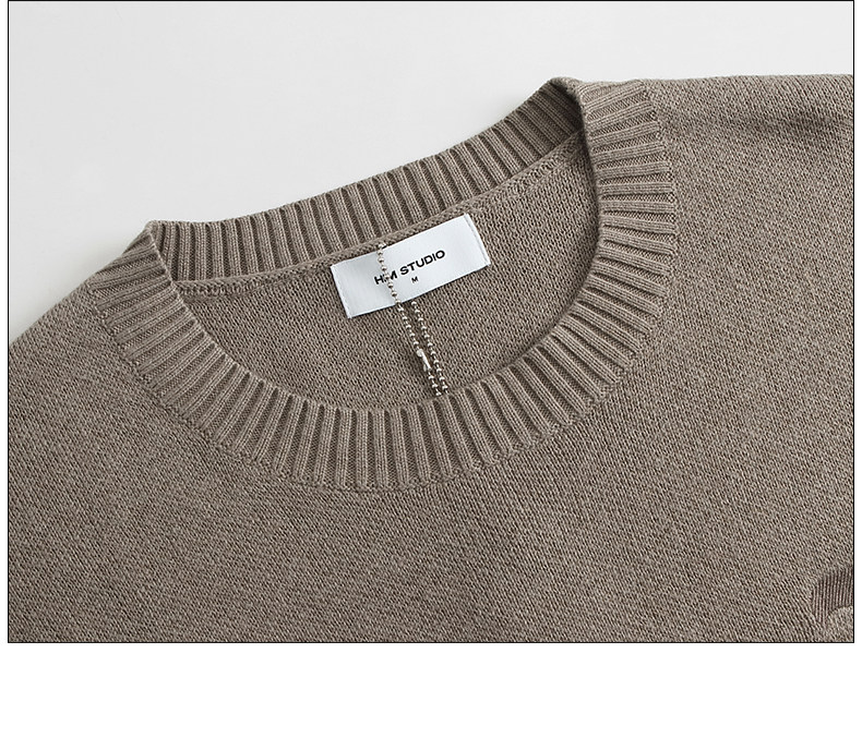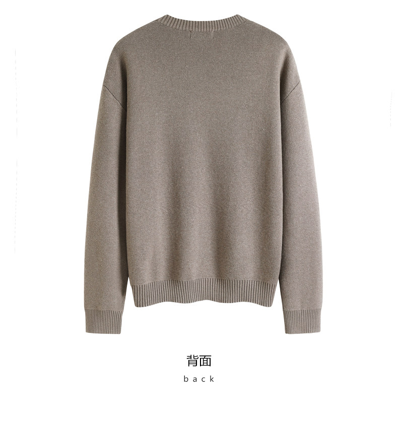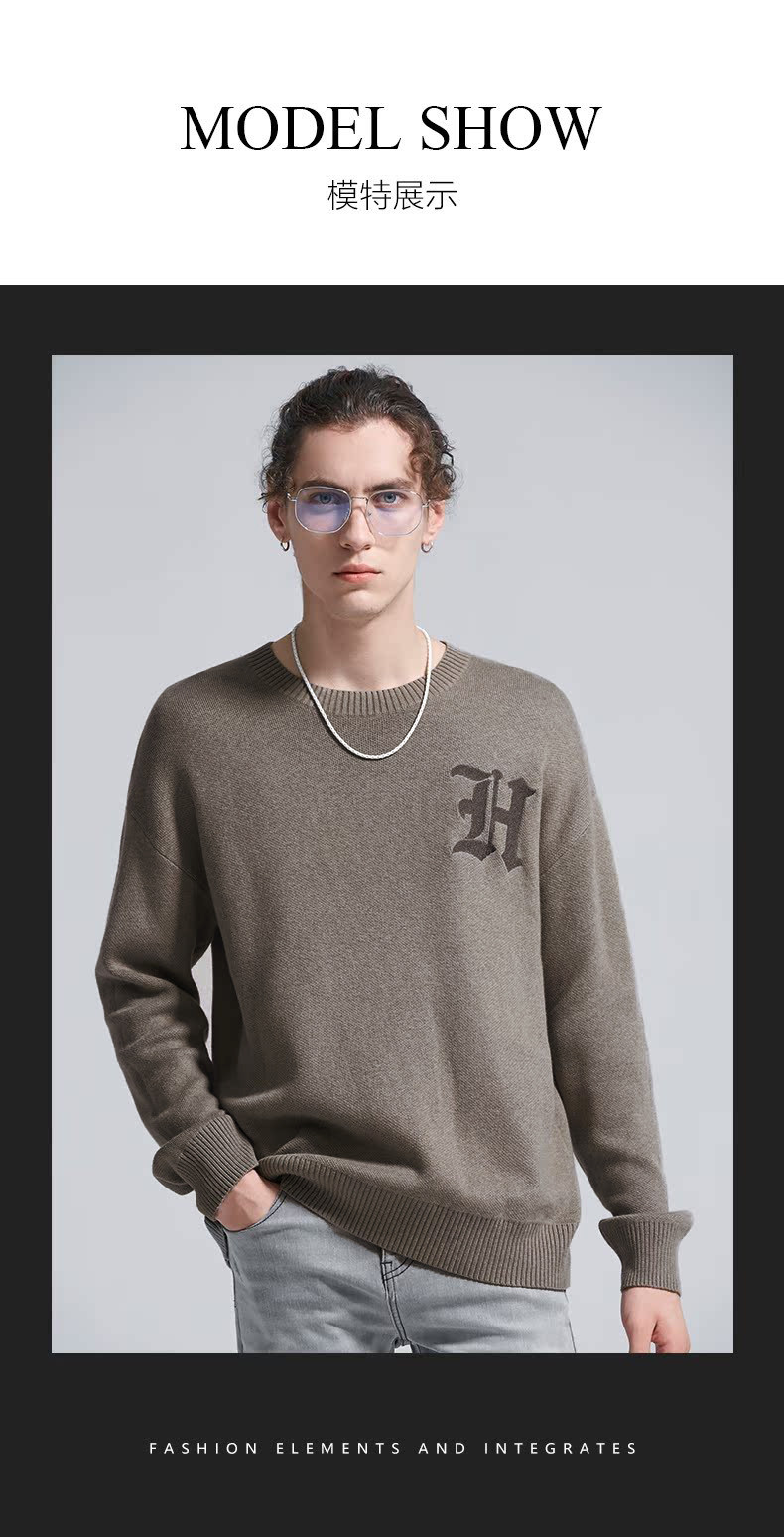 HIM漢崇 字母刺绣圆领毛衣男宽松保暖百搭长袖套头线衫 2024冬季