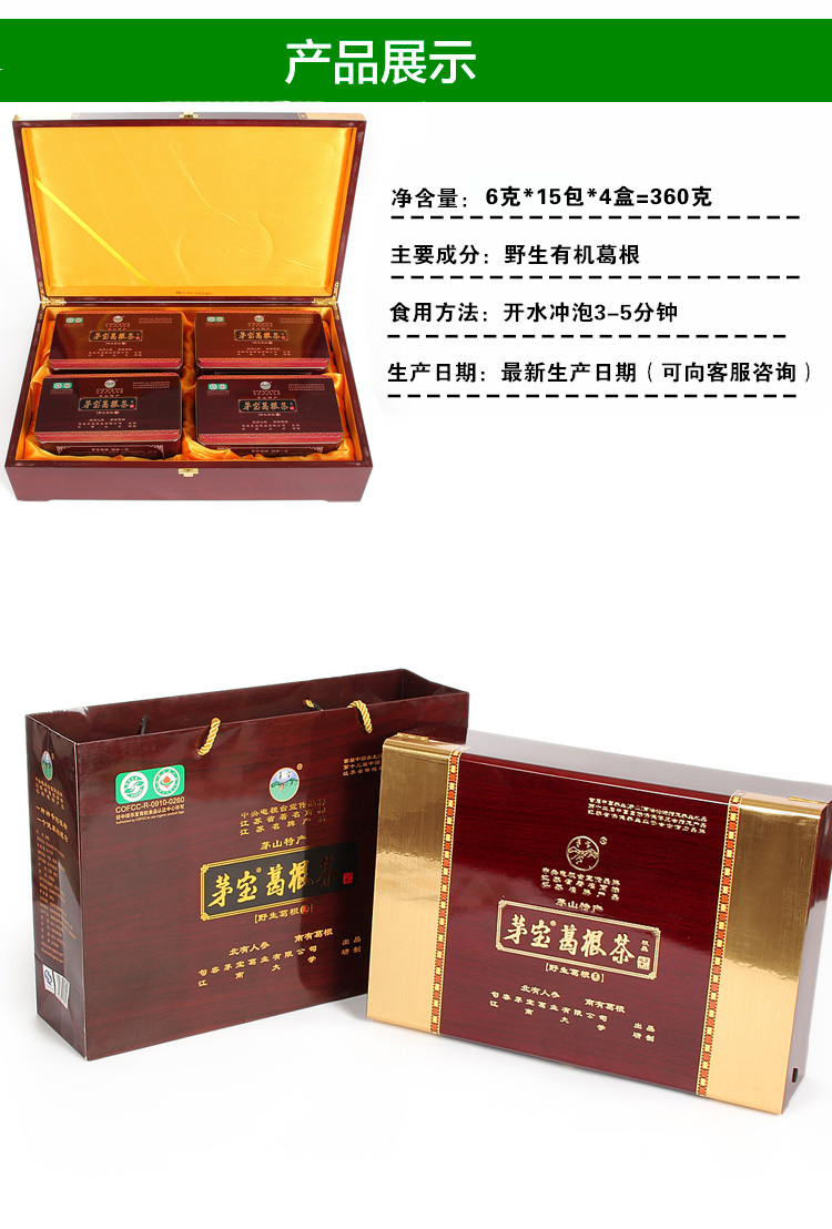 茅宝牌野生葛根茶有机食品句容茅山特产葛根茶节日礼品茶木礼盒装
