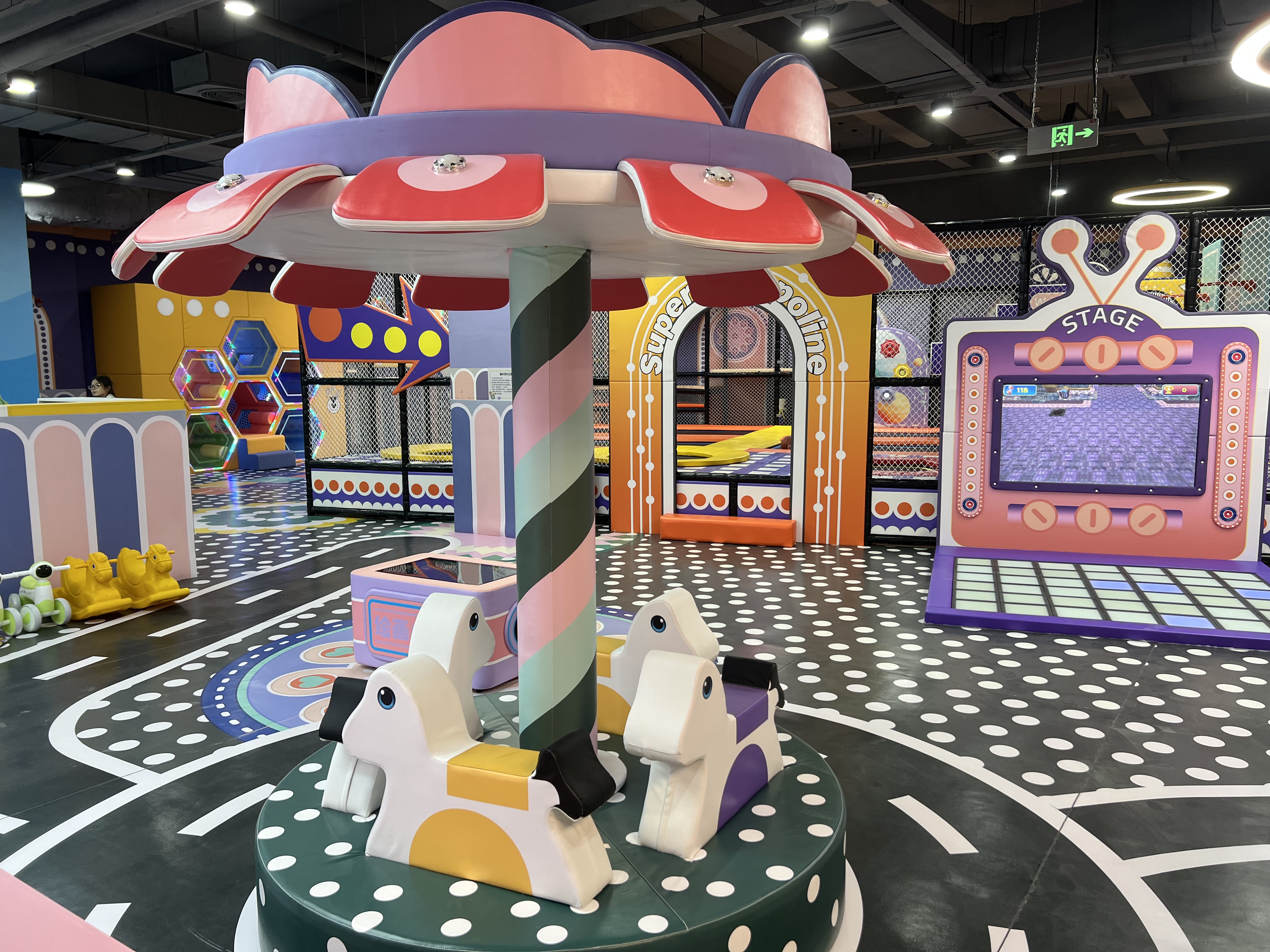 包含:蹦床区域 + 赶海捞鱼+ 旋转木马 + 蜂巢迷宫+ 跳方格等