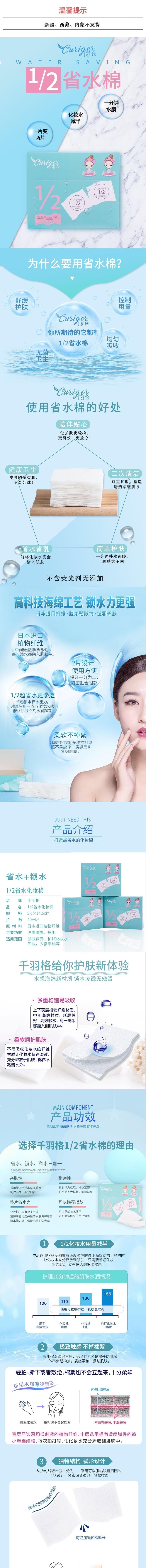 千羽格 1/2省水化妆棉*2 4897104150054