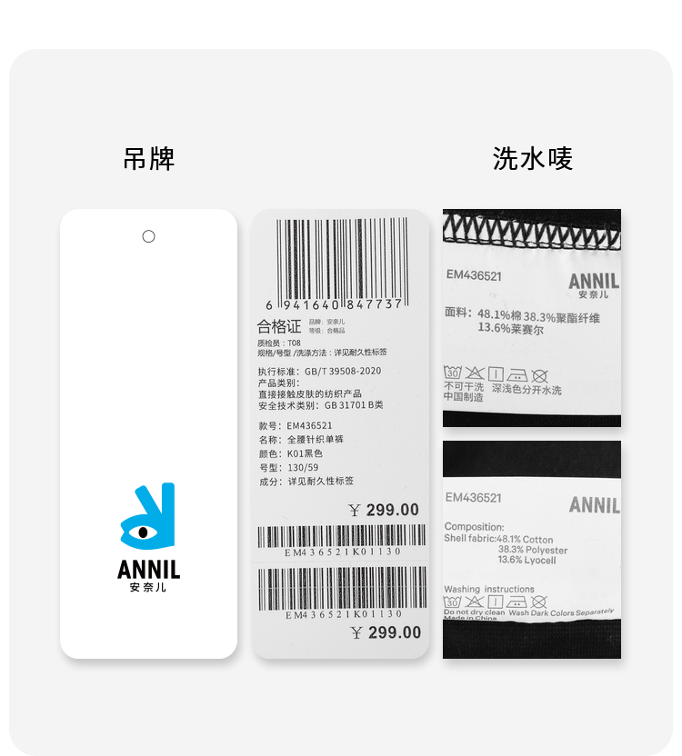 男女童全腰针织单裤秋季新款安奈儿童装EM436521