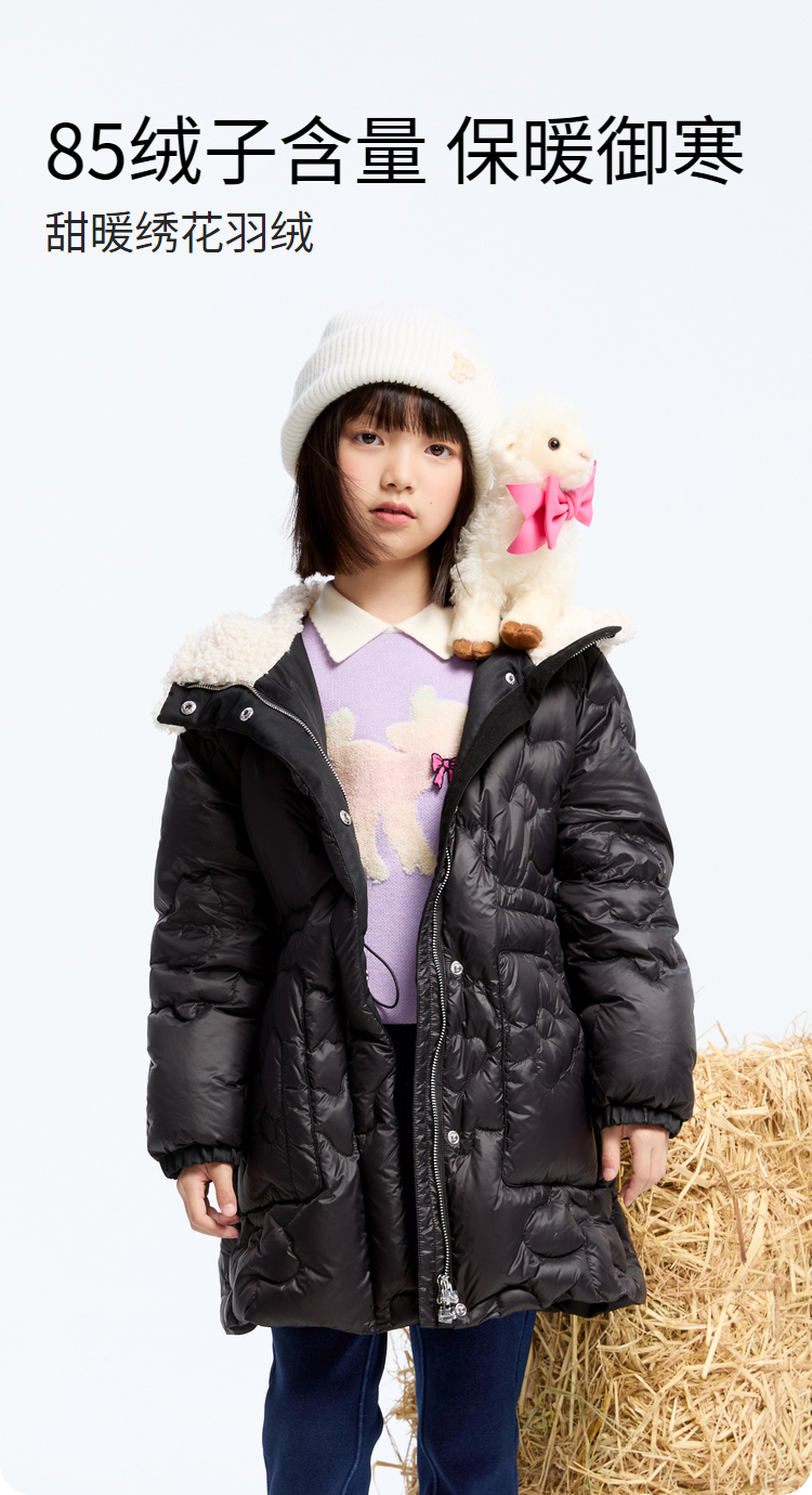 【御寒-5~5℃】女童中长款羽绒外套冬季新款安奈儿童装实体店同款AG445805