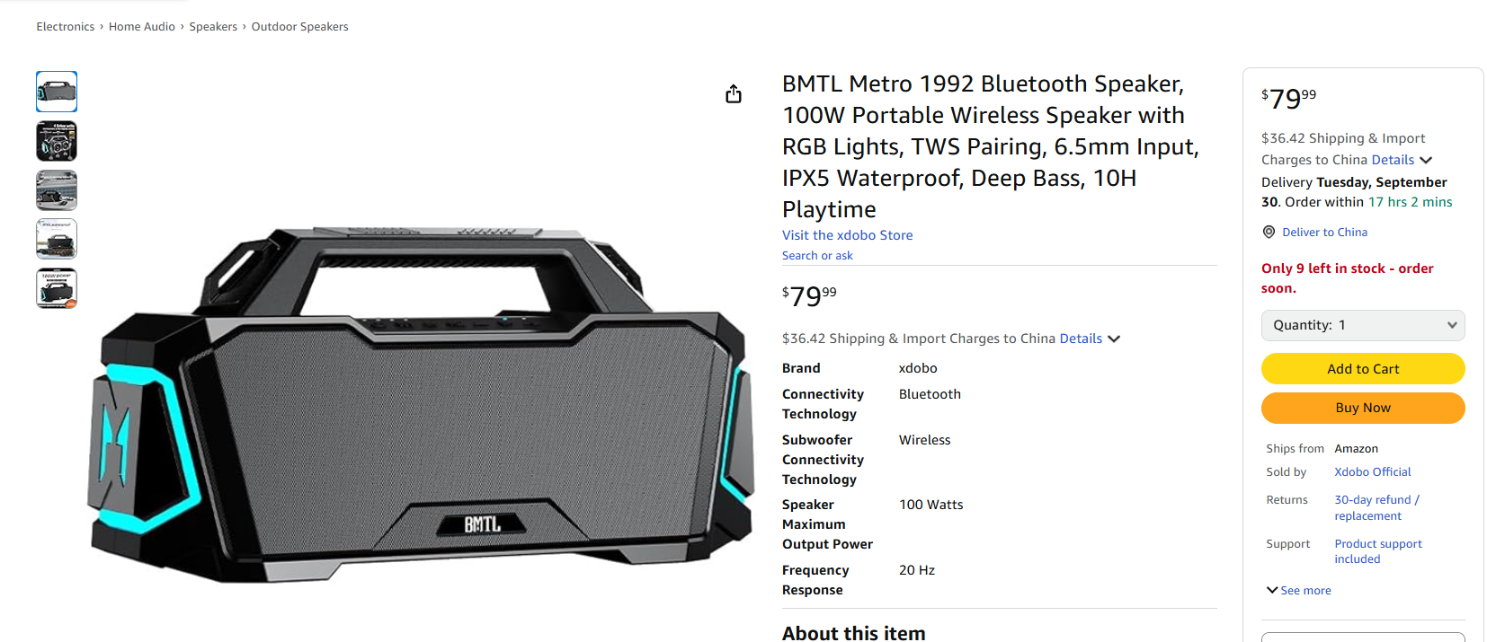 BMTL Metro 1992蓝牙音箱 便携式蓝牙音箱带RGB灯