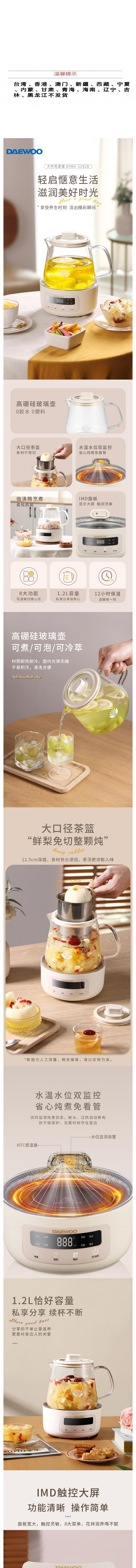 大宇 多功能恒温花茶壶暖阳白1.2L DYHC-1291D