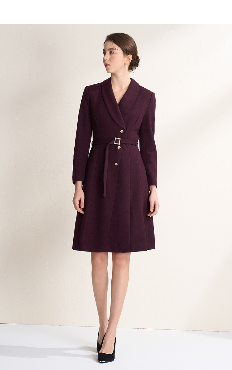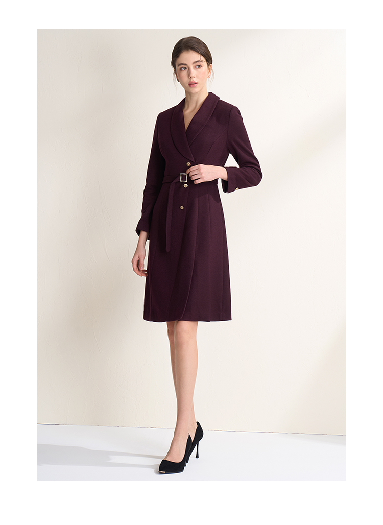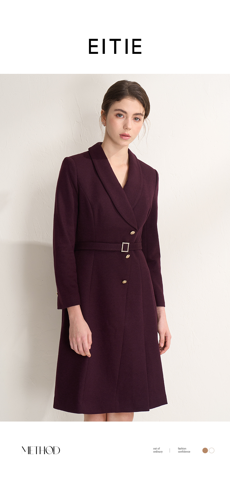 EITIE爱特爱新款通勤收腰西装领连衣裙6807513