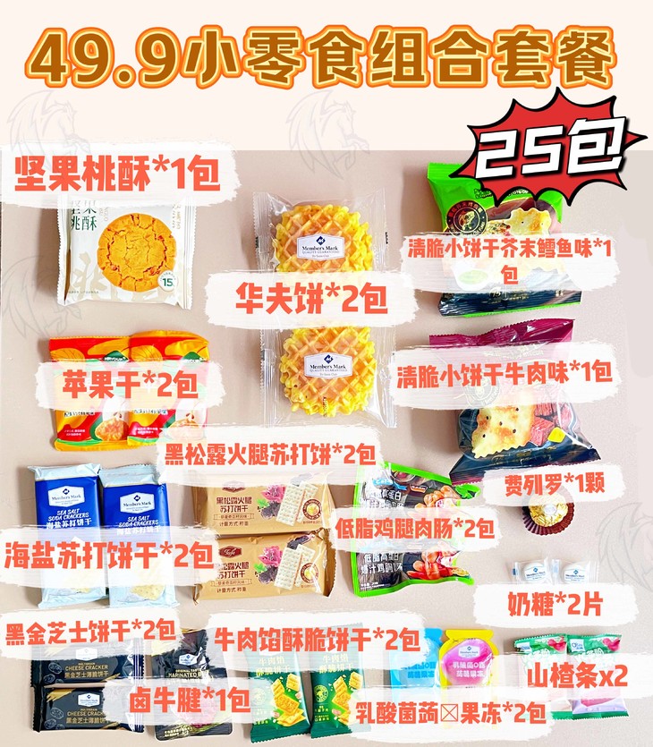 ✅49.9💰包邮 热门零食套餐(25包)