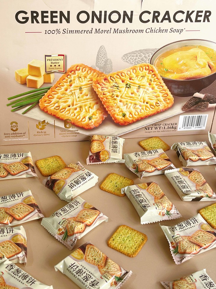 添加法国总统🍯黄油,浓郁醇香 融合香葱和鸡汤的口感,饼干更加醇香🌸羊肚菌鸡汤含量≥8%,100%慢煨羊肚菌鸡汤🍗特定薄脆工艺,口感更轻脆😋