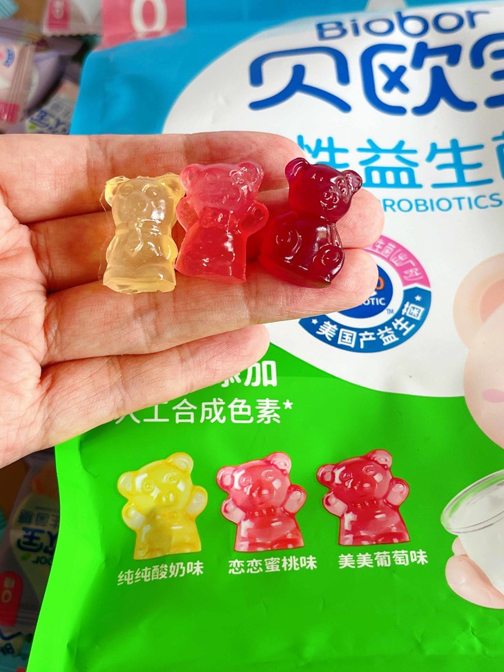 贝欧宝益生菌糖,颜色来源于果蔬汁软糖颜色为软糖原料,终所显颜色,无添加任何果蔬汁及色素,营养加油站,健康又好吃😋