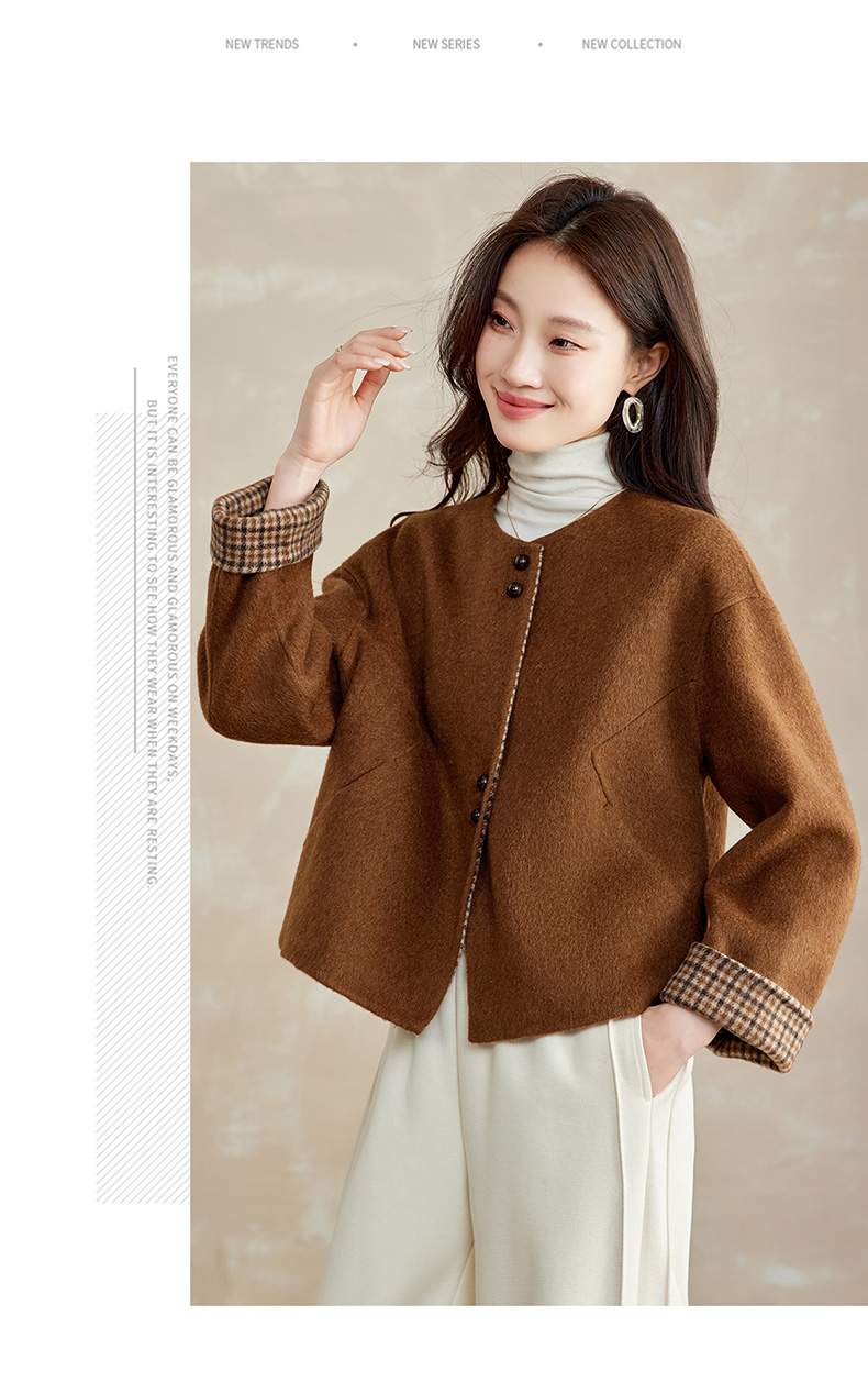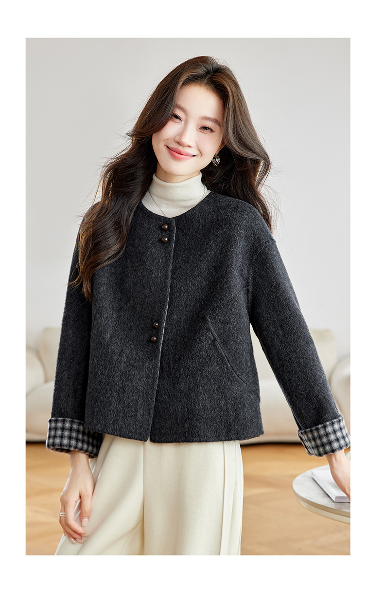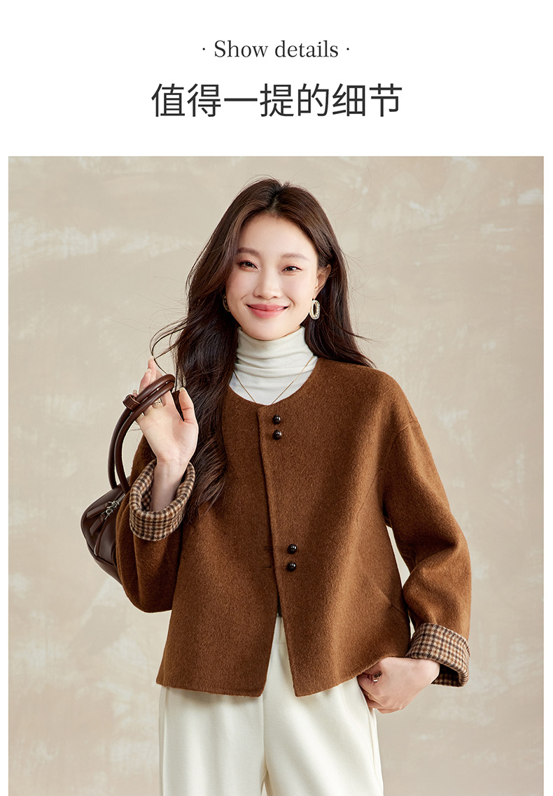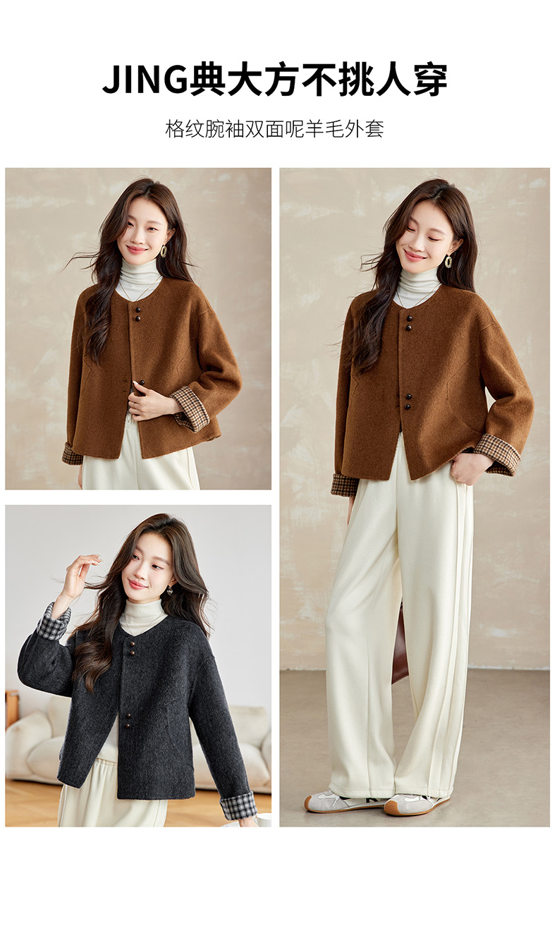 短款双面羊毛大衣,气质格纹拼接百搭显瘦毛呢外套HR-SHIY2620