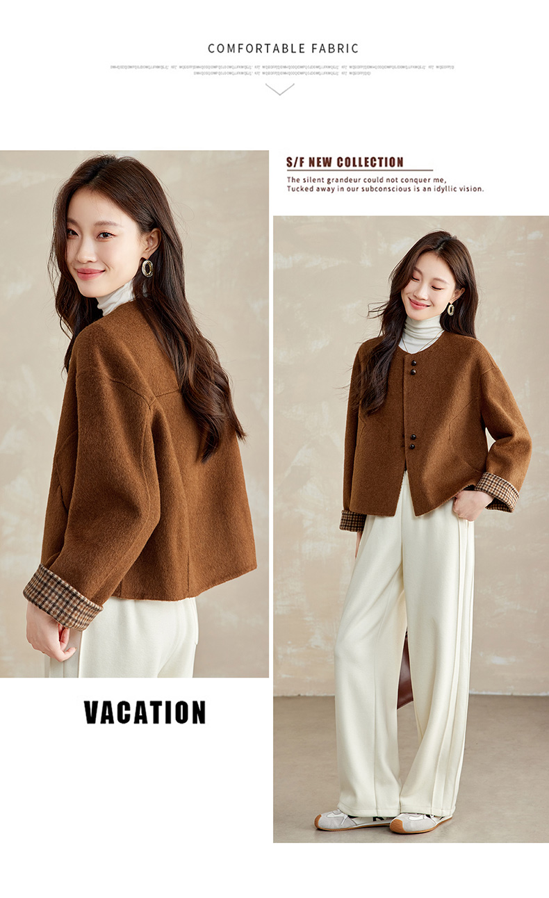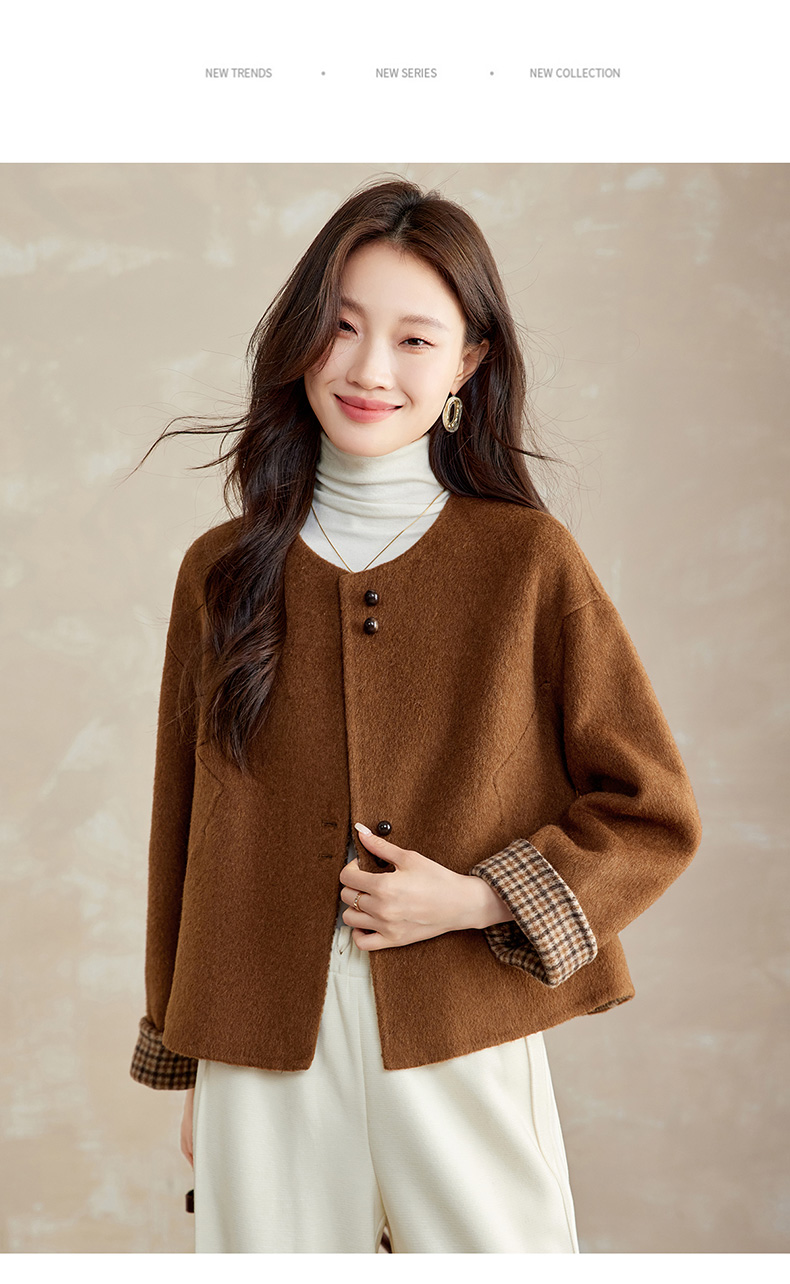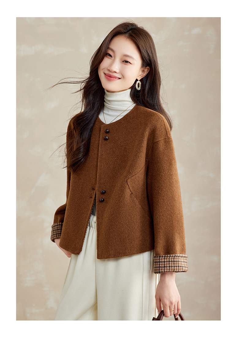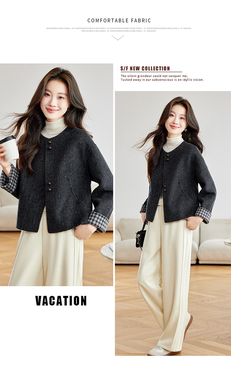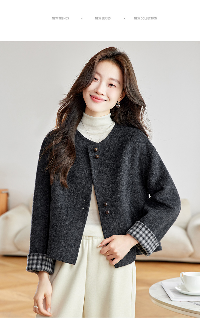 短款双面羊毛大衣,气质格纹拼接百搭显瘦毛呢外套HR-SHIY2620