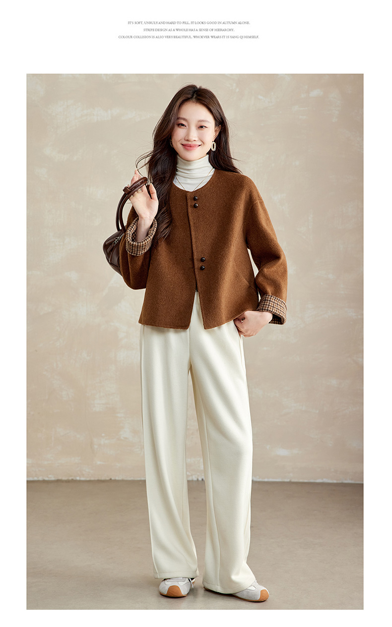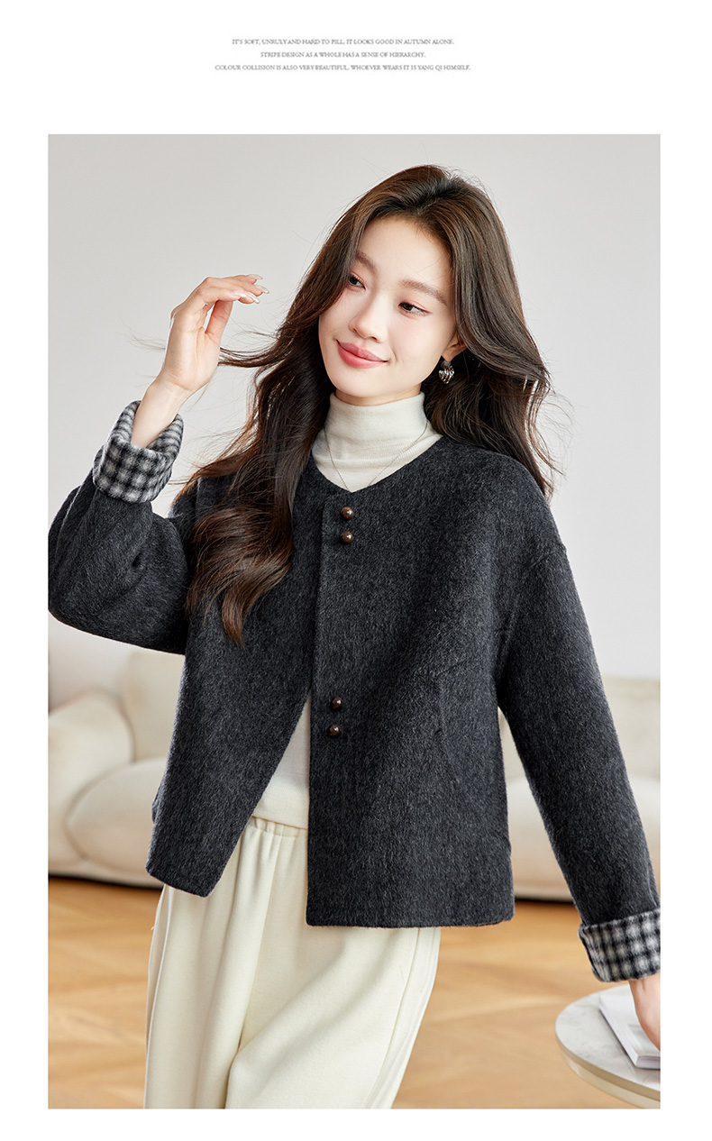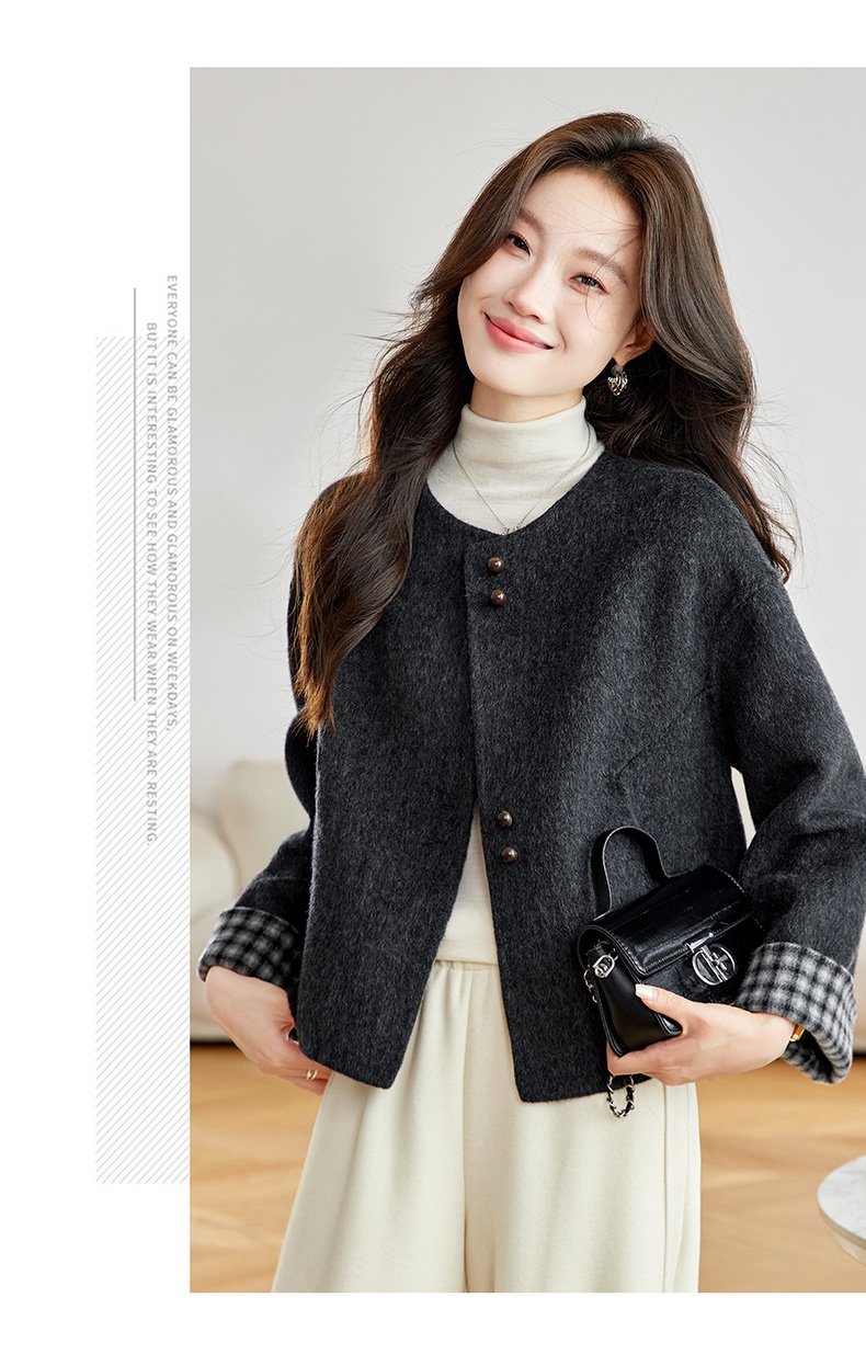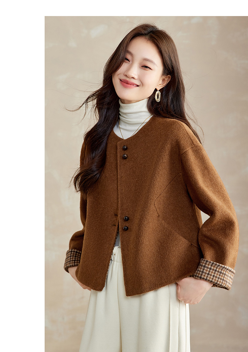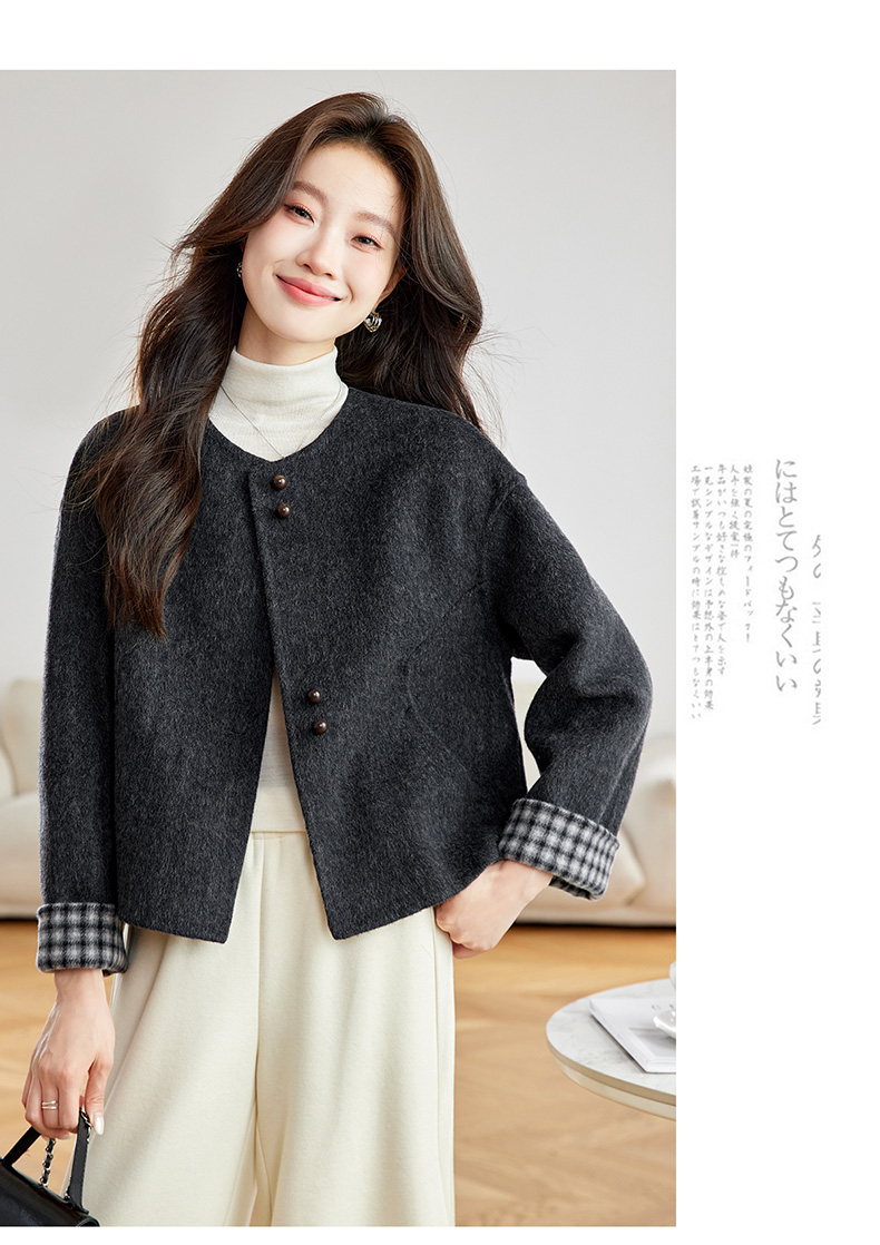 短款双面羊毛大衣,气质格纹拼接百搭显瘦毛呢外套HR-SHIY2620