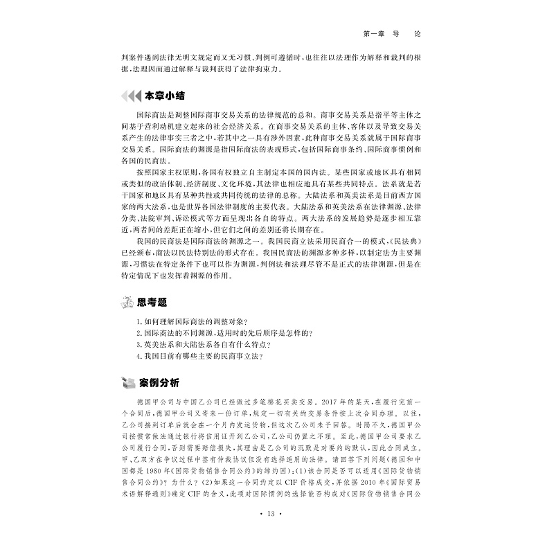 本书系统介绍国际商事活动中重要的法律规则,为国际贸易活动提供法律依据,适合国际贸易及相关专业的专科及以上专业学生的学习。本书的内容主要包括:国际商法导论、国际商事组织法、国际商事合同法、国际商事代理法、国际货物买卖法、国际货物运输法、国际货物运输保险法、国际贸易结算法、国际技术贸易法和国际商事仲裁法等。