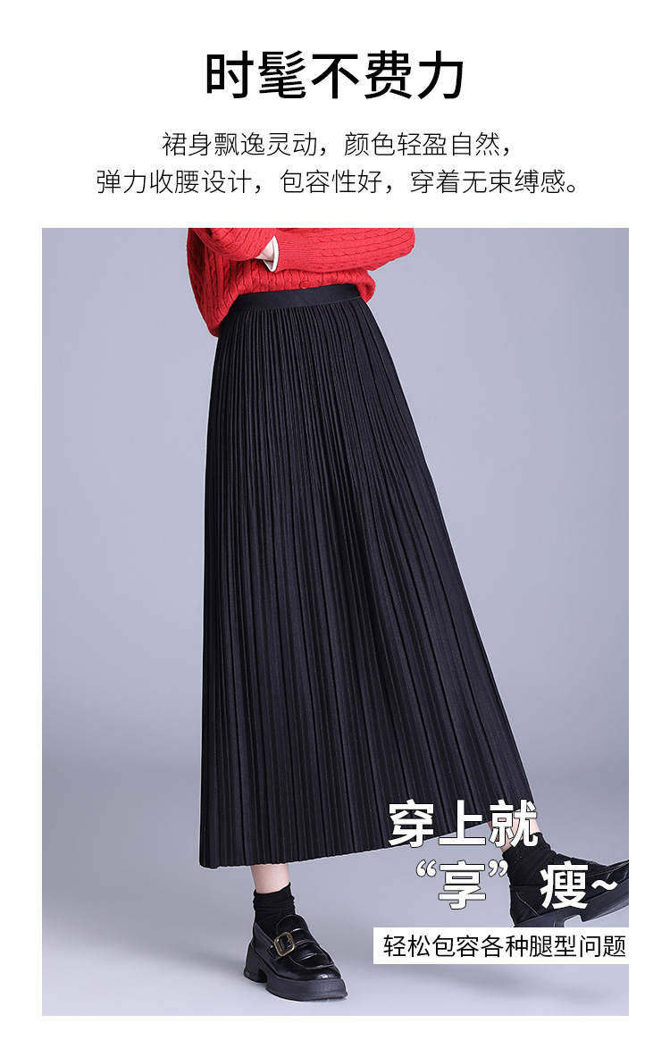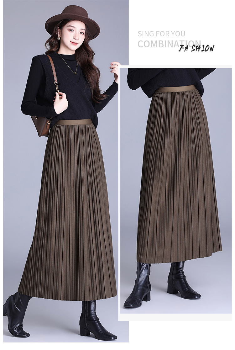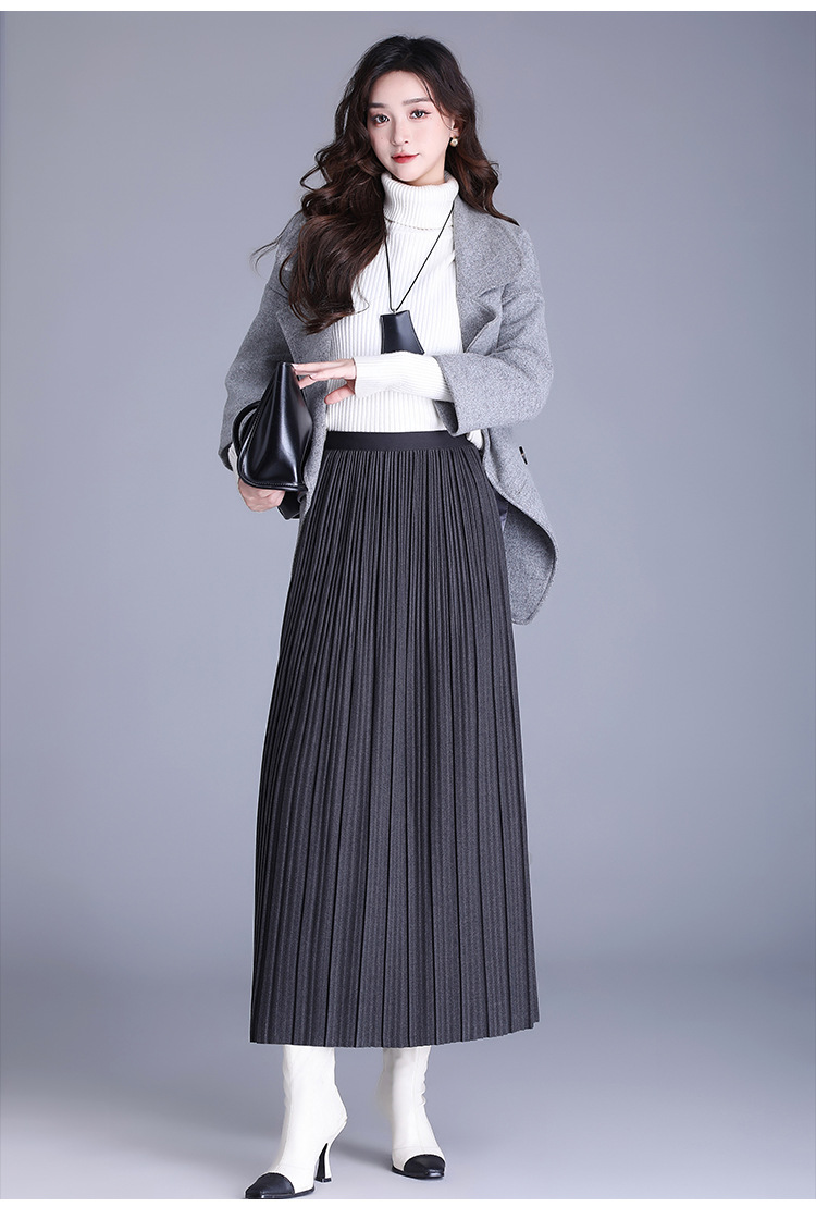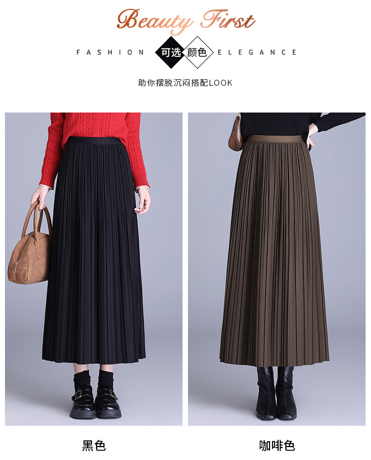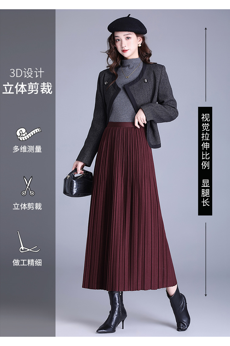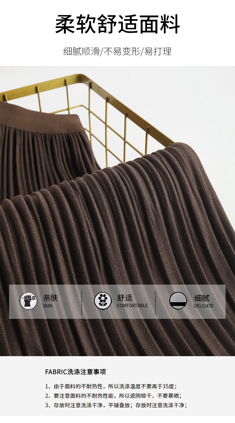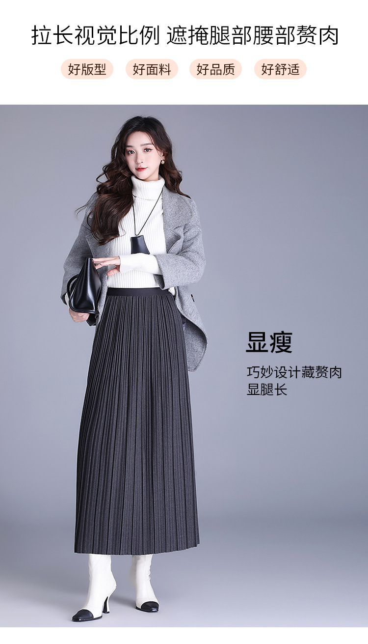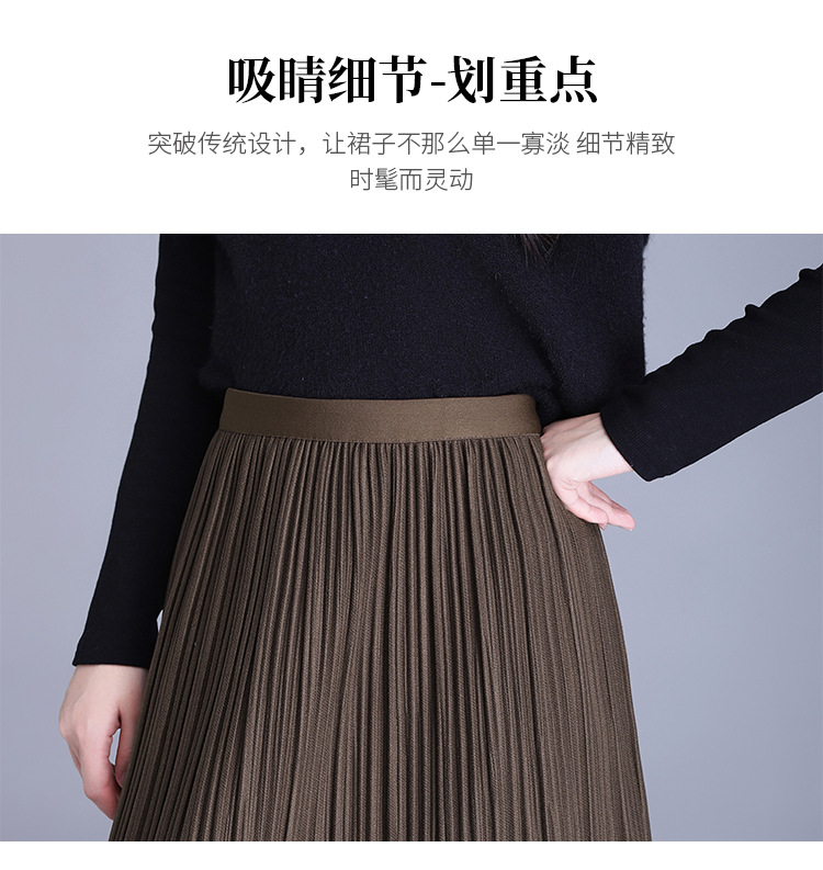 QYM ZS5501毛呢百褶裙高腰显瘦垂感压褶单层半身裙