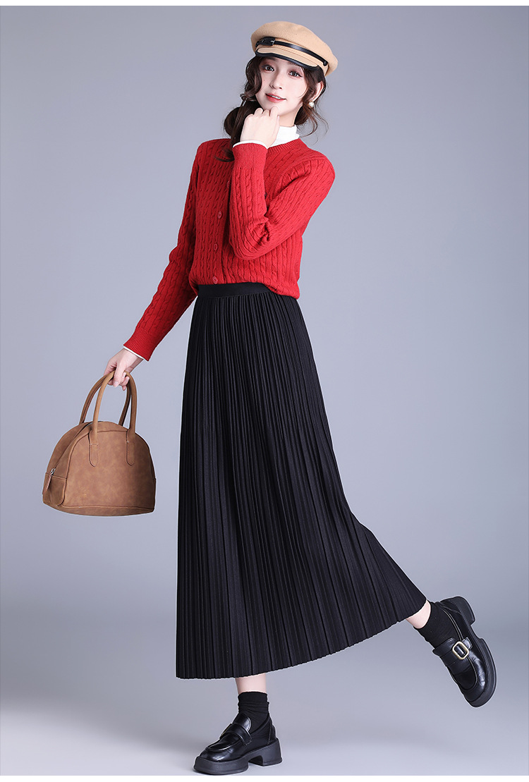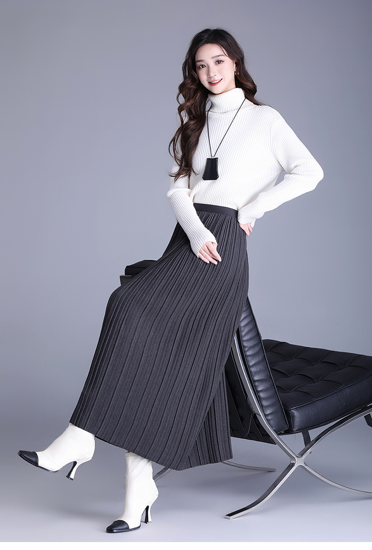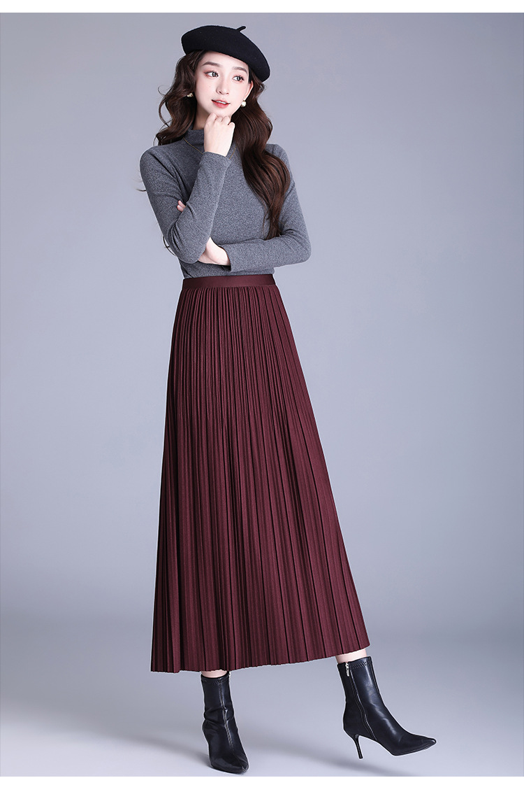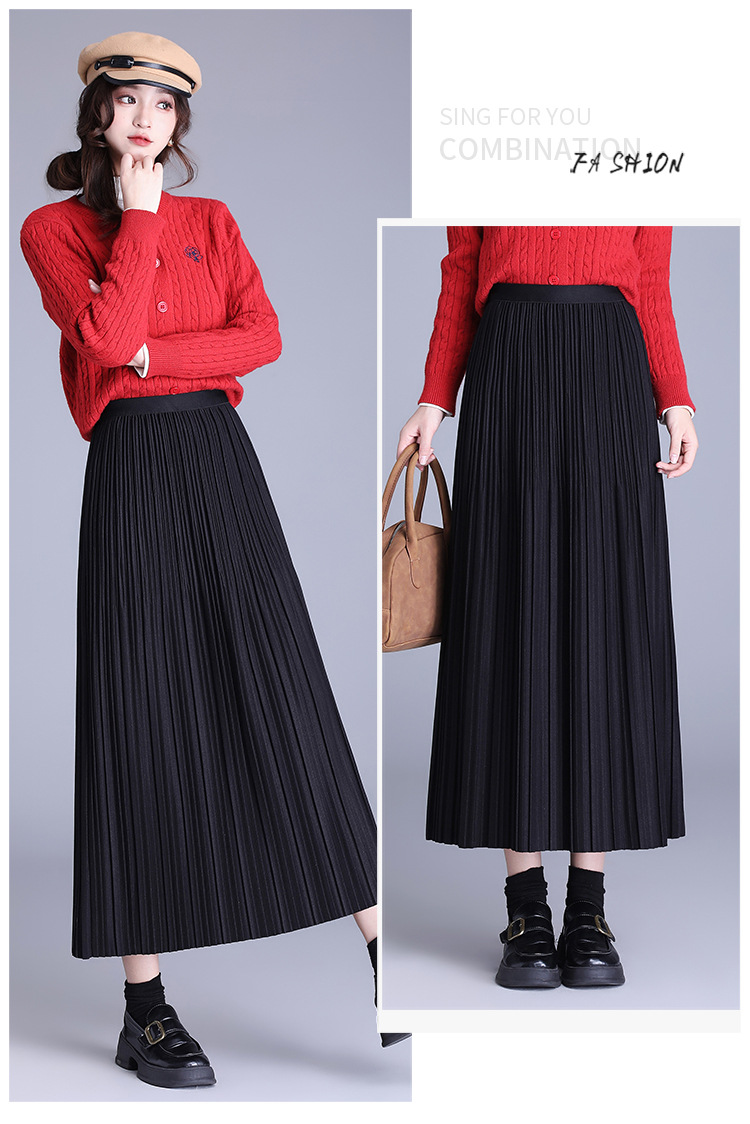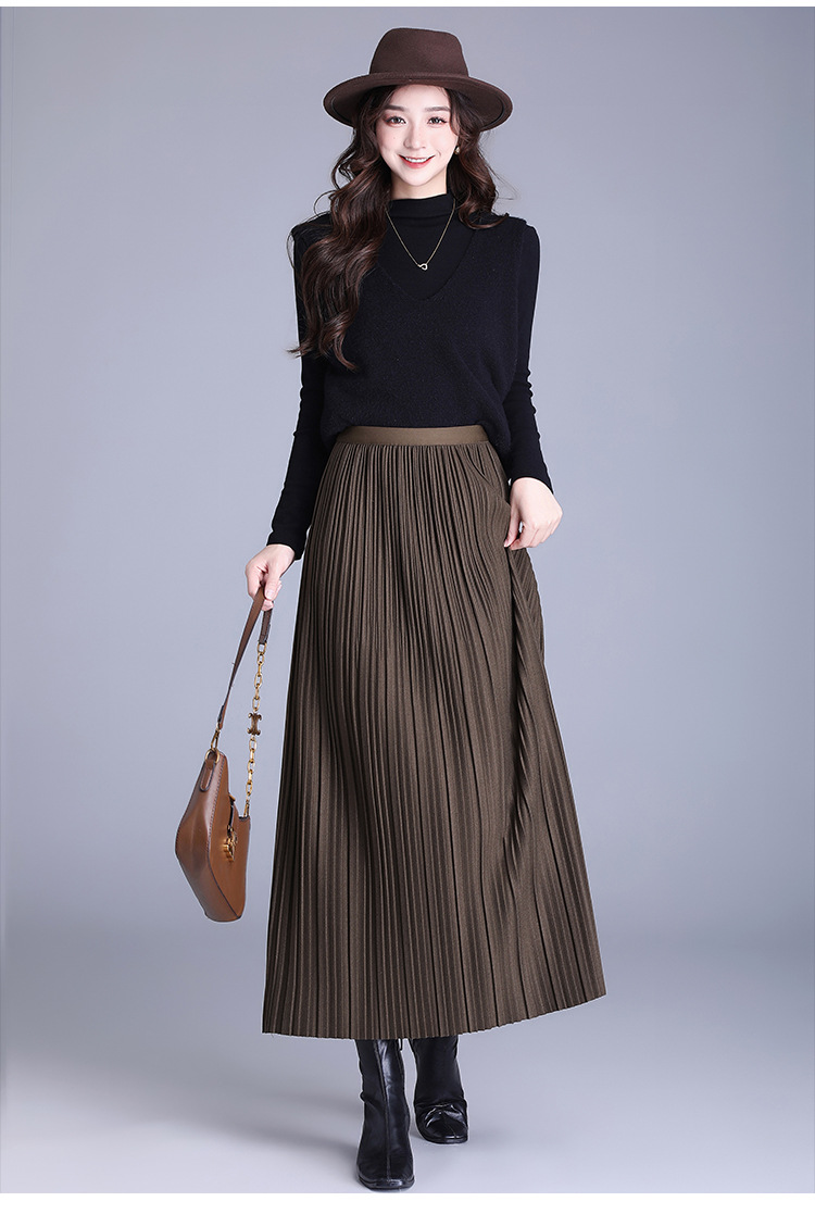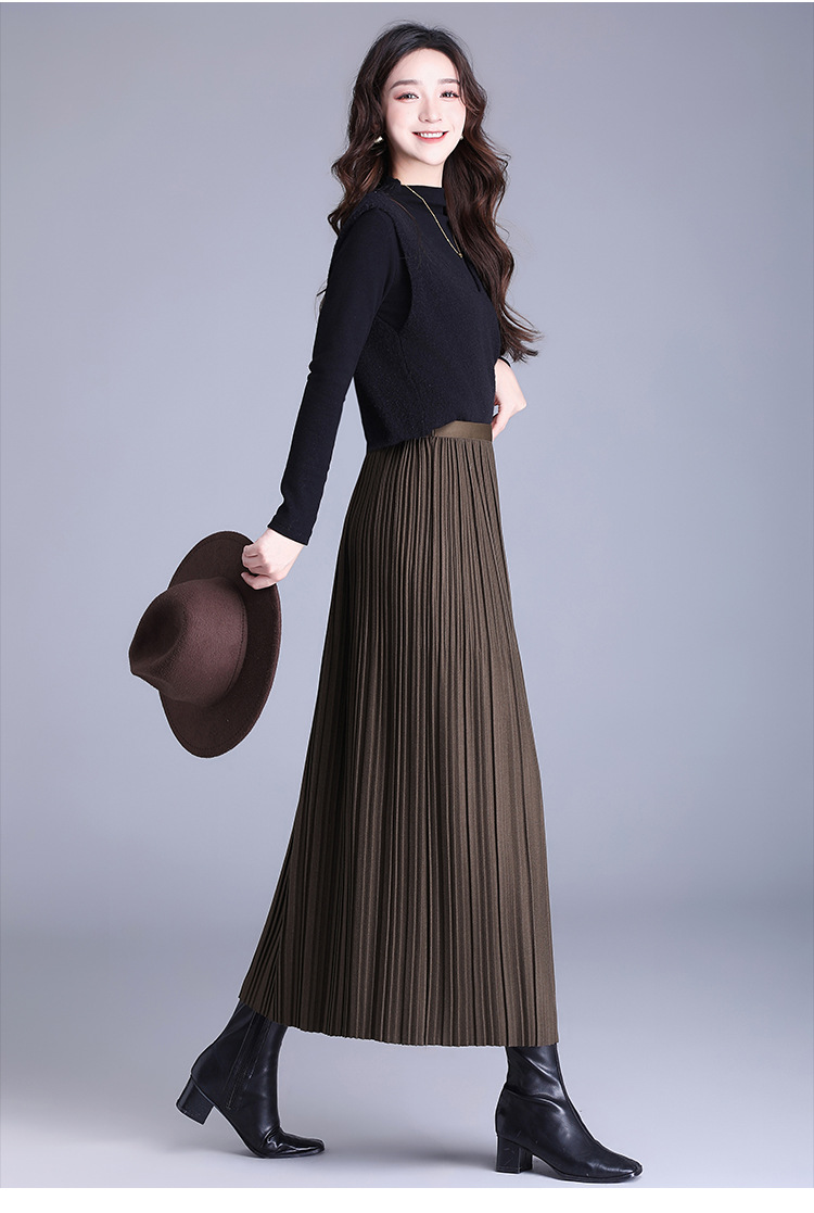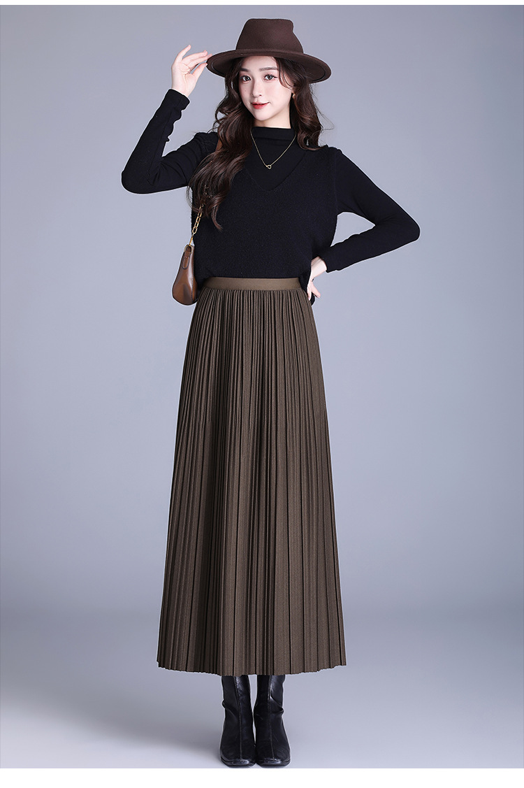 QYM ZS5501毛呢百褶裙高腰显瘦垂感压褶单层半身裙