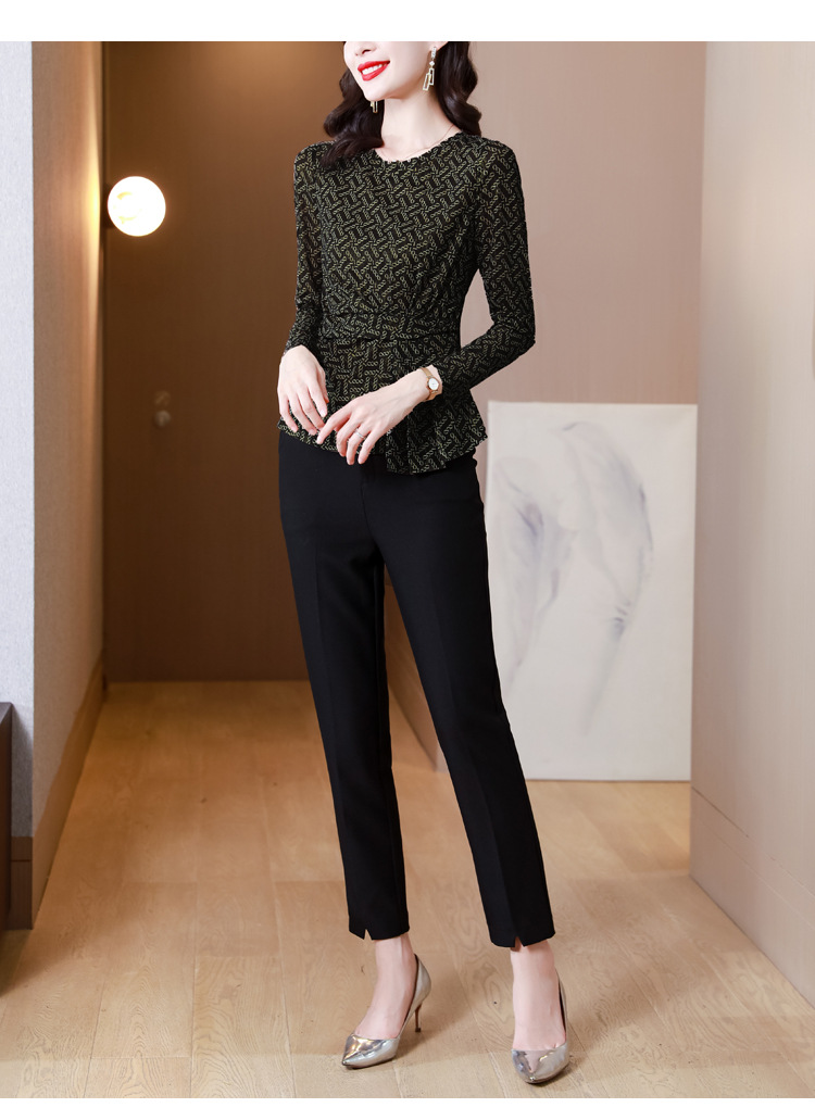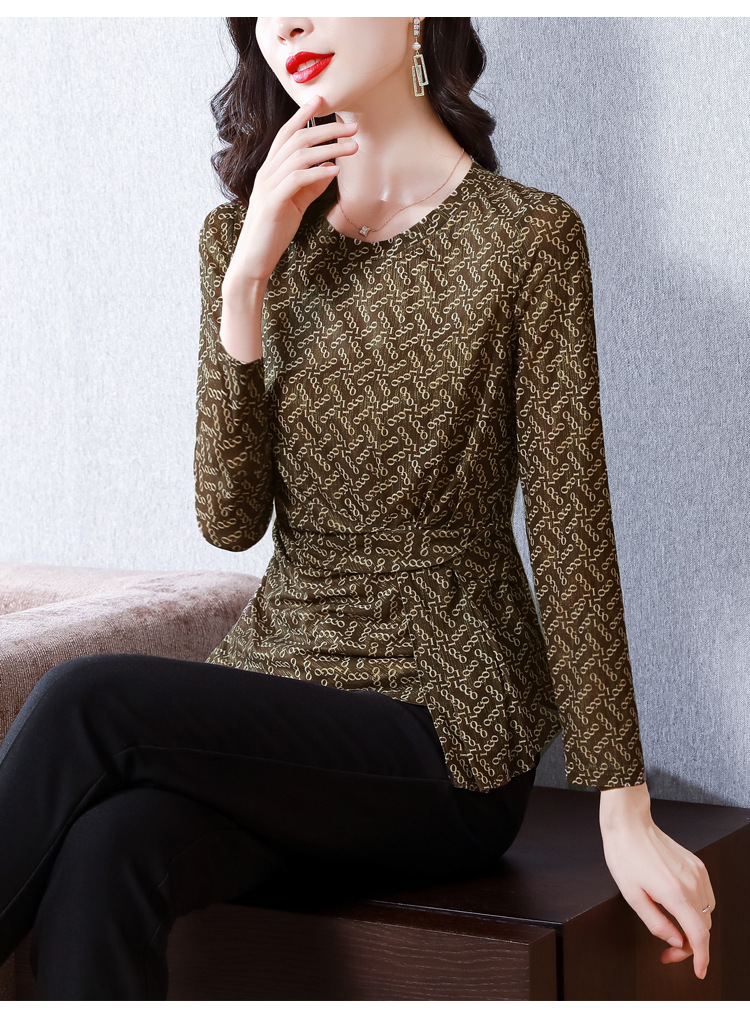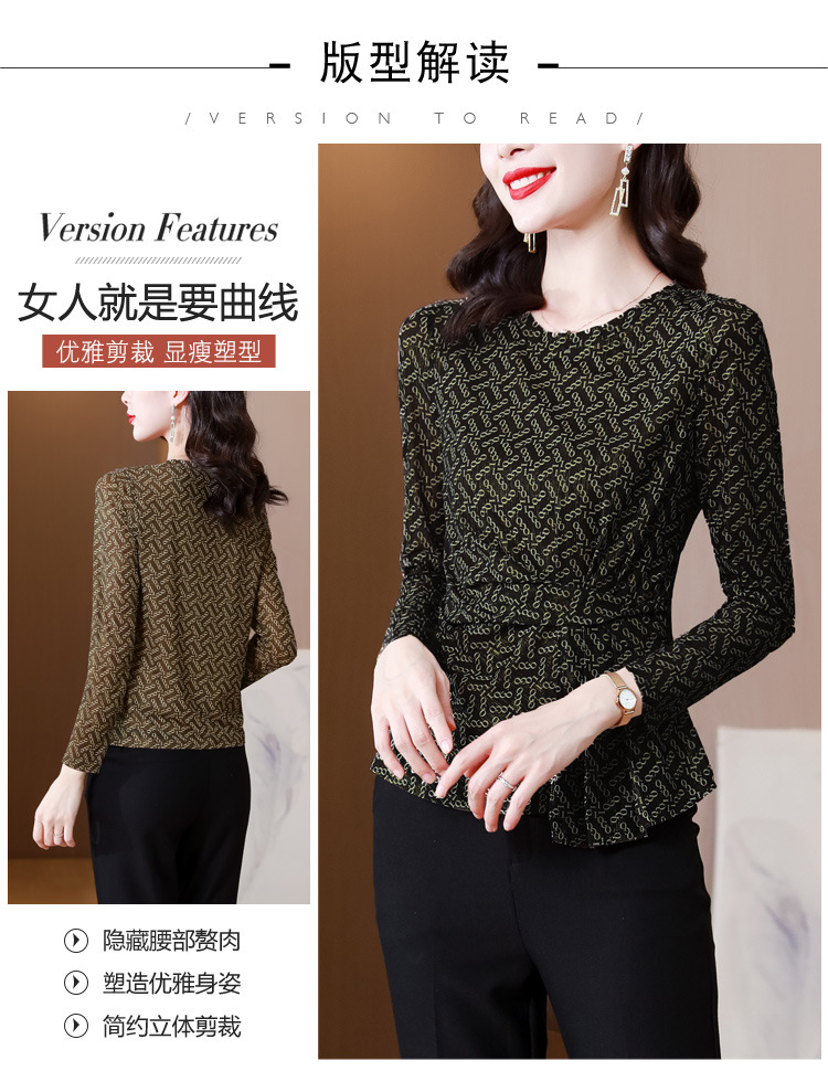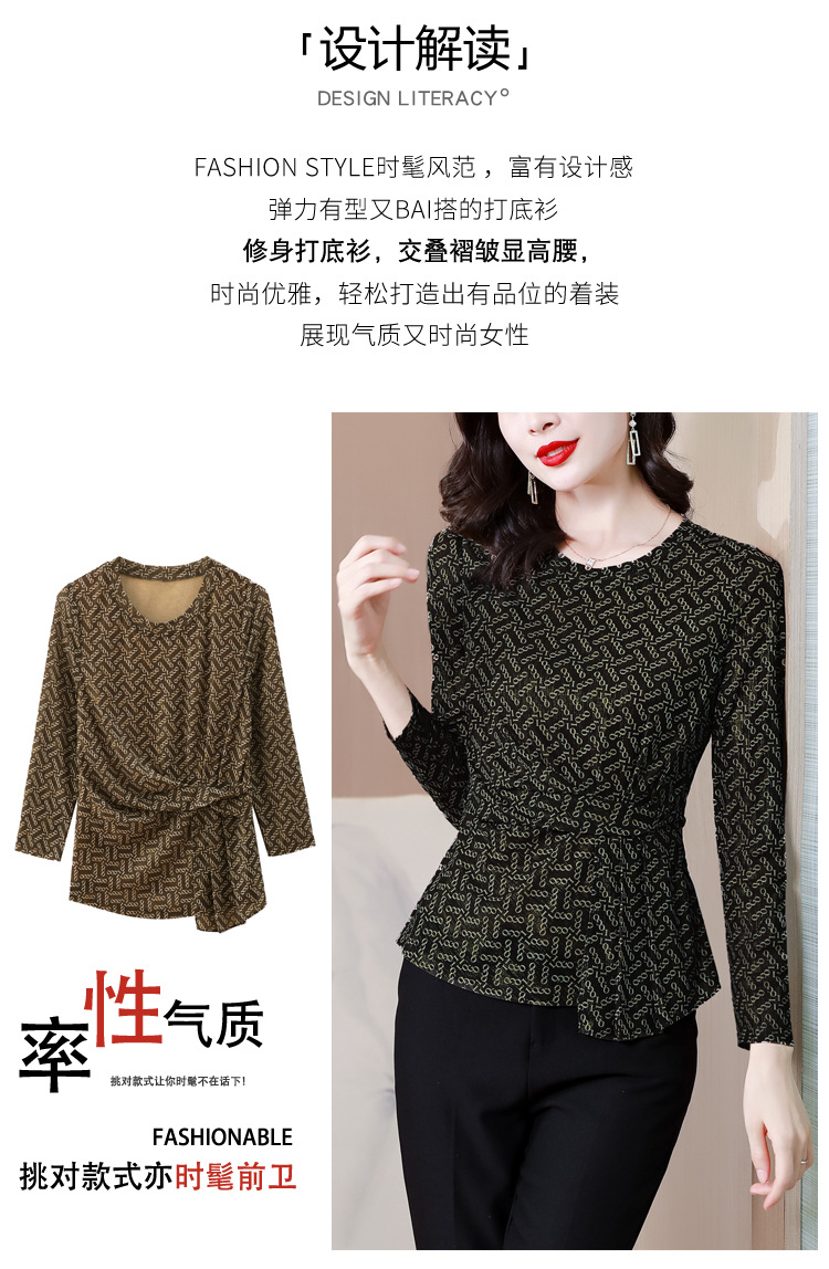 KQL2025秋季新款圆领时尚百搭小衫洋气修身气质长袖打底衫女