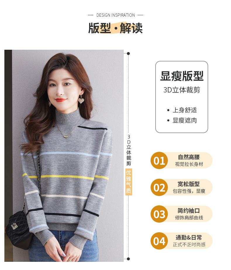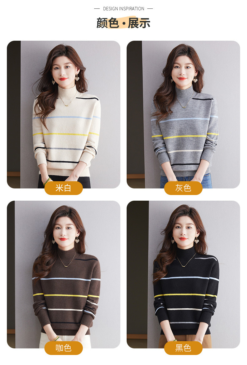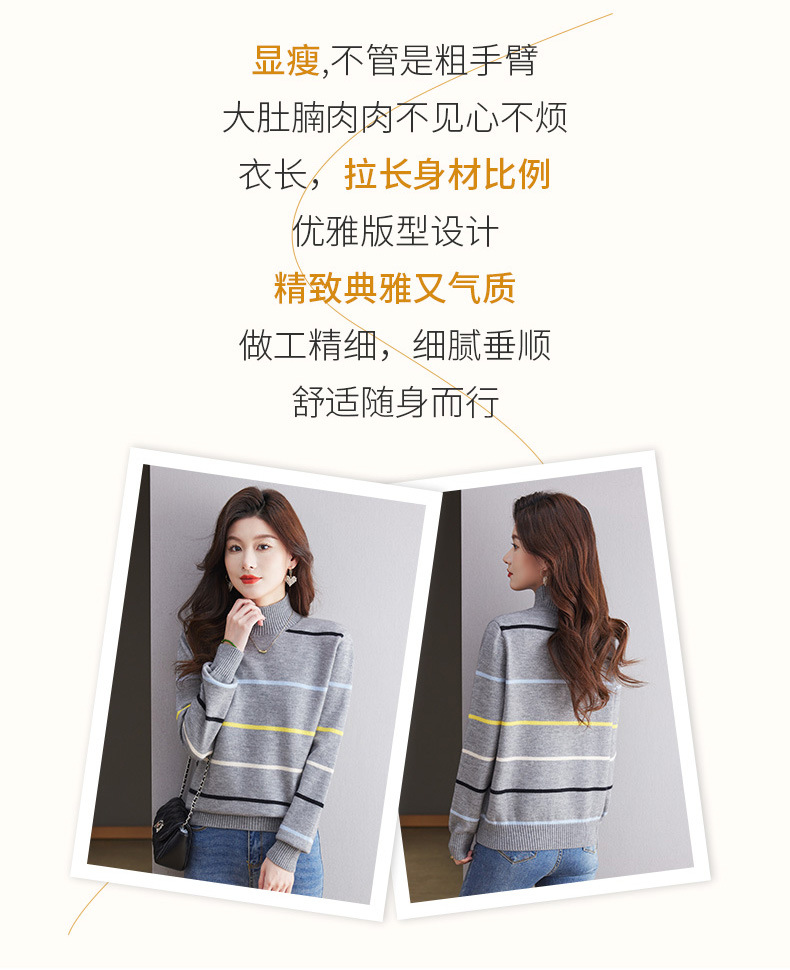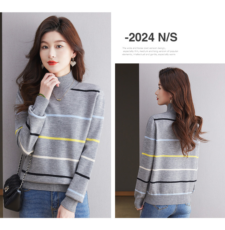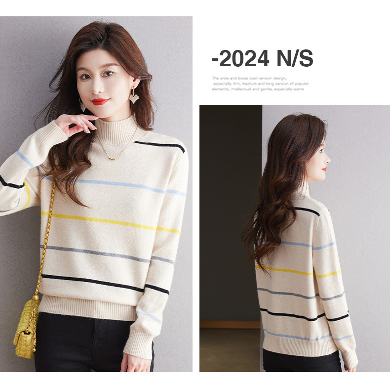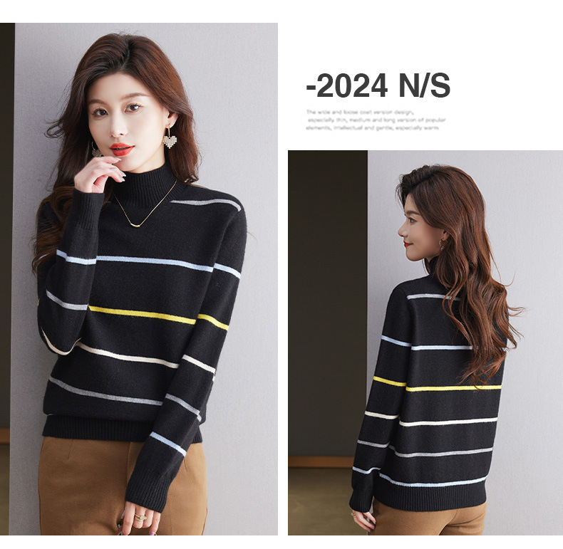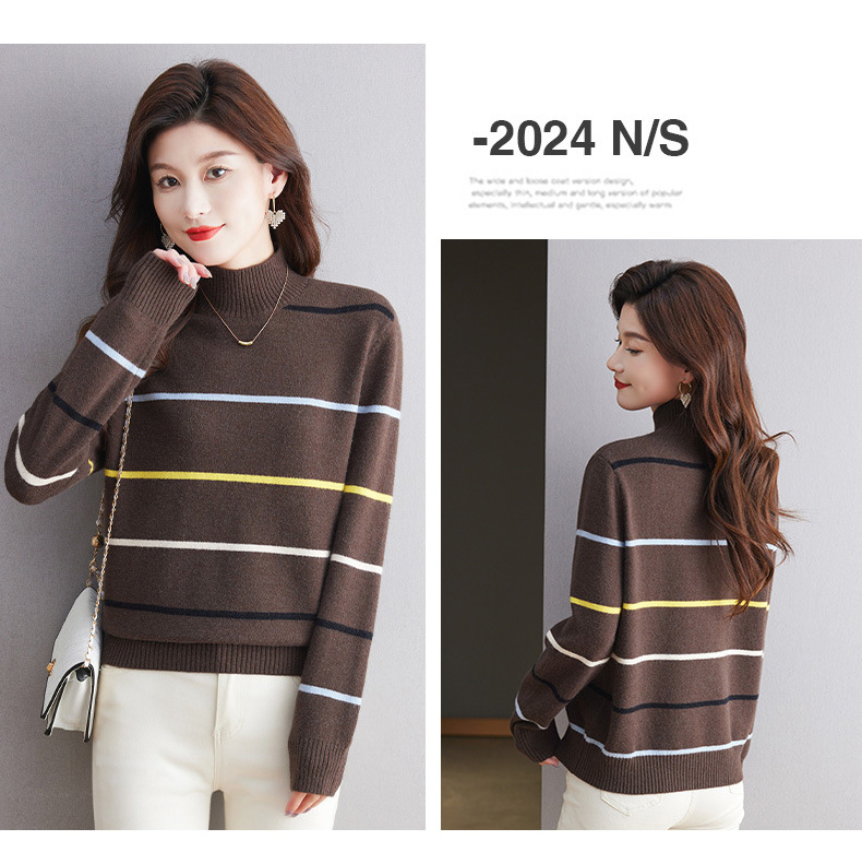 CC-101-2055条纹毛衣女士2024新款秋冬季洋气减龄打底衫显瘦宽松内搭