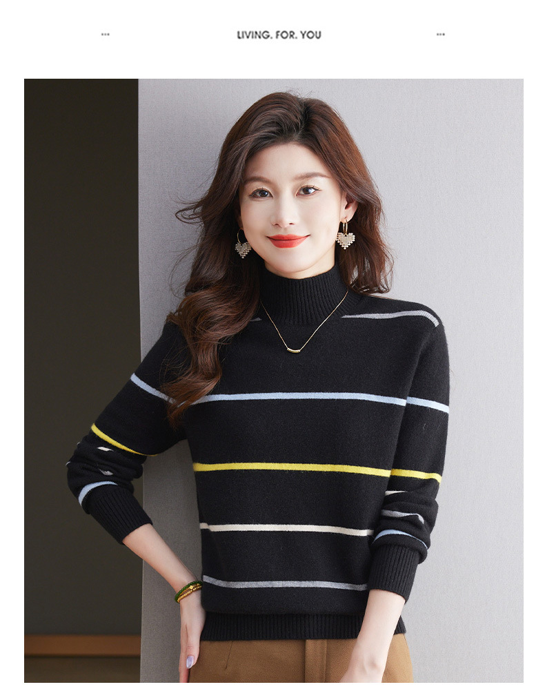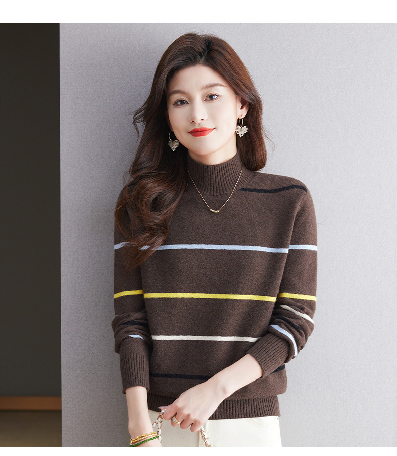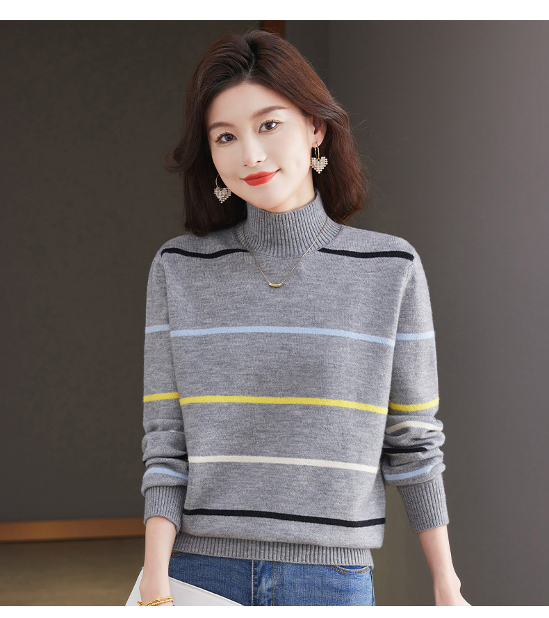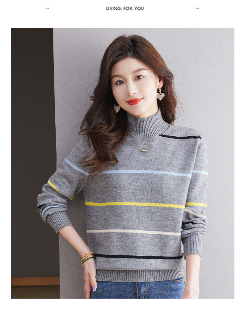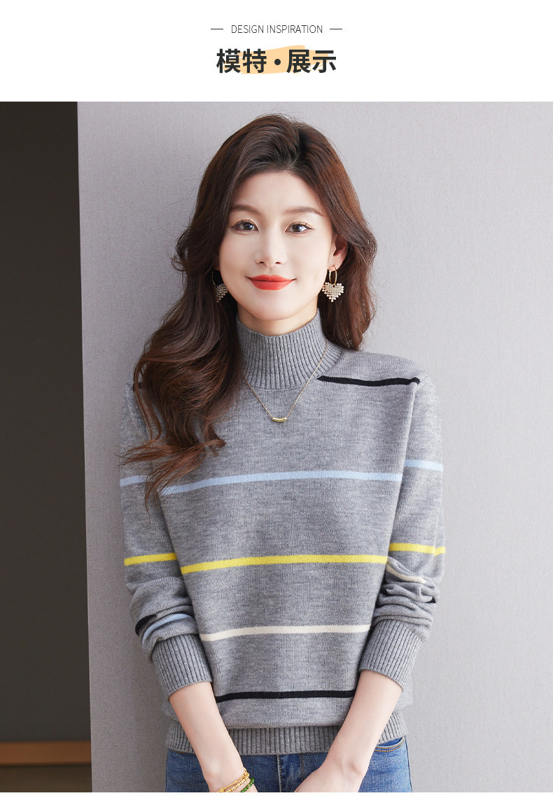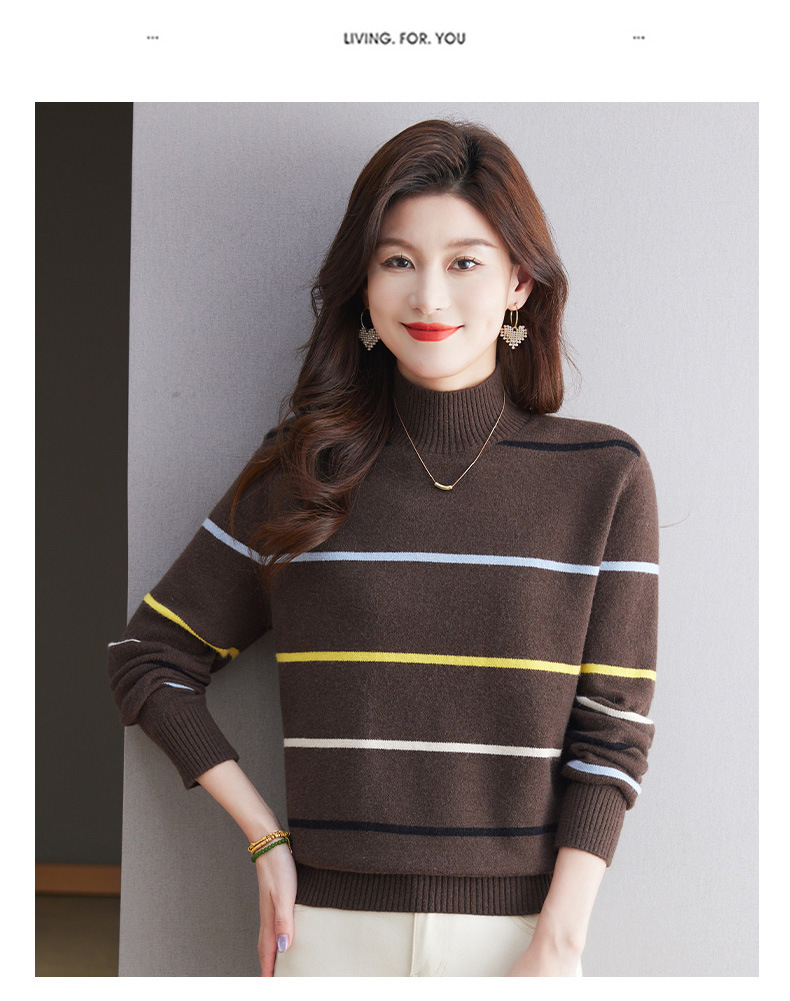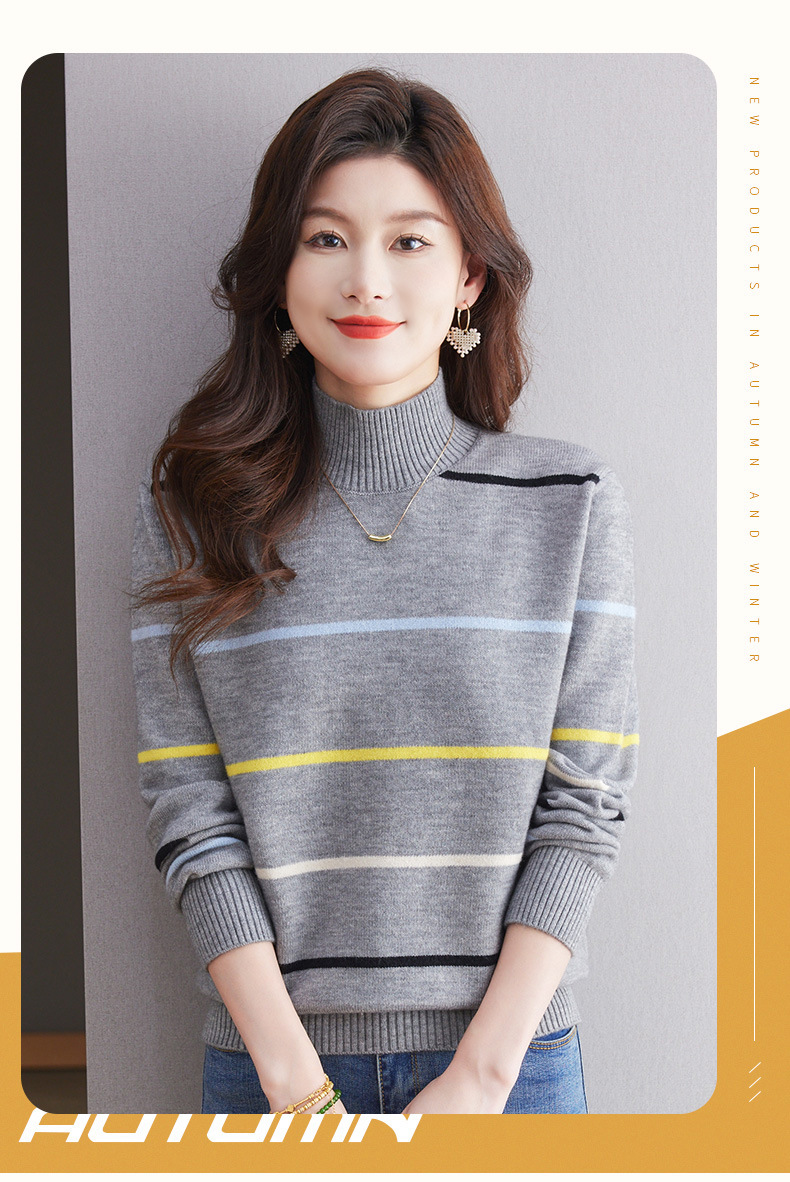 CC-101-2055条纹毛衣女士2024新款秋冬季洋气减龄打底衫显瘦宽松内搭