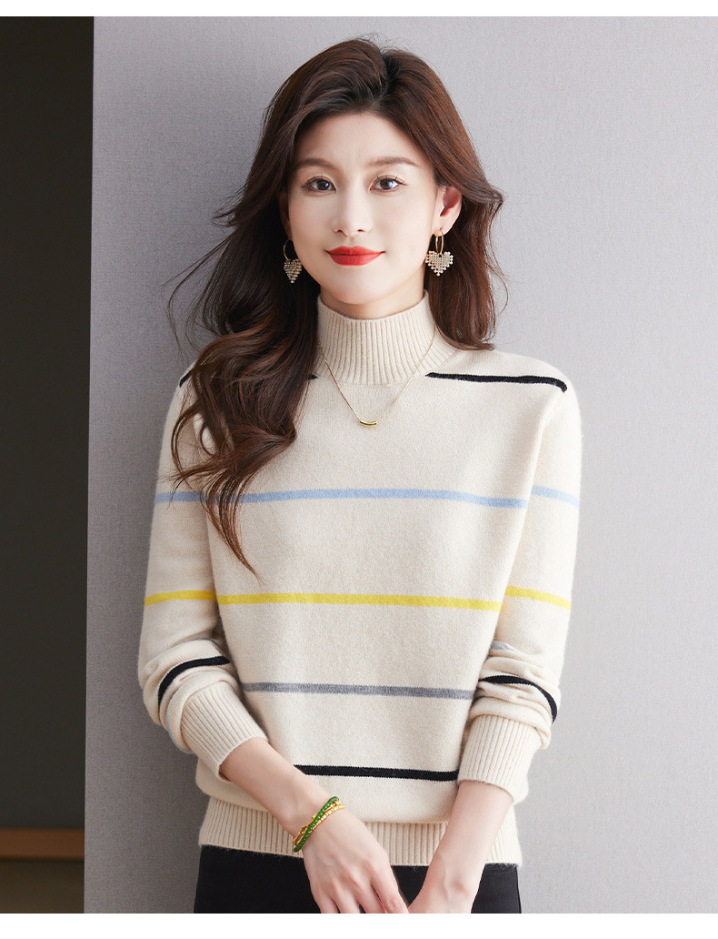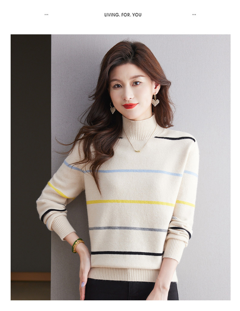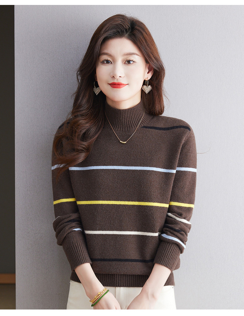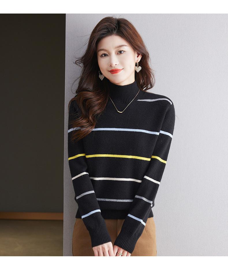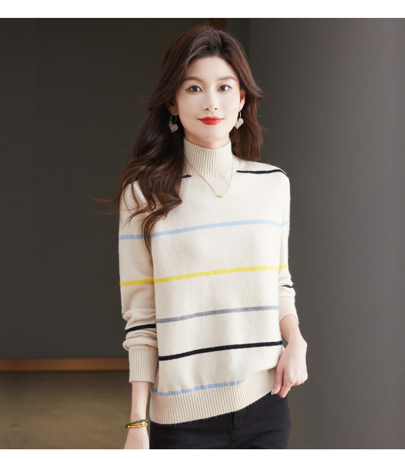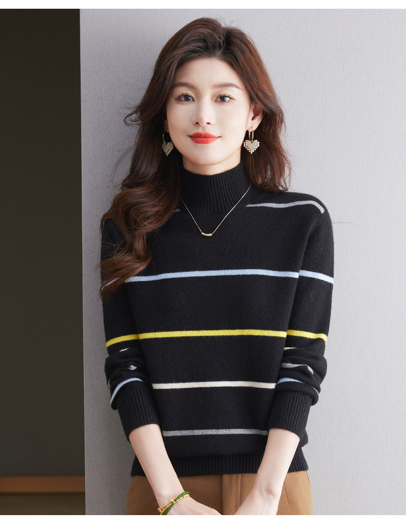 CC-101-2055条纹毛衣女士2024新款秋冬季洋气减龄打底衫显瘦宽松内搭