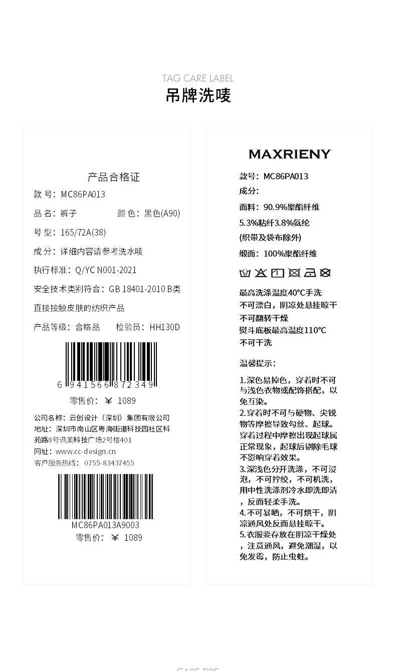 【商场同款-春游记】MAXRIENY宽腰节收腰长裤女2025春季新款(货号:MC86PA013)