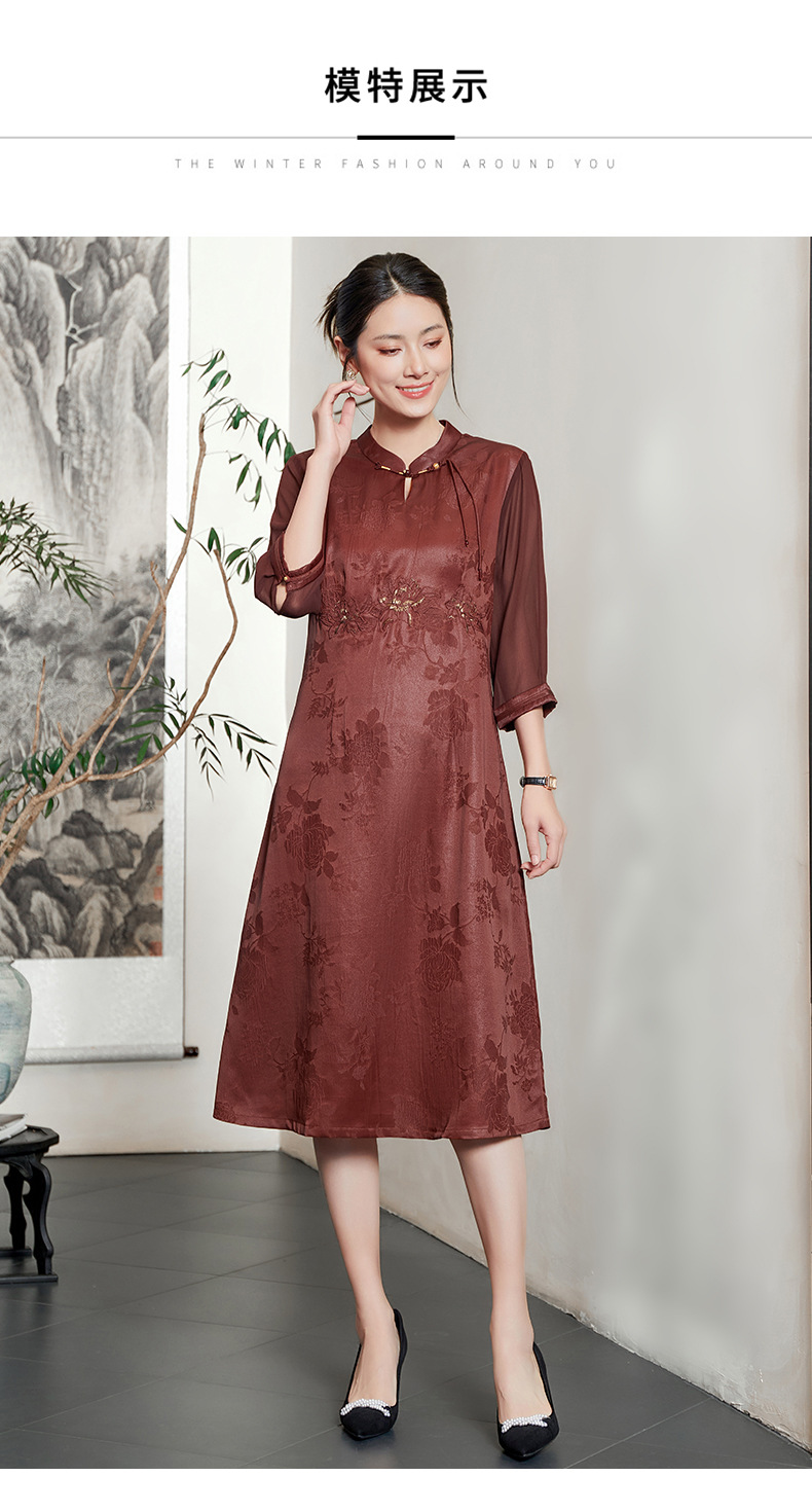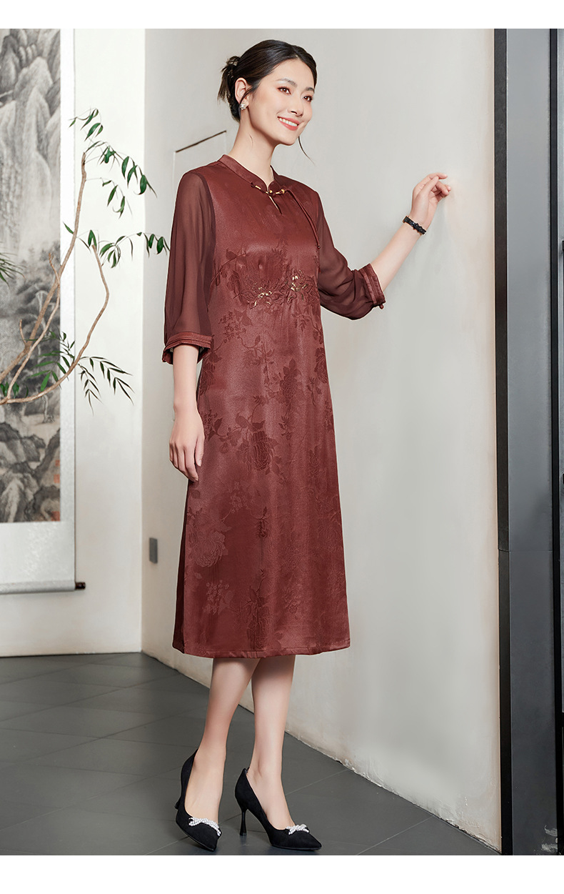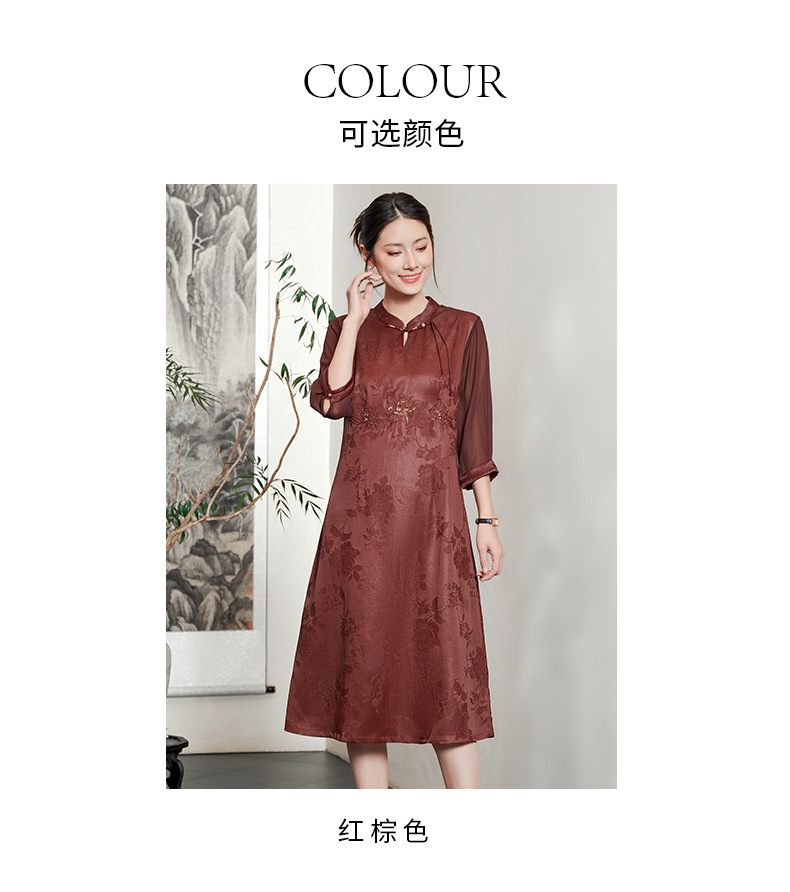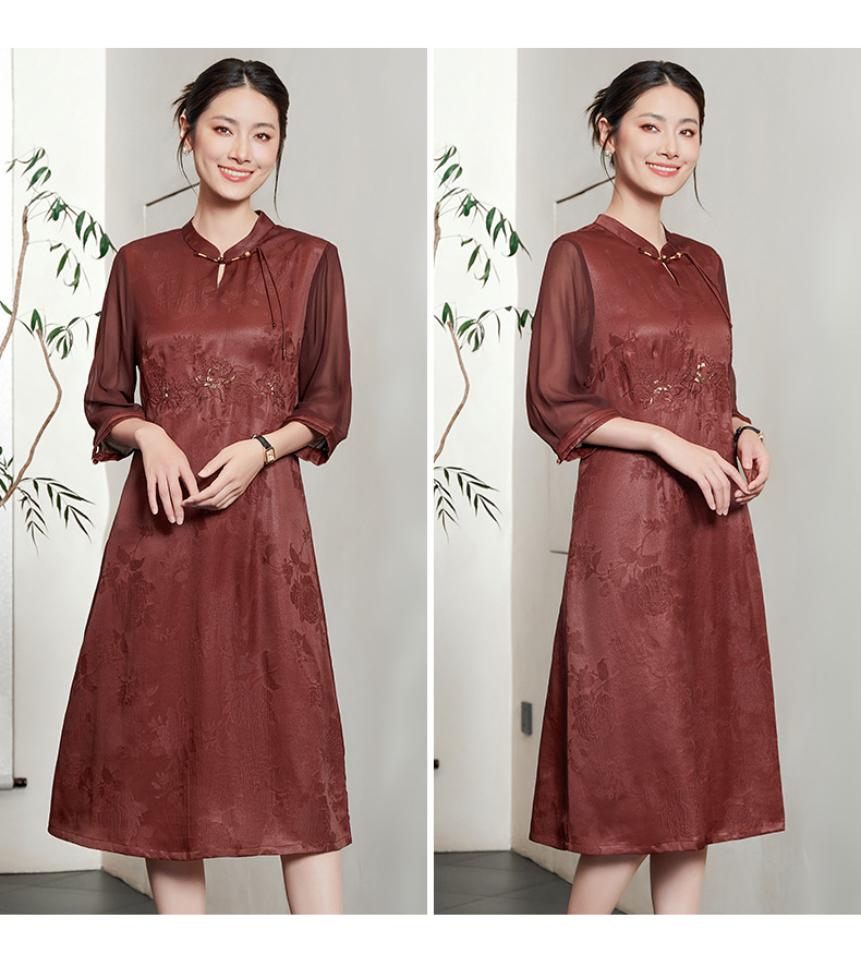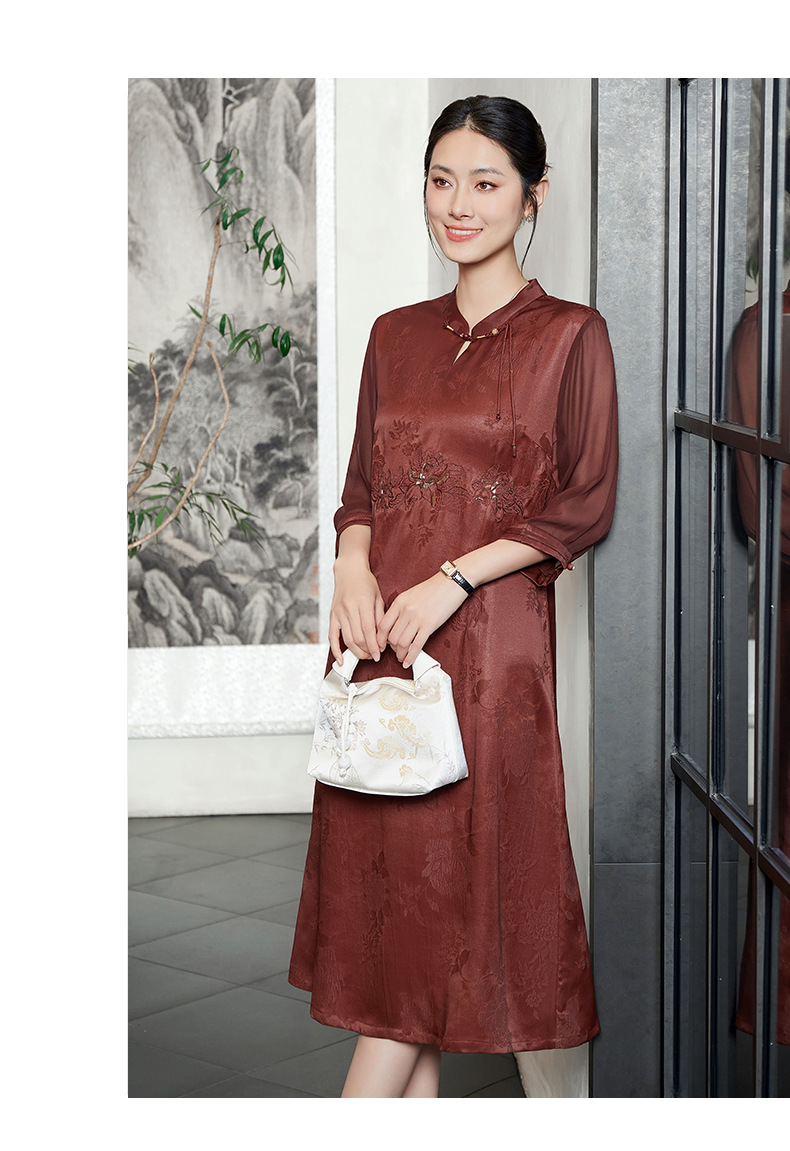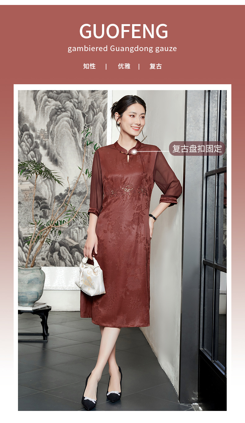 KQ-54829新款红云纱连衣裙结婚衣服婚宴装旗袍真丝礼服桑蚕丝刺绣