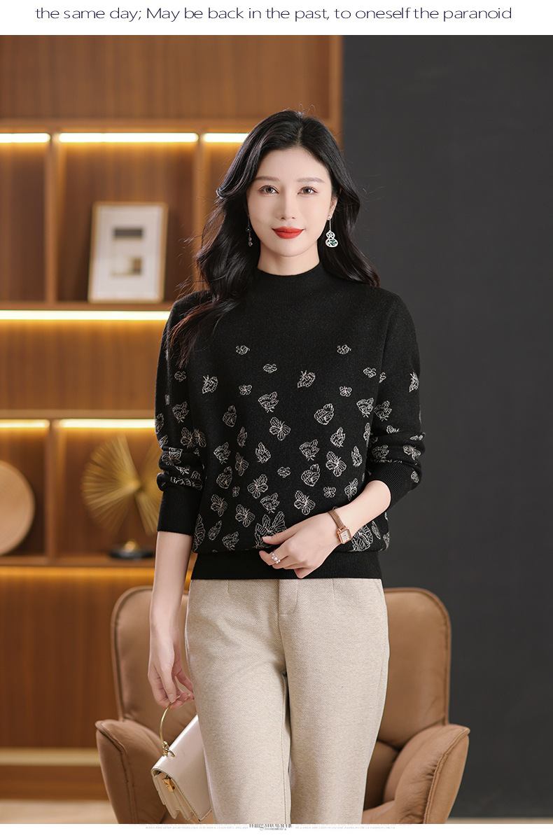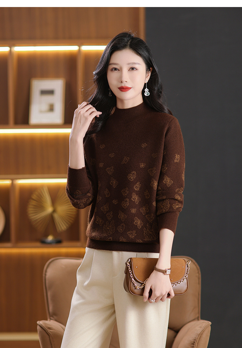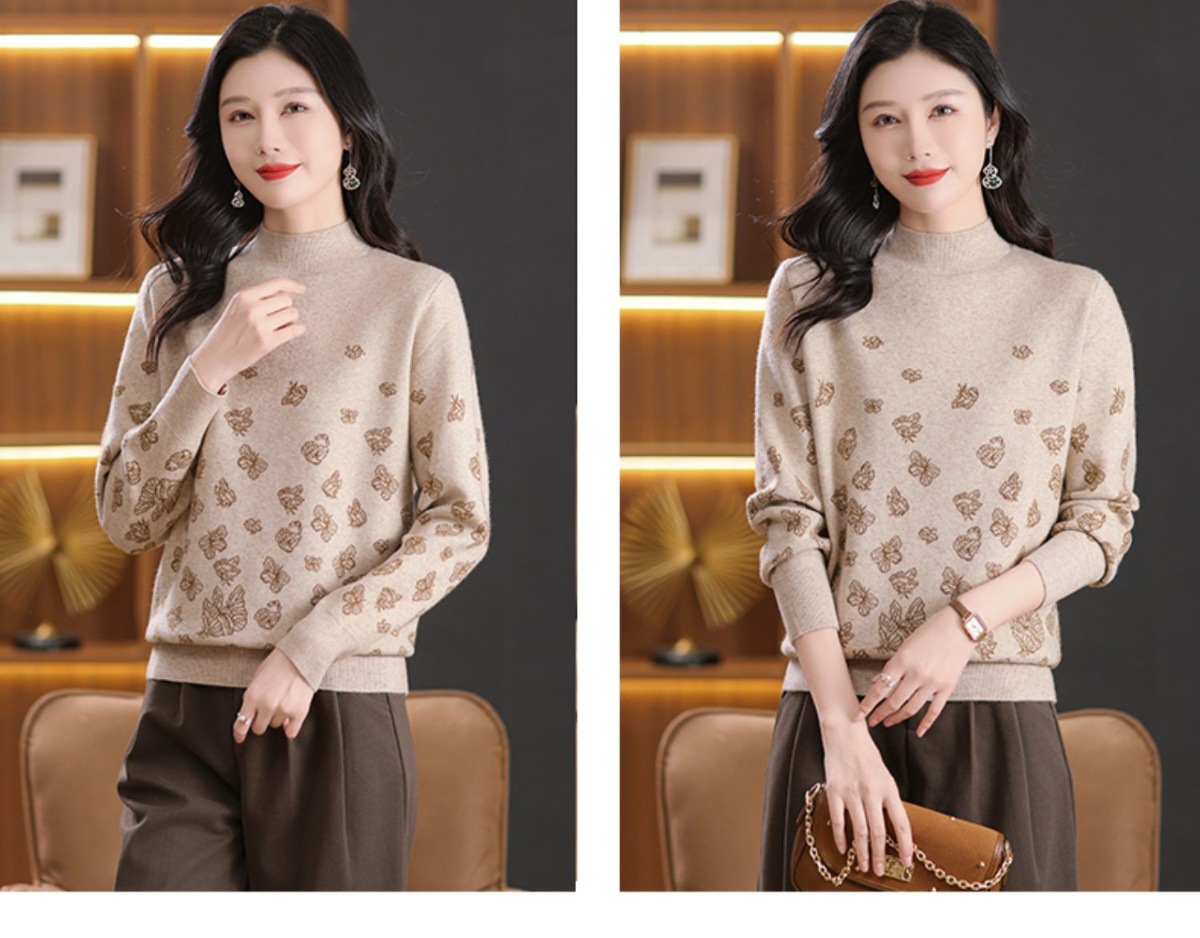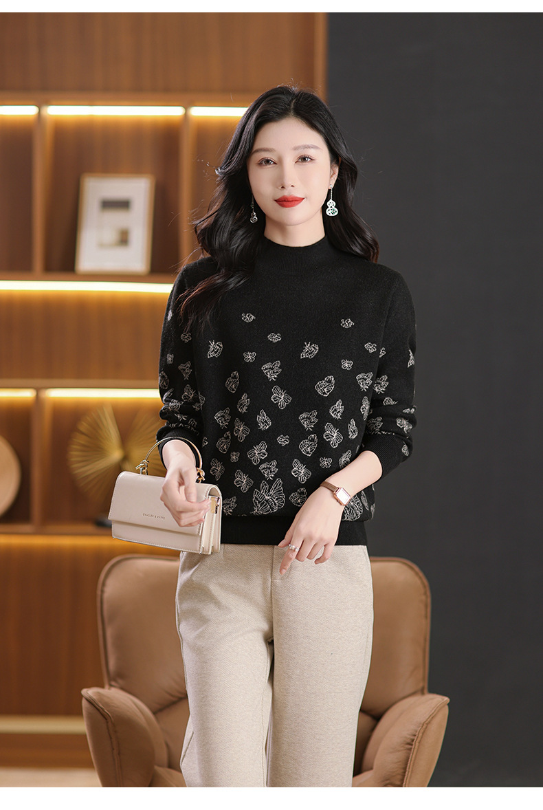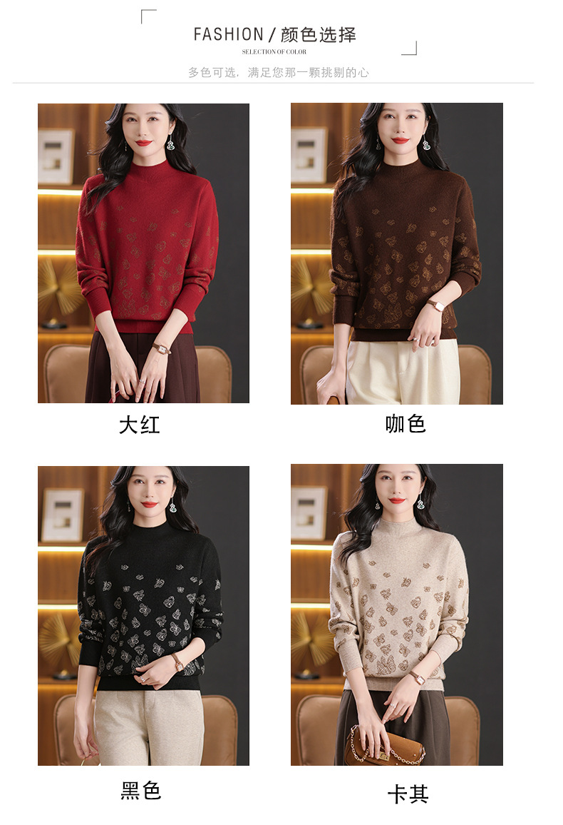 CC-NN-5653宽松厚款蝴蝶提花半高领打底衫毛衣2024秋冬款宽松内搭针织衫上