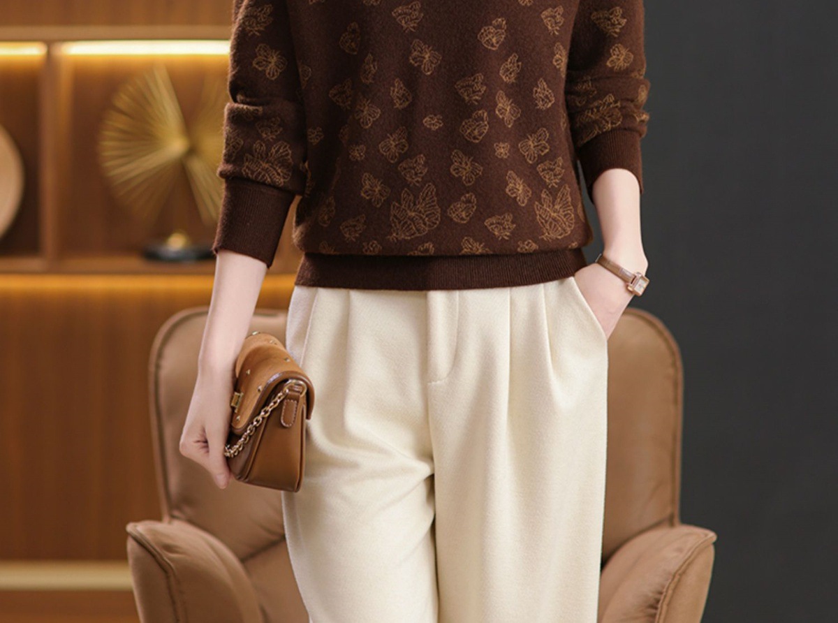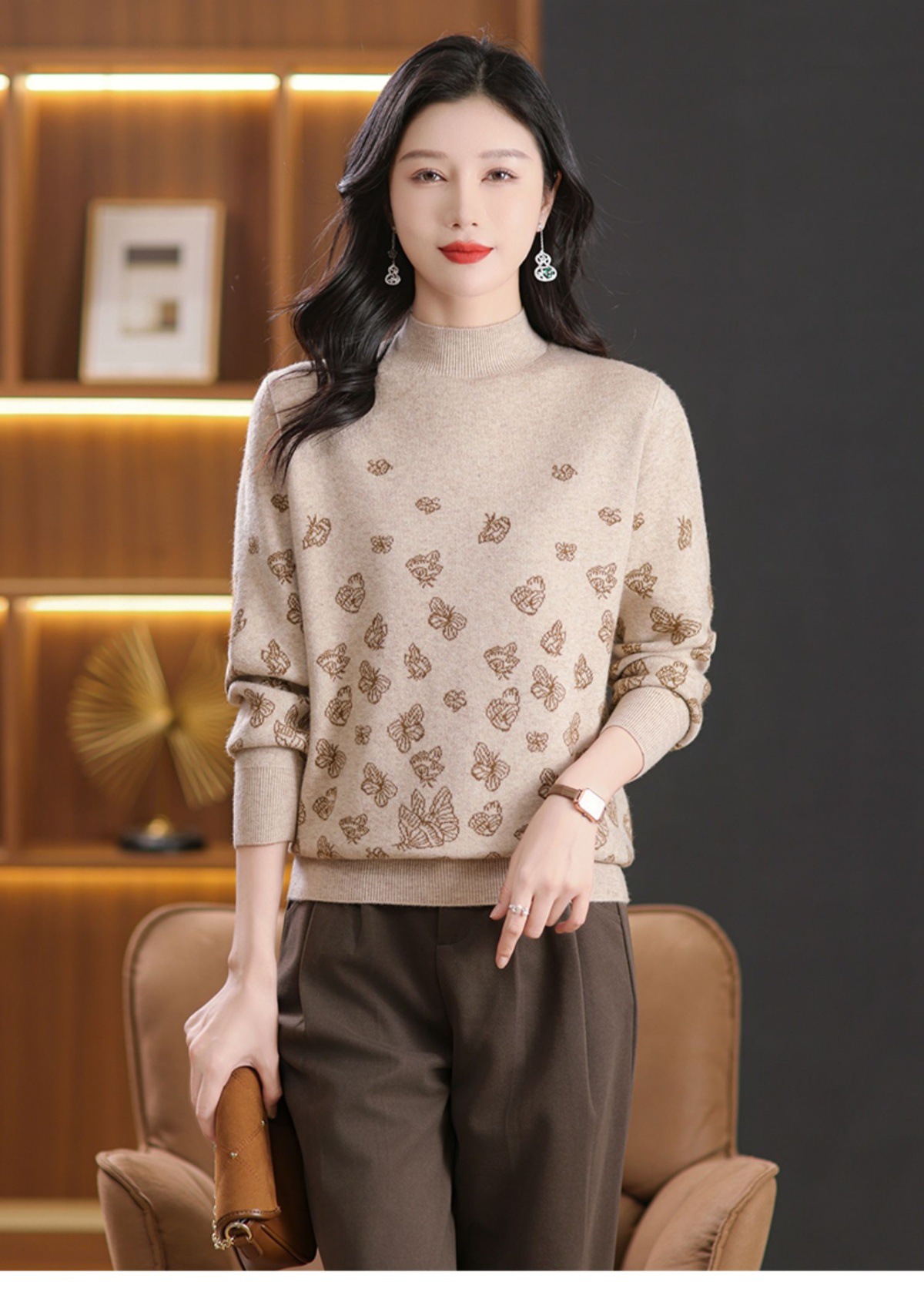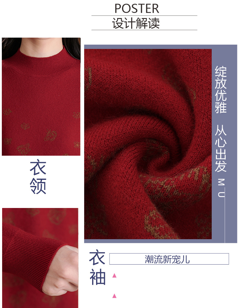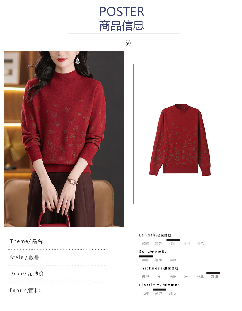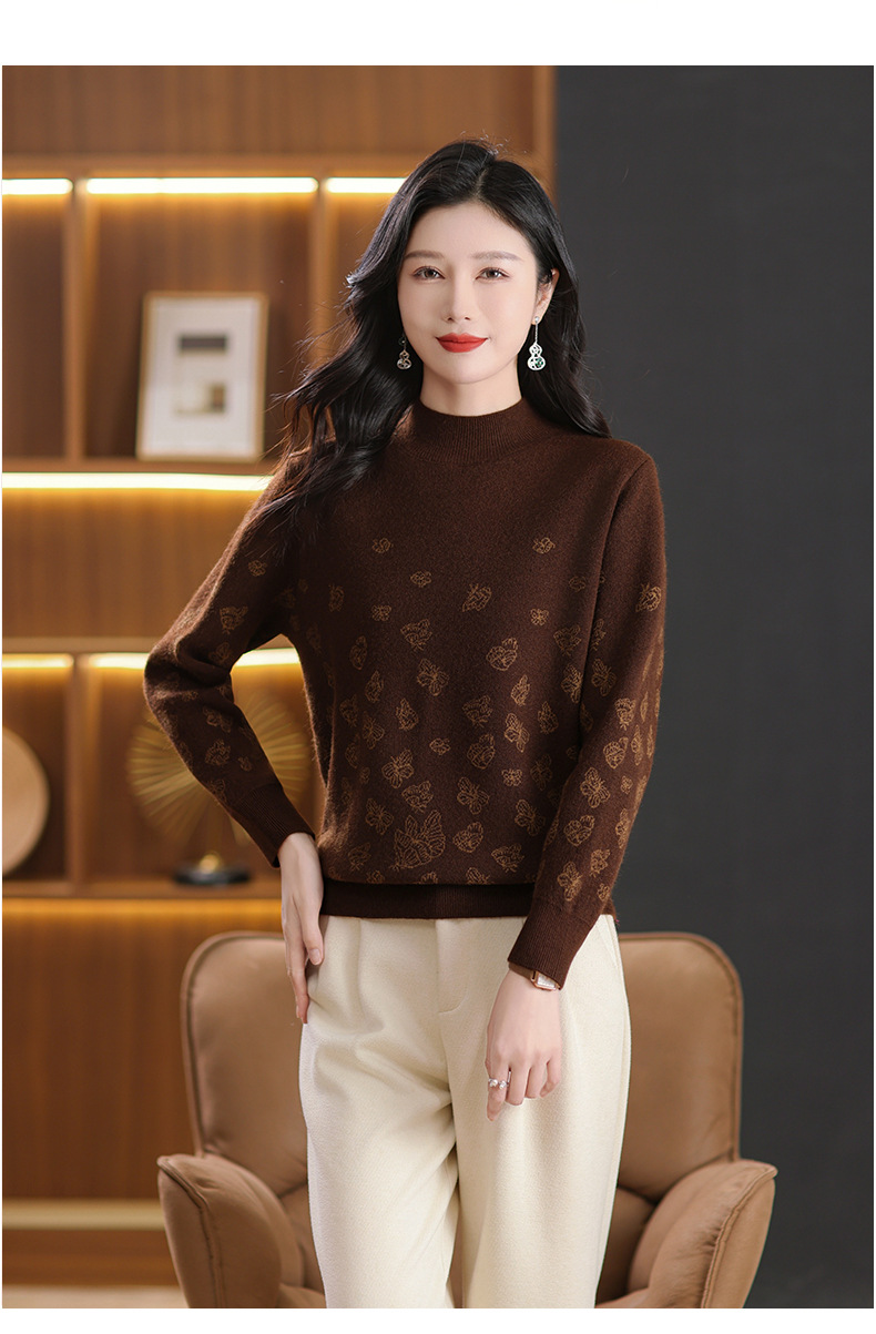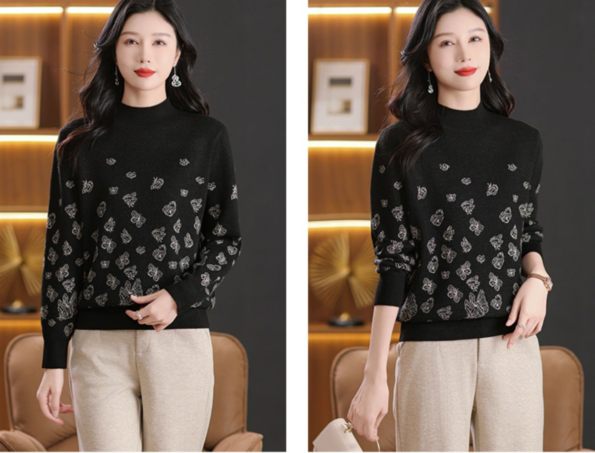 CC-NN-5653宽松厚款蝴蝶提花半高领打底衫毛衣2024秋冬款宽松内搭针织衫上