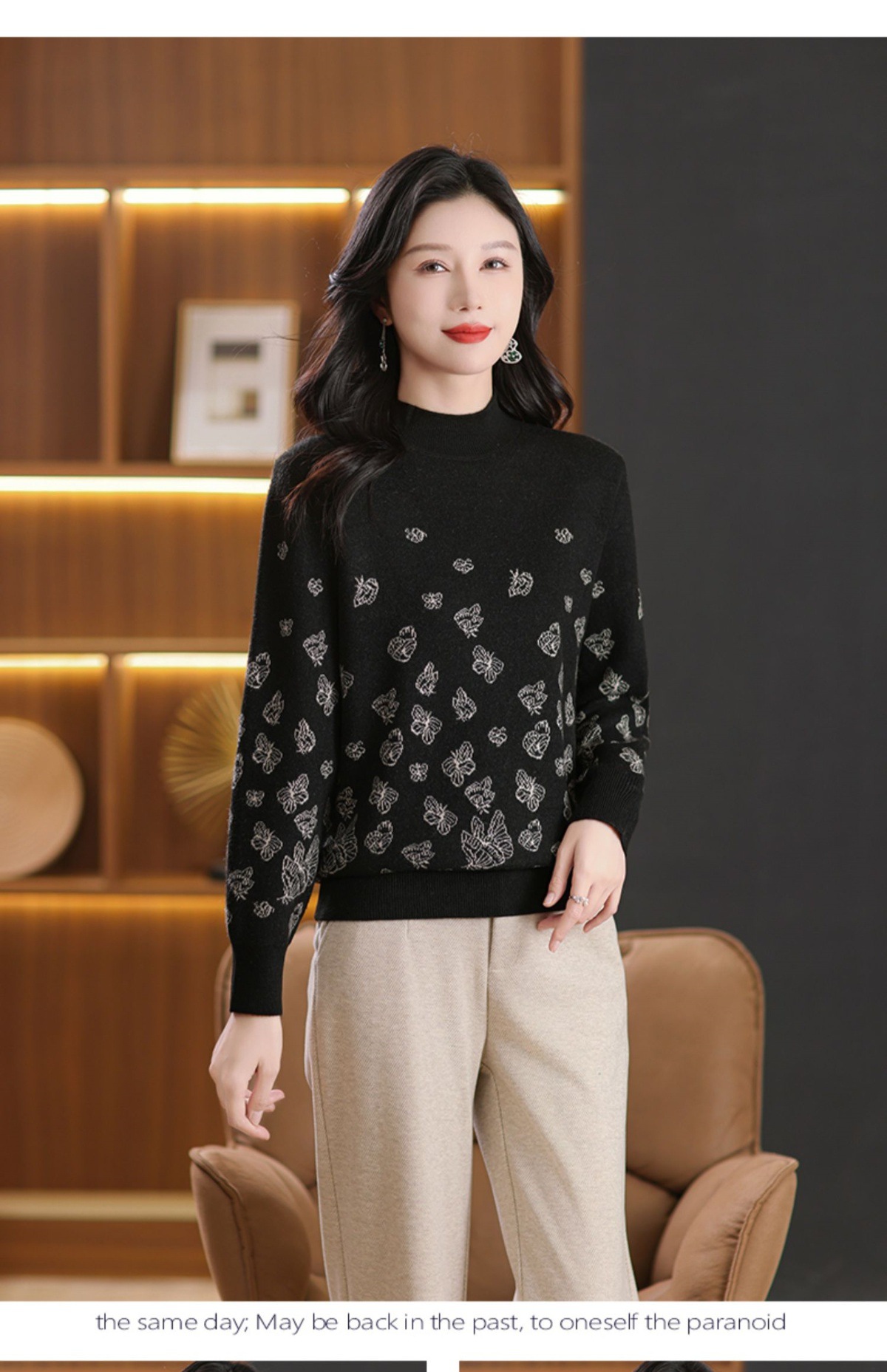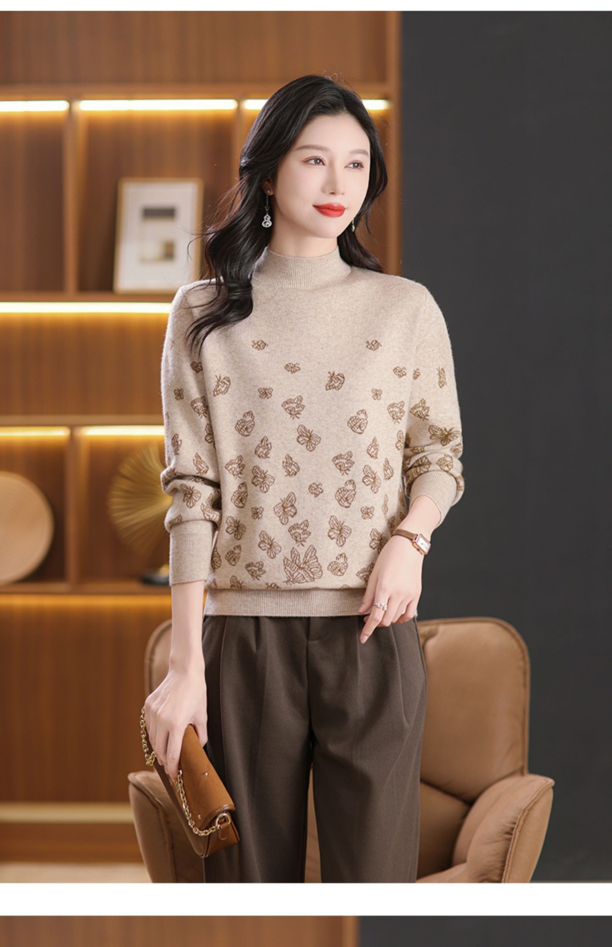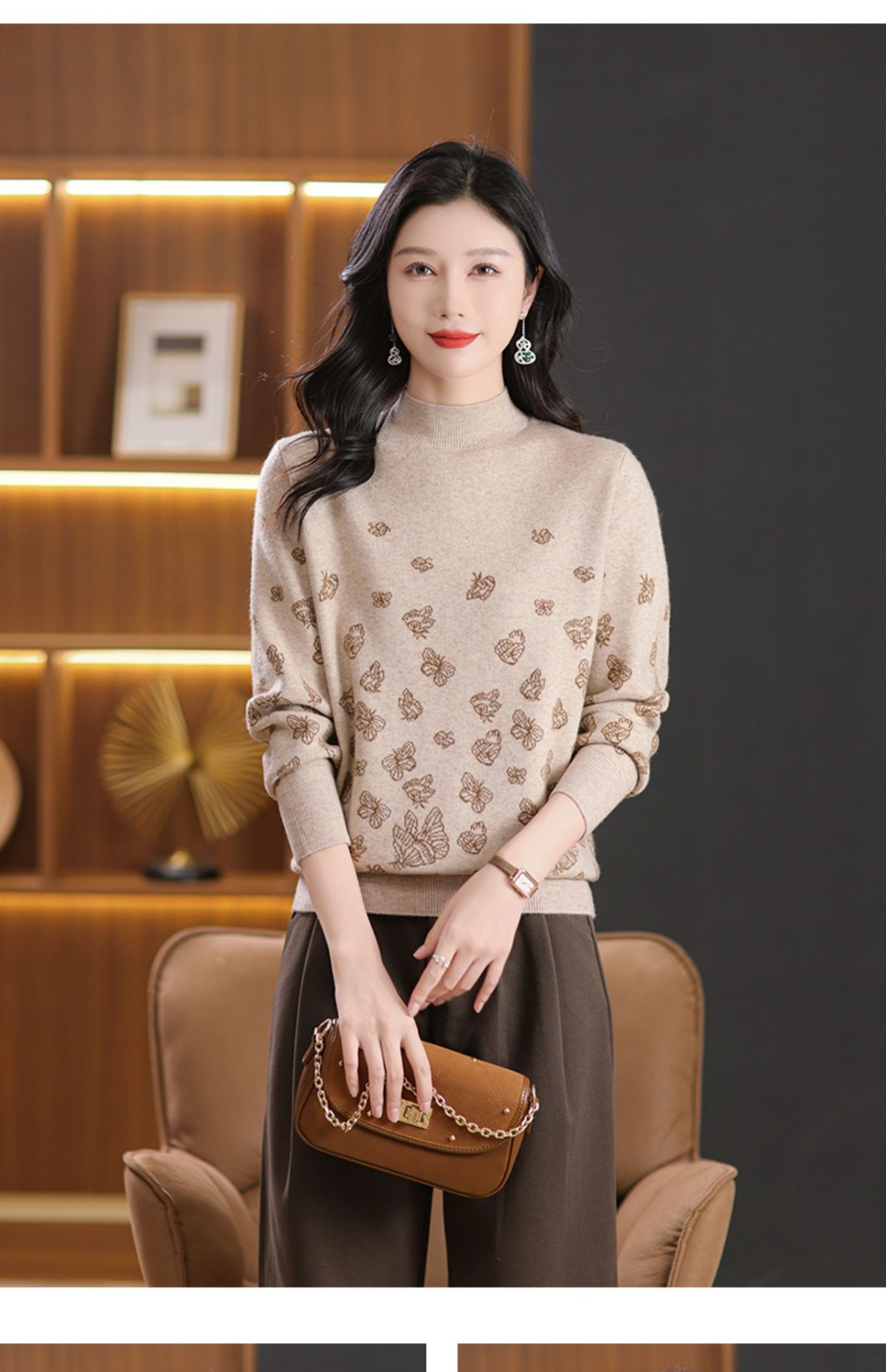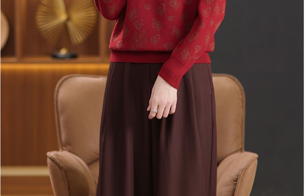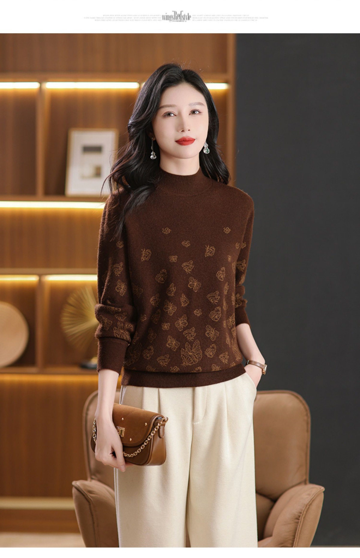 CC-NN-5653宽松厚款蝴蝶提花半高领打底衫毛衣2024秋冬款宽松内搭针织衫上
