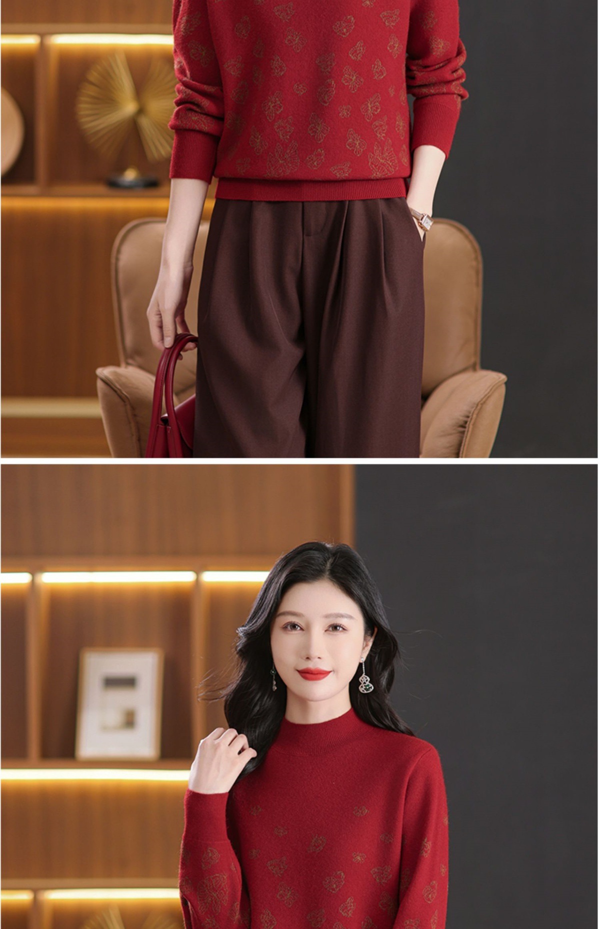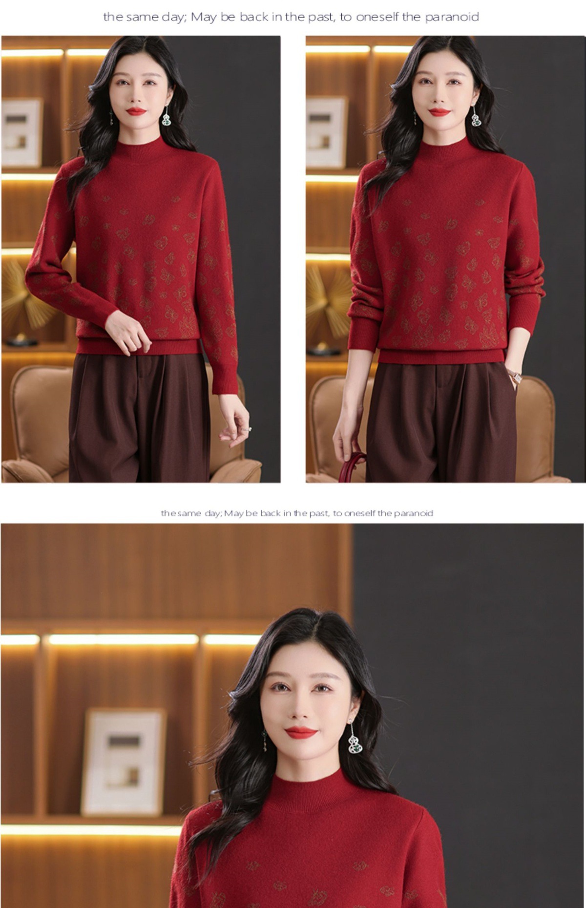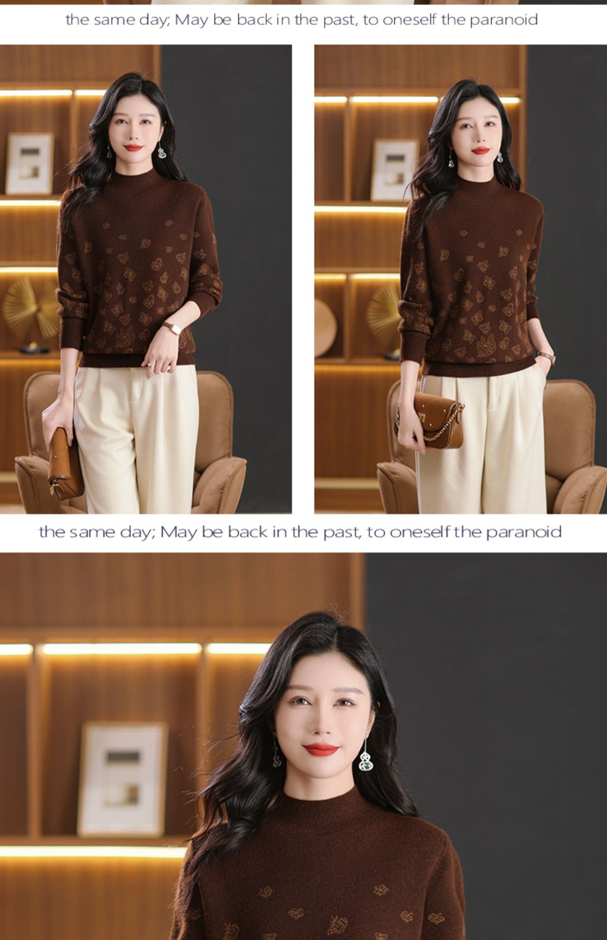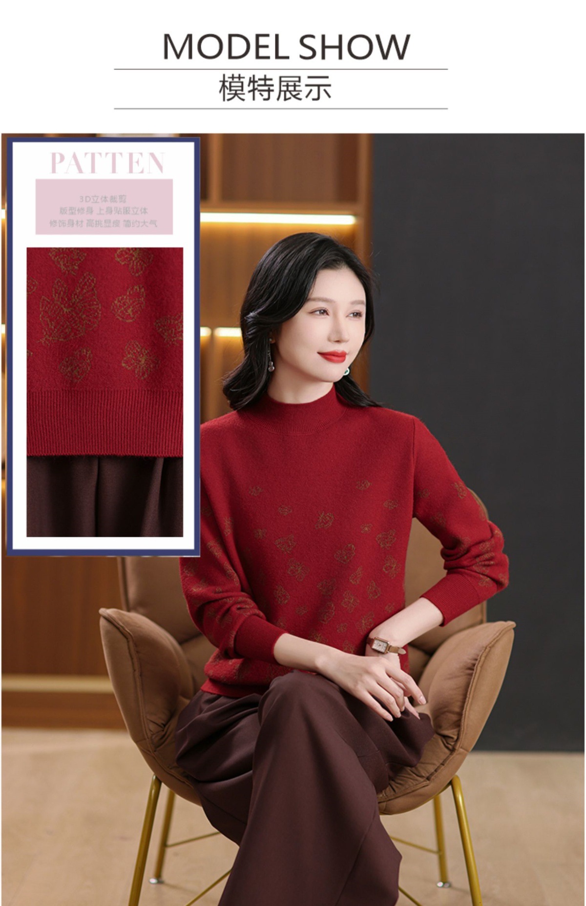 CC-NN-5653宽松厚款蝴蝶提花半高领打底衫毛衣2024秋冬款宽松内搭针织衫上
