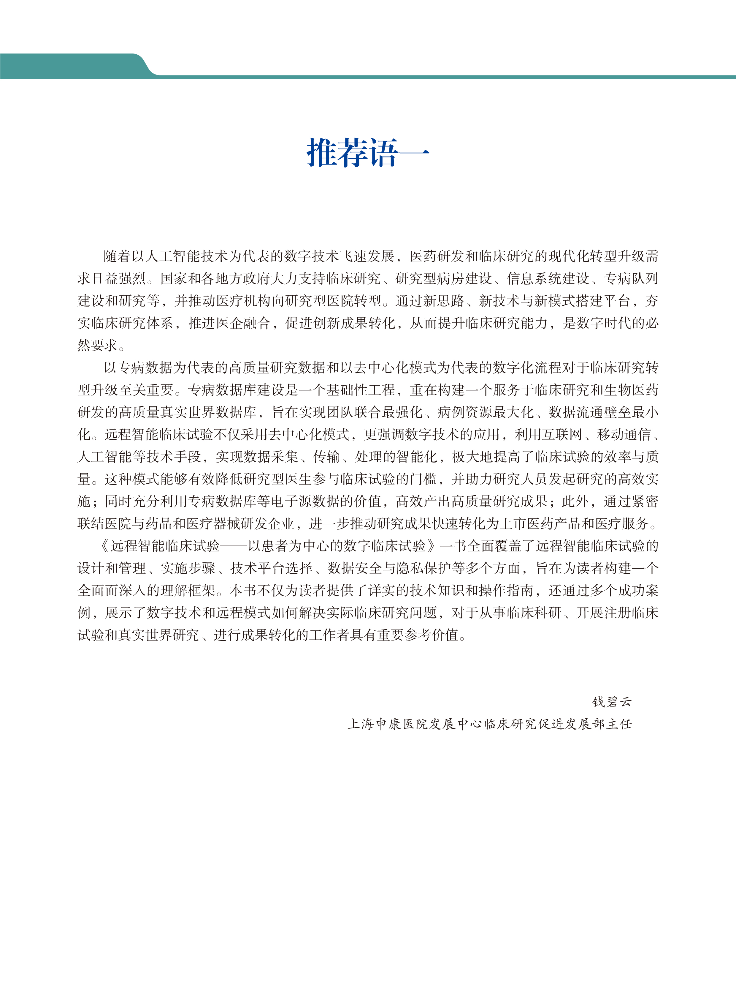 远程智能临床试验——以患者为中心的数字临床试验 主编:李高扬 北医社
