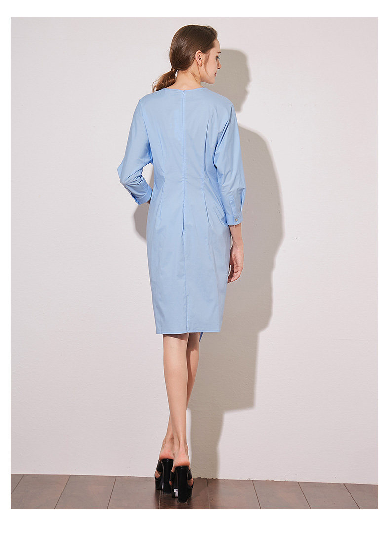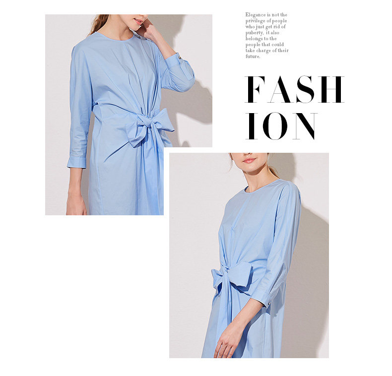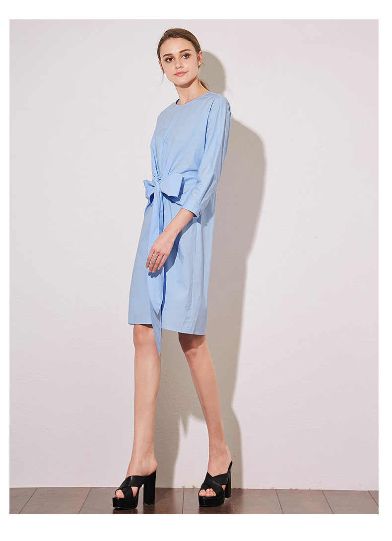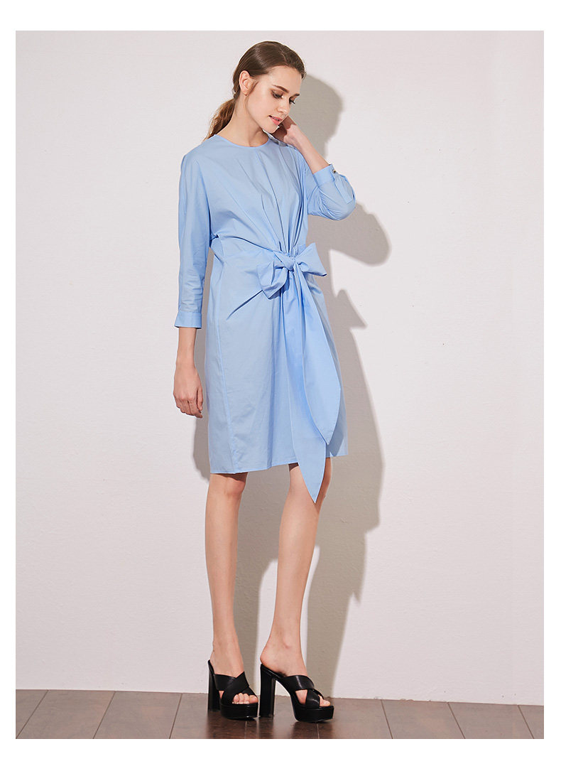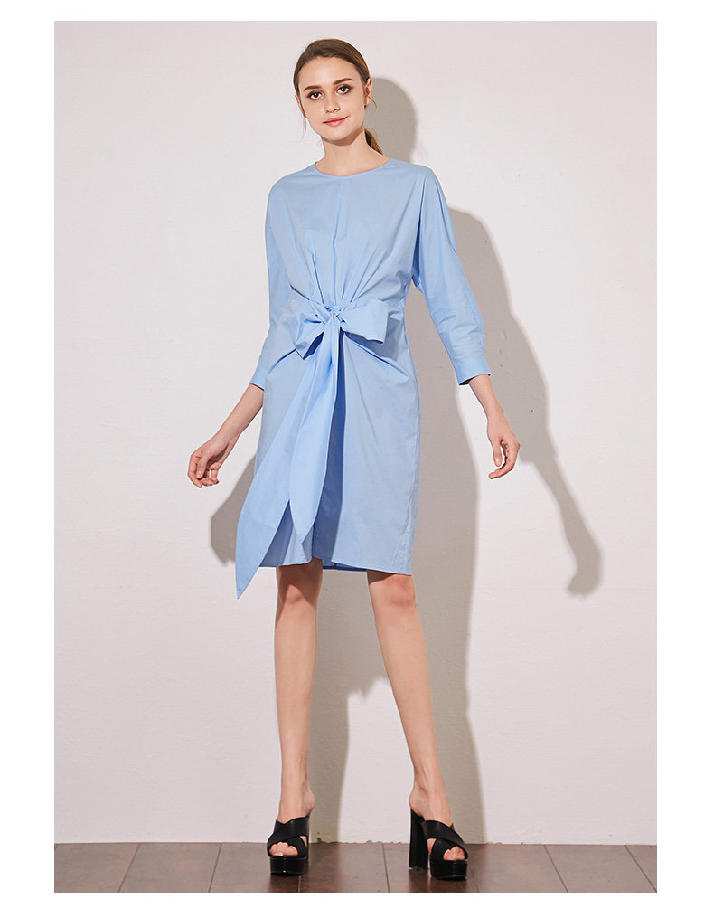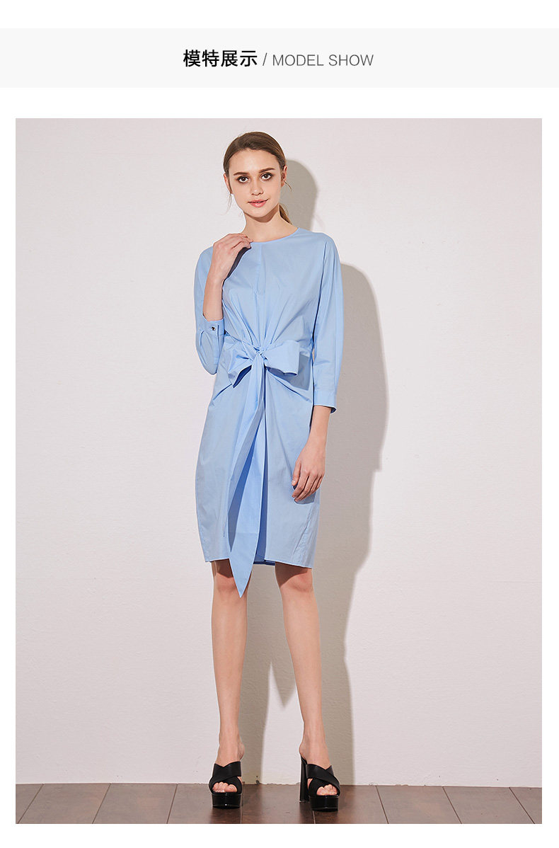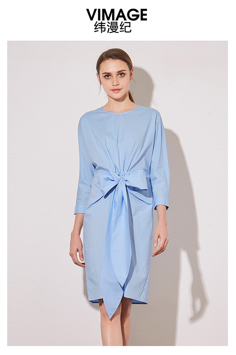VIMAGE纬漫纪夏季新款蝴蝶结系带七分袖棉质连衣裙纯色中裙V907541