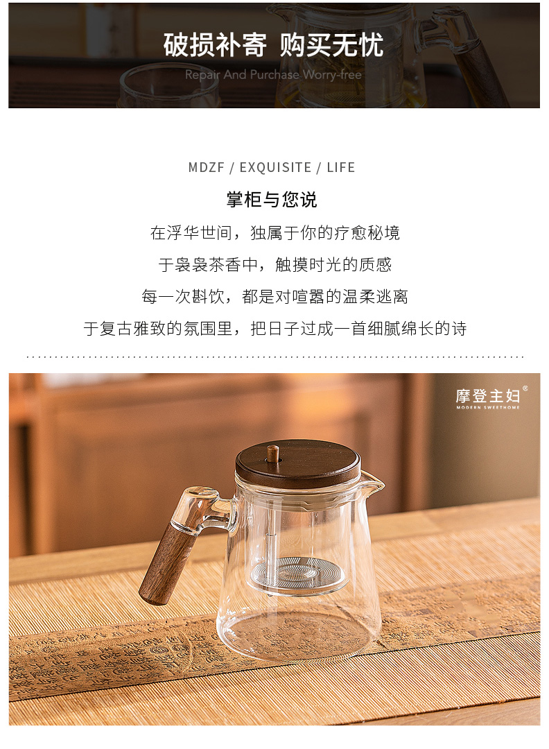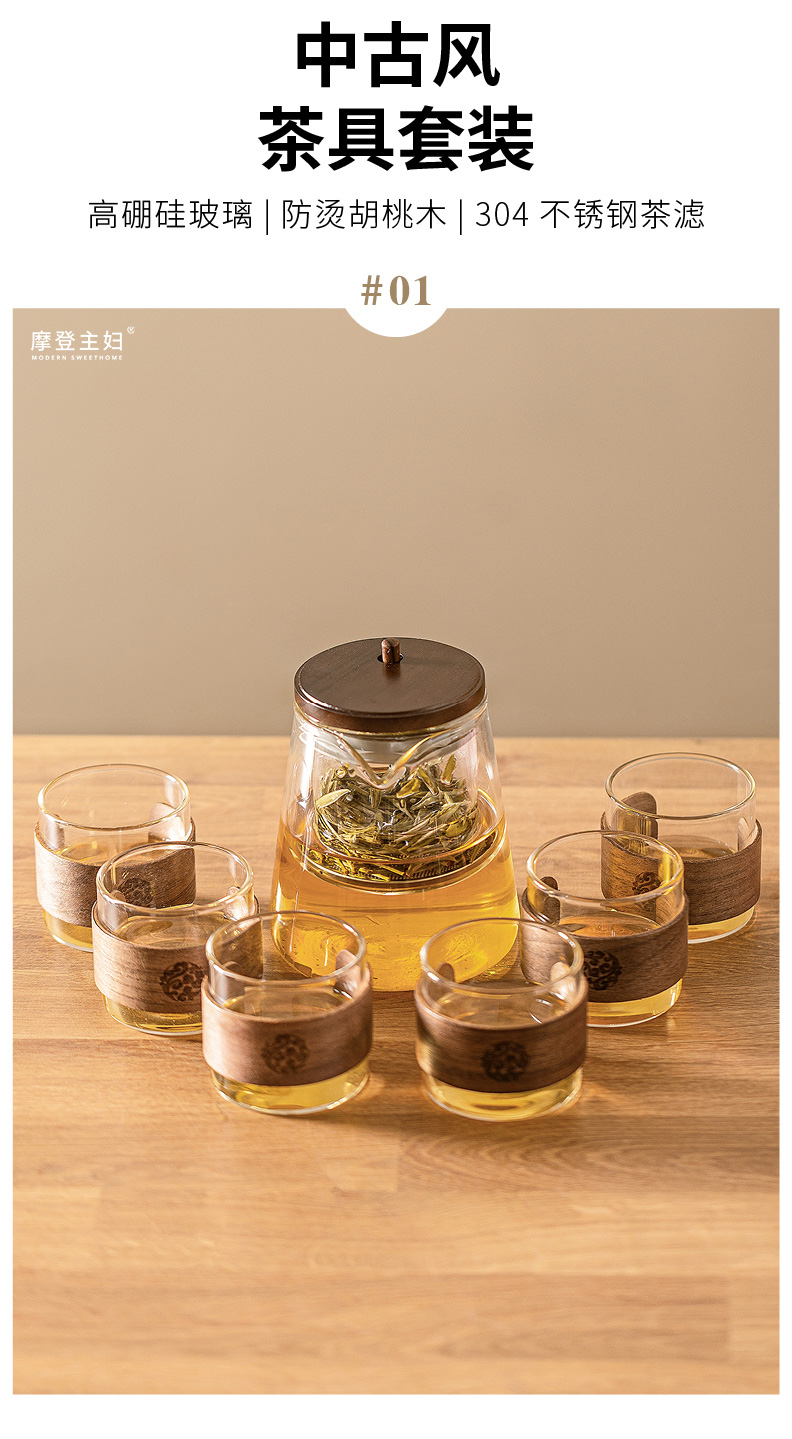 摩登主妇中式玻璃茶壶耐高温煮茶泡茶器具2025新款茶具套装小水壶