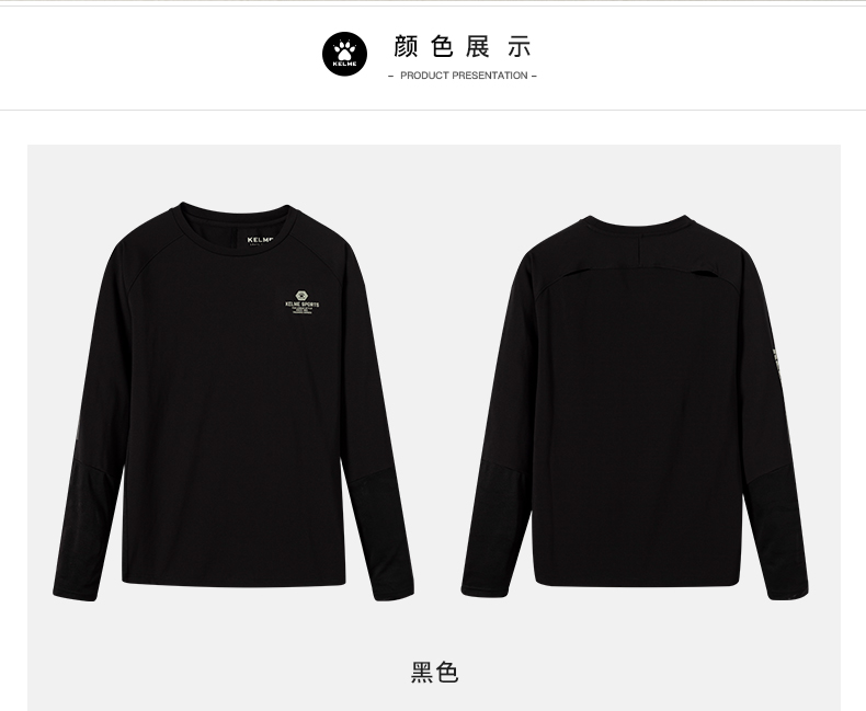 KELME卡尔美新款男士纯色长袖T恤