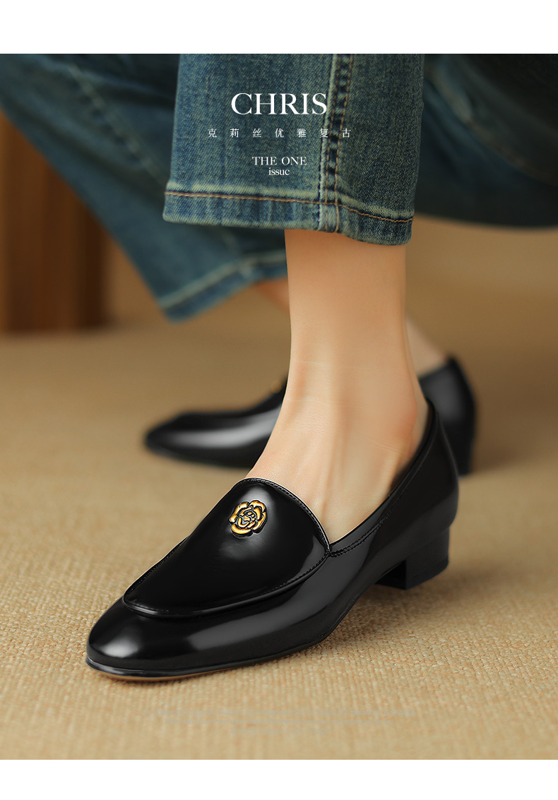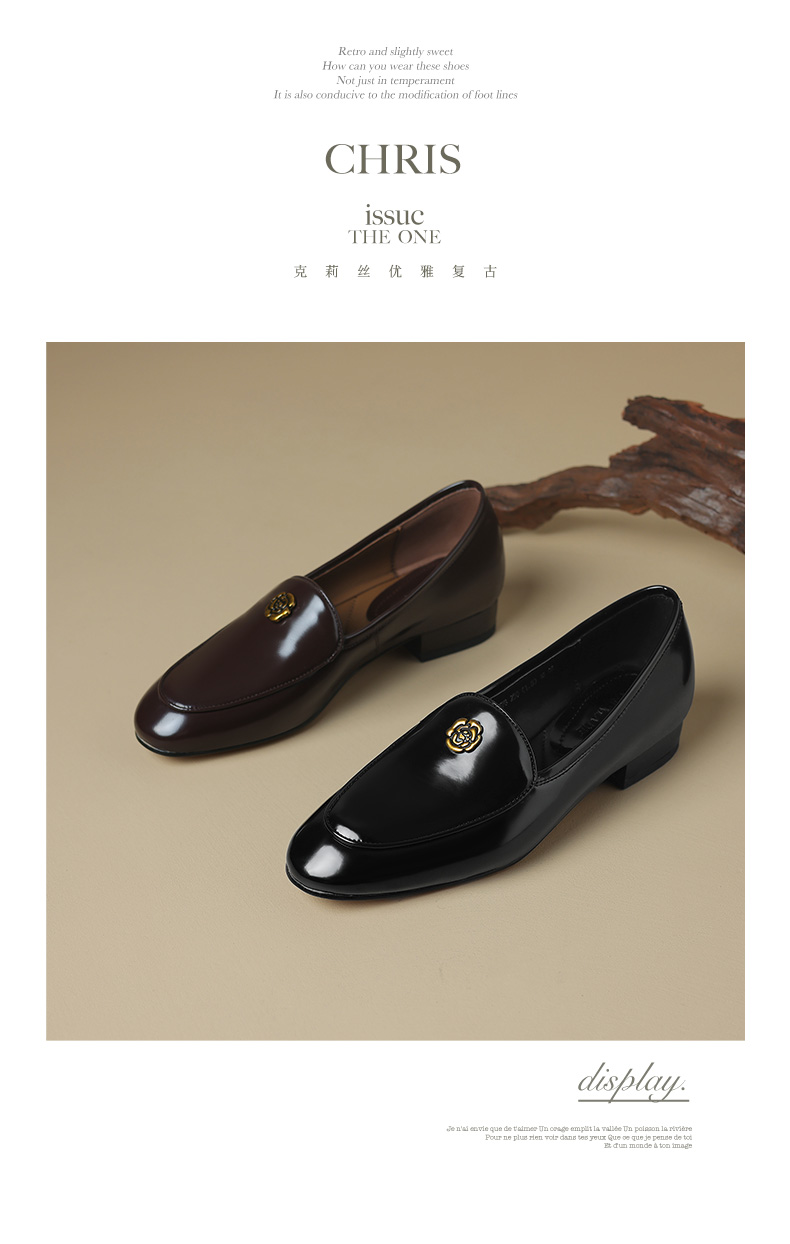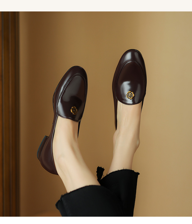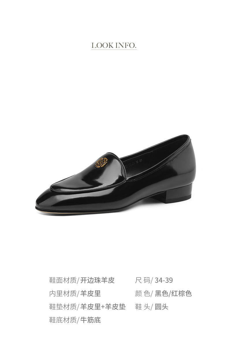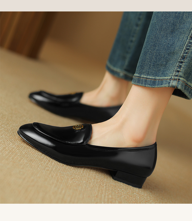 优雅百搭,圆润真皮纯色金属装饰乐福鞋单鞋NX-8076
