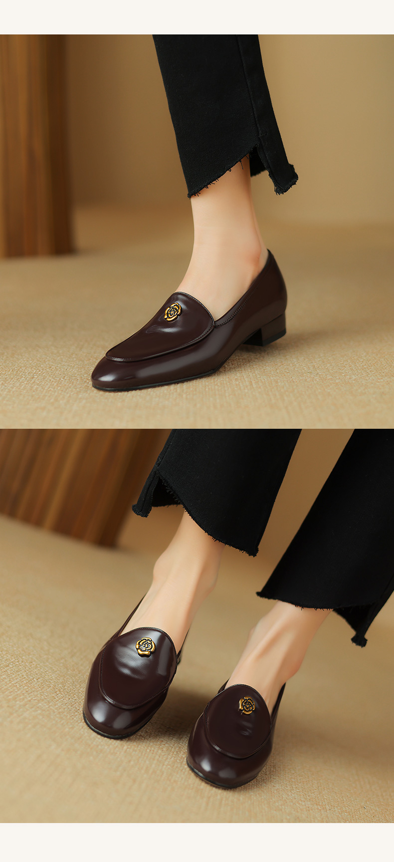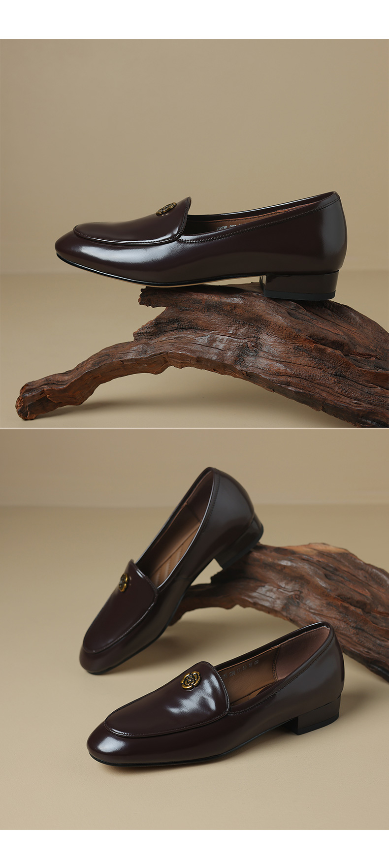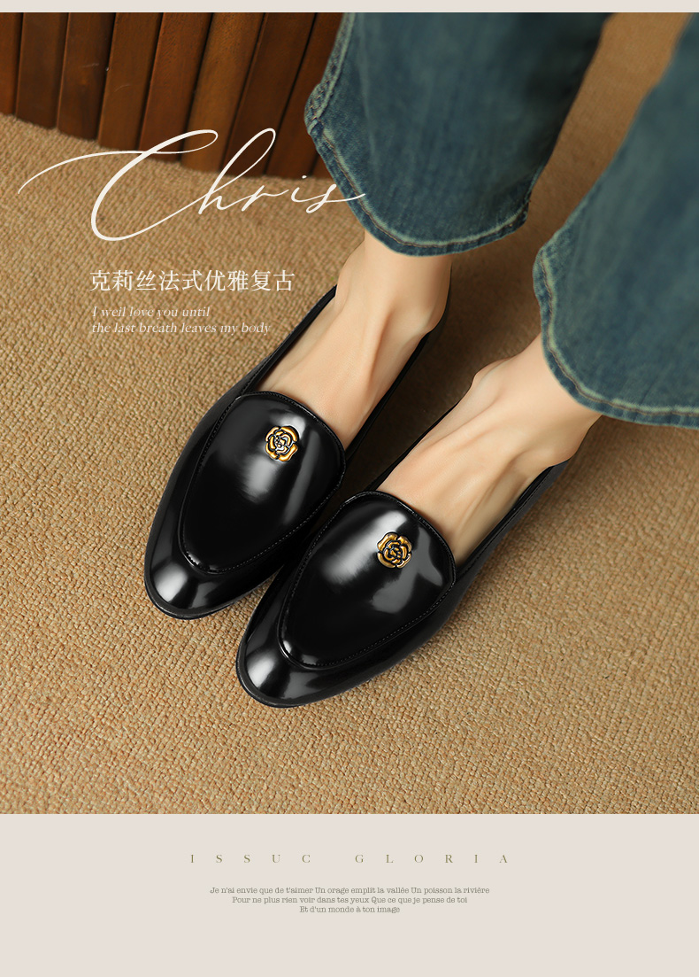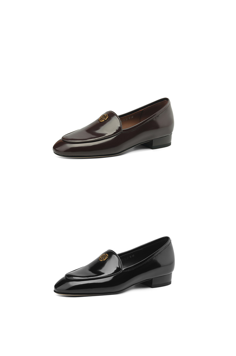 优雅百搭,圆润真皮纯色金属装饰乐福鞋单鞋NX-8076