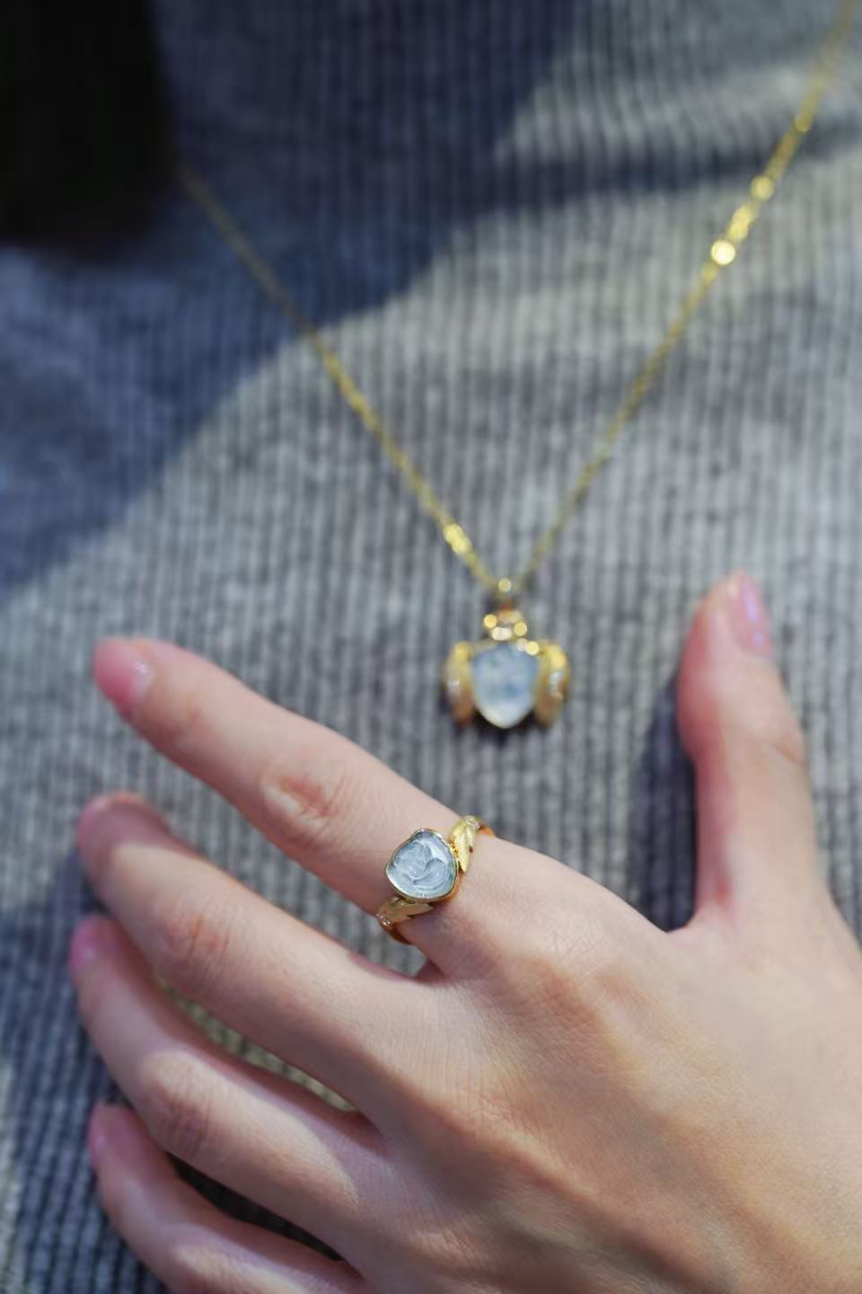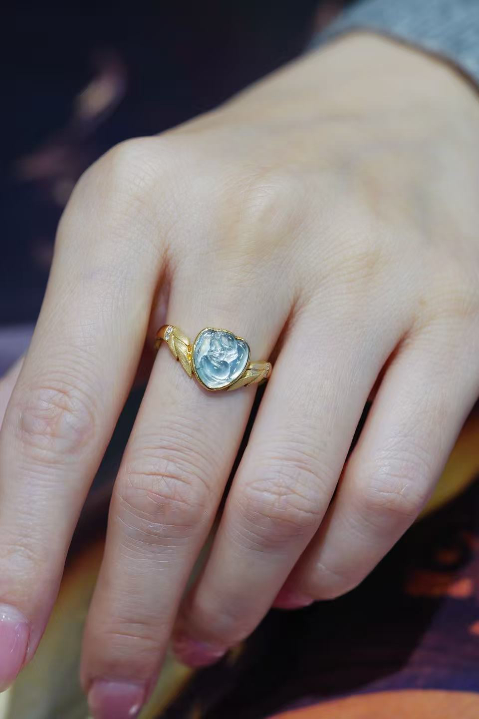 【喆】和田玉粉蓝宝戒指