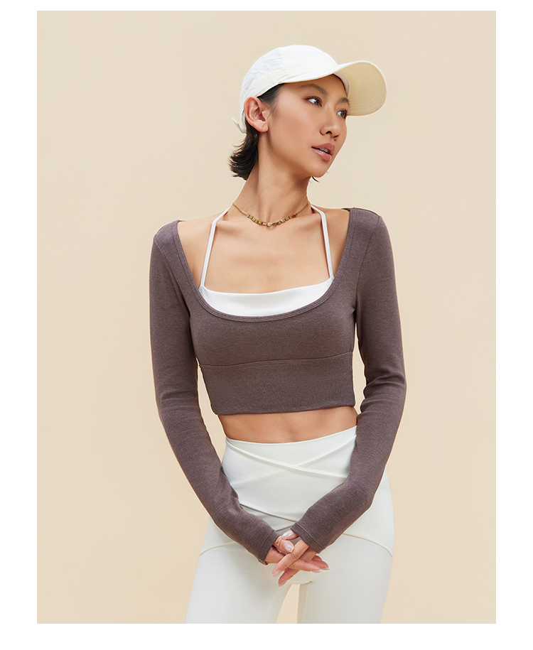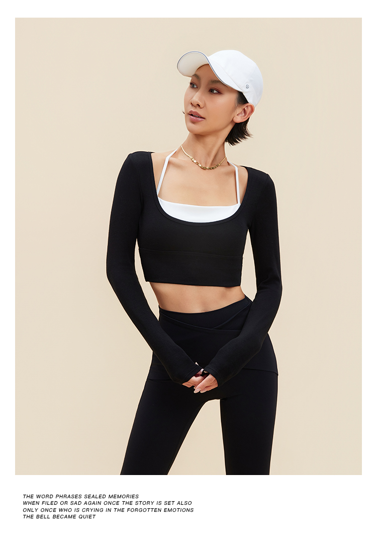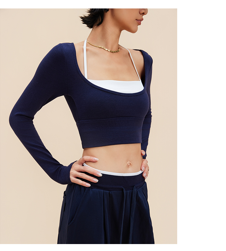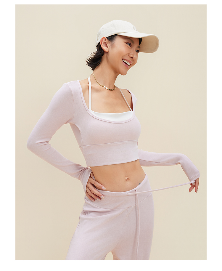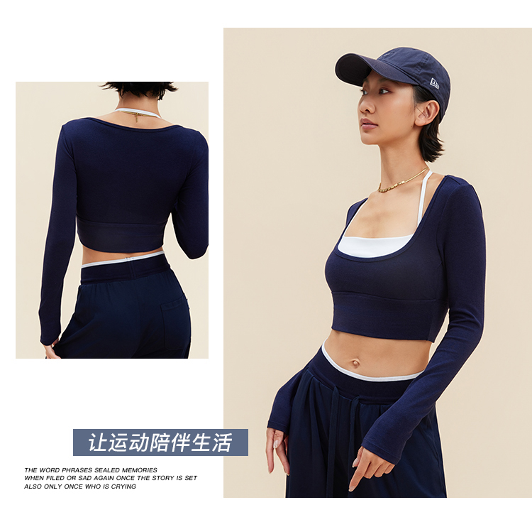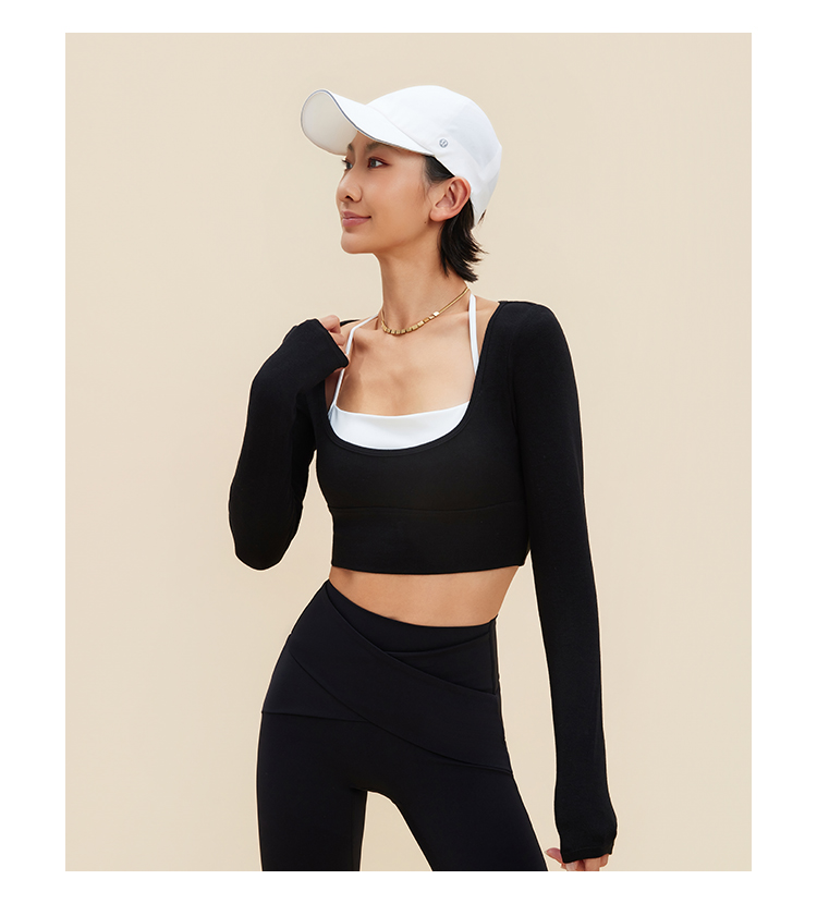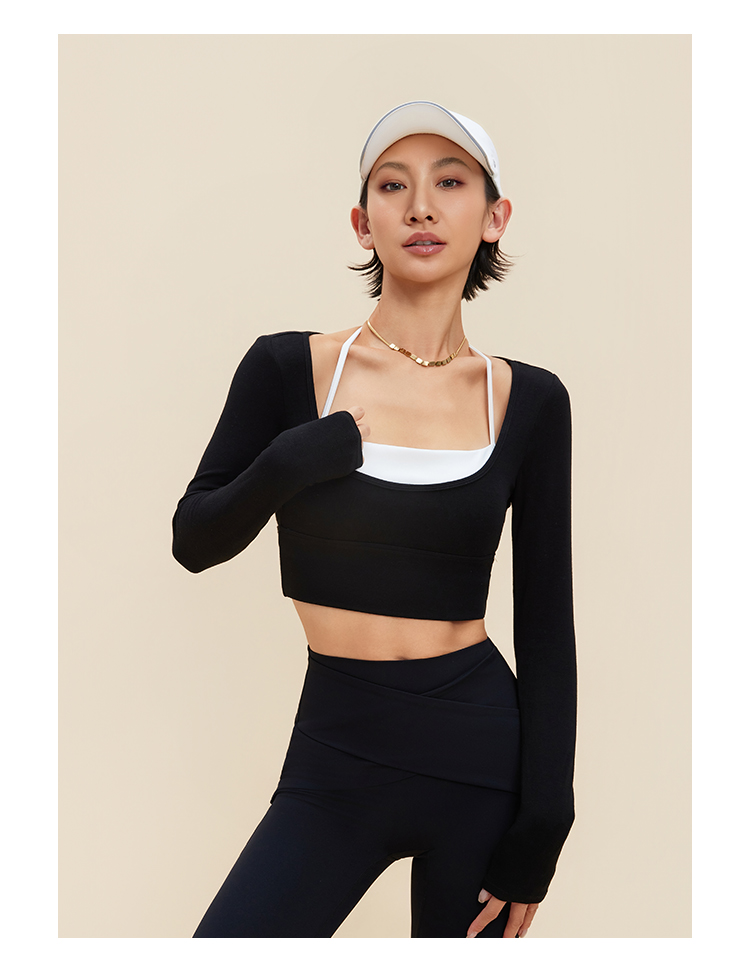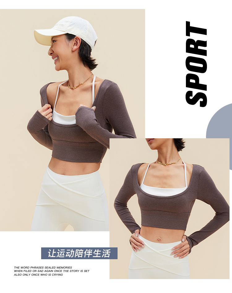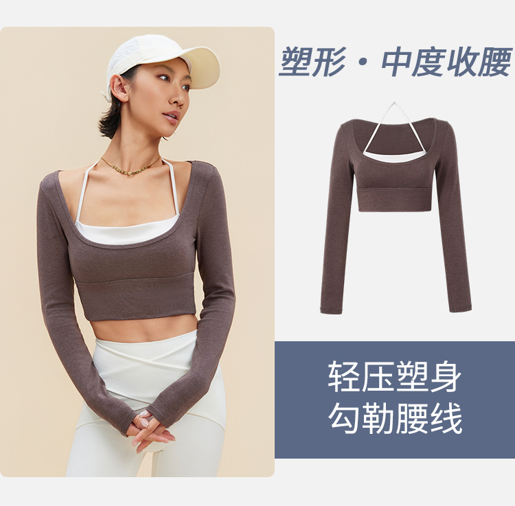 跃牌【禅语梵心】裸感撞色瑜伽服长袖半固定杯跑步修身运动文胸CX5589