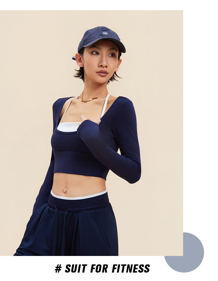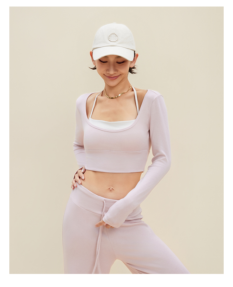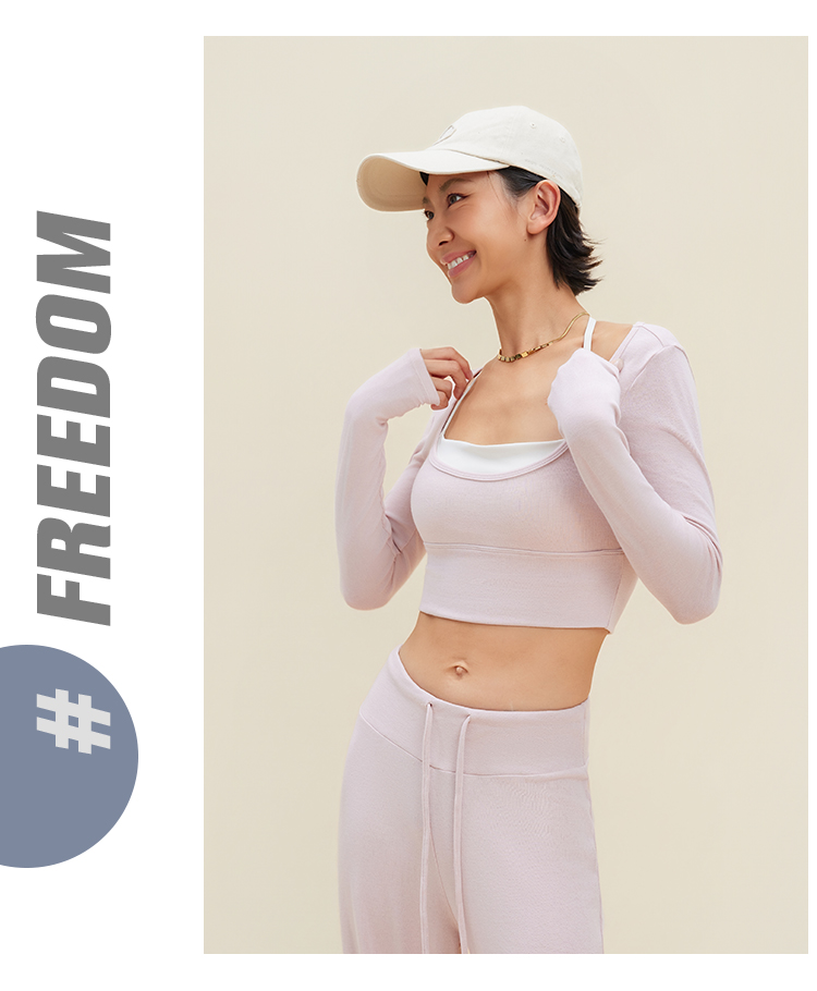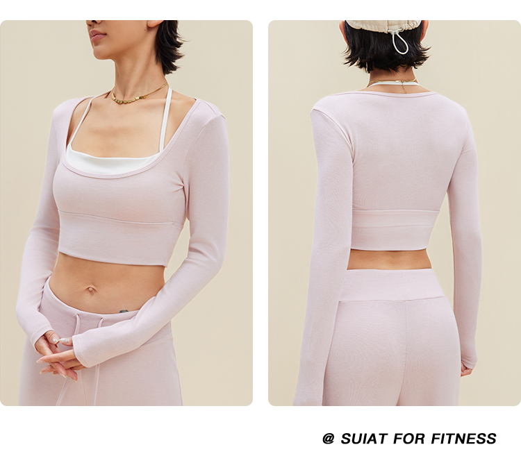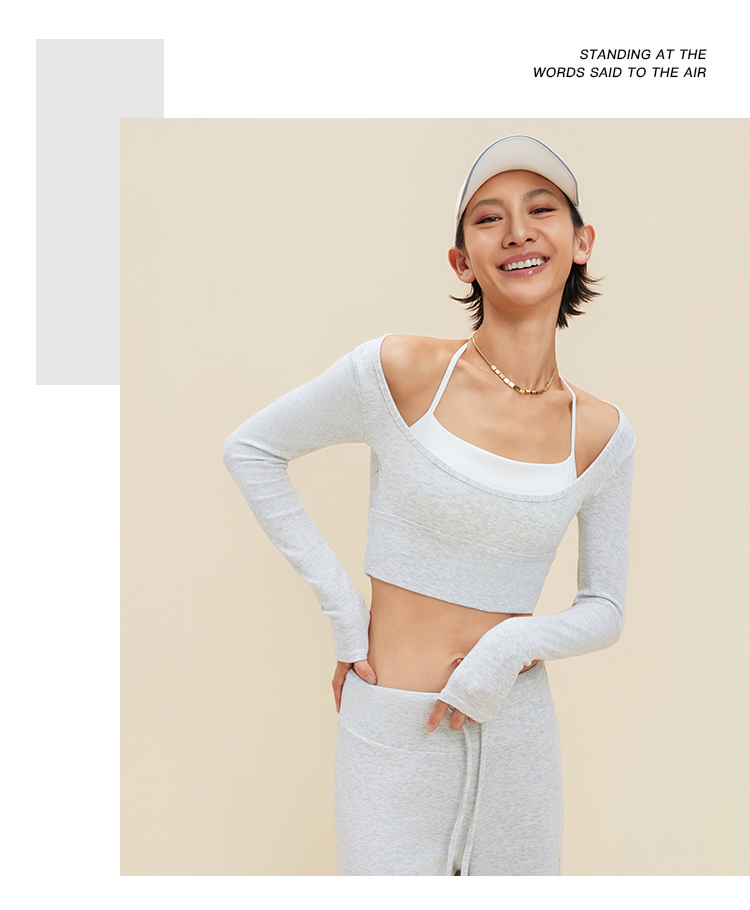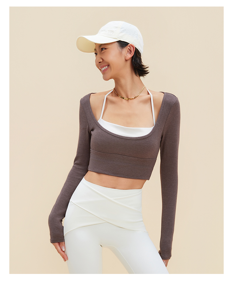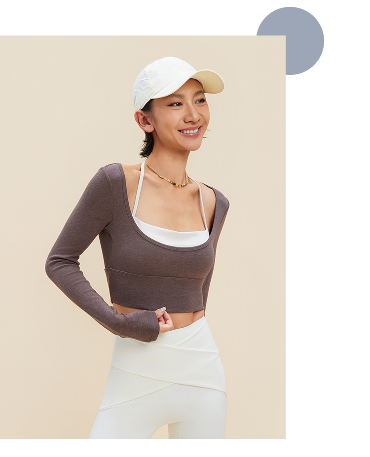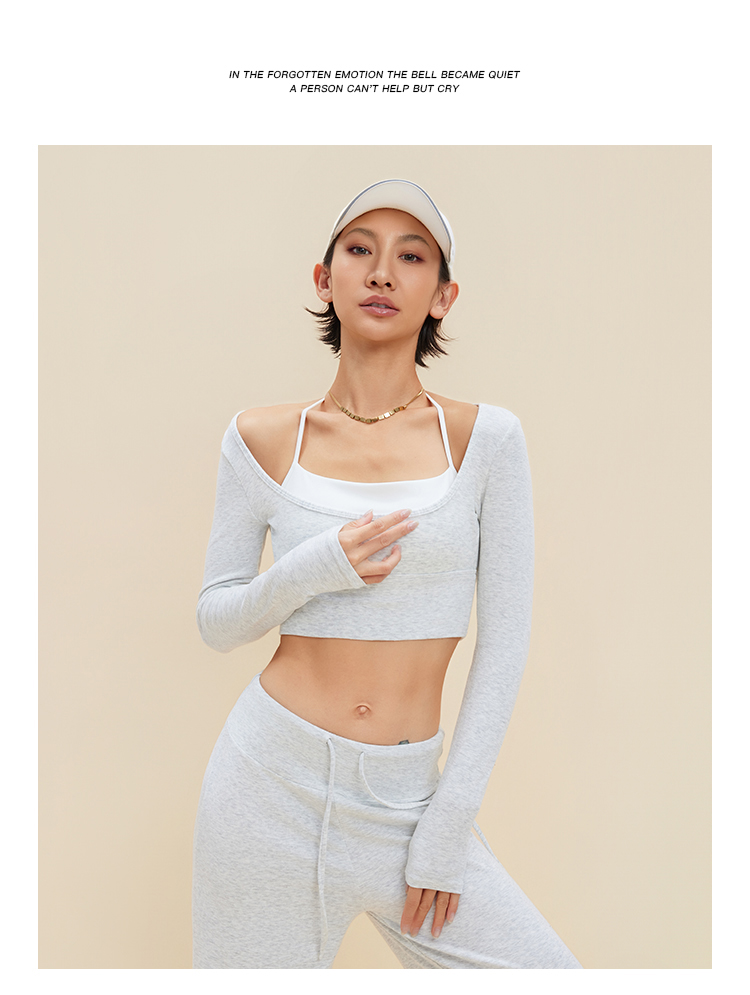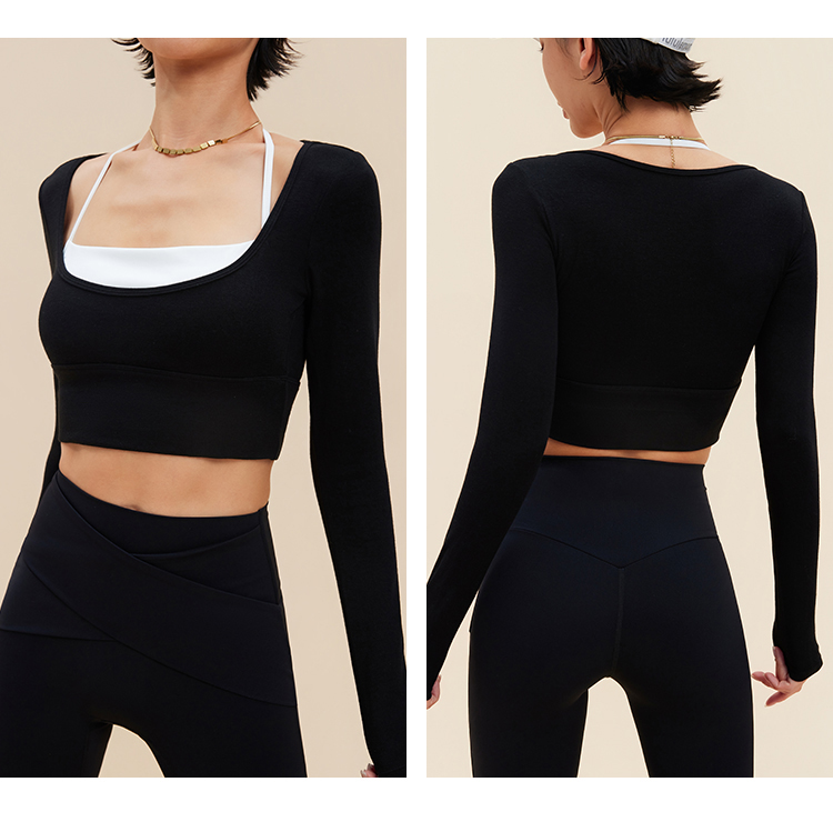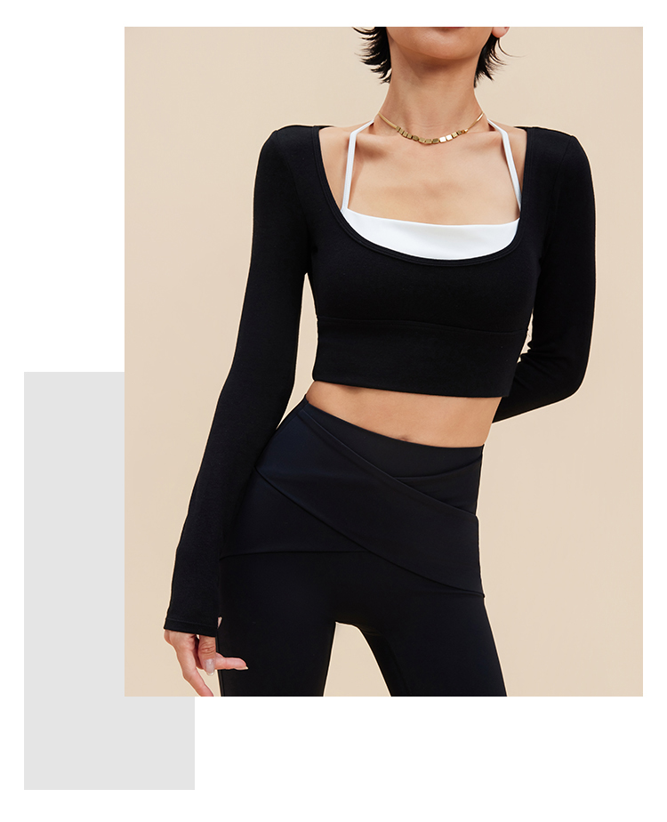 跃牌【禅语梵心】裸感撞色瑜伽服长袖半固定杯跑步修身运动文胸CX5589
